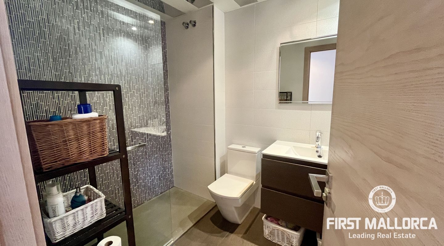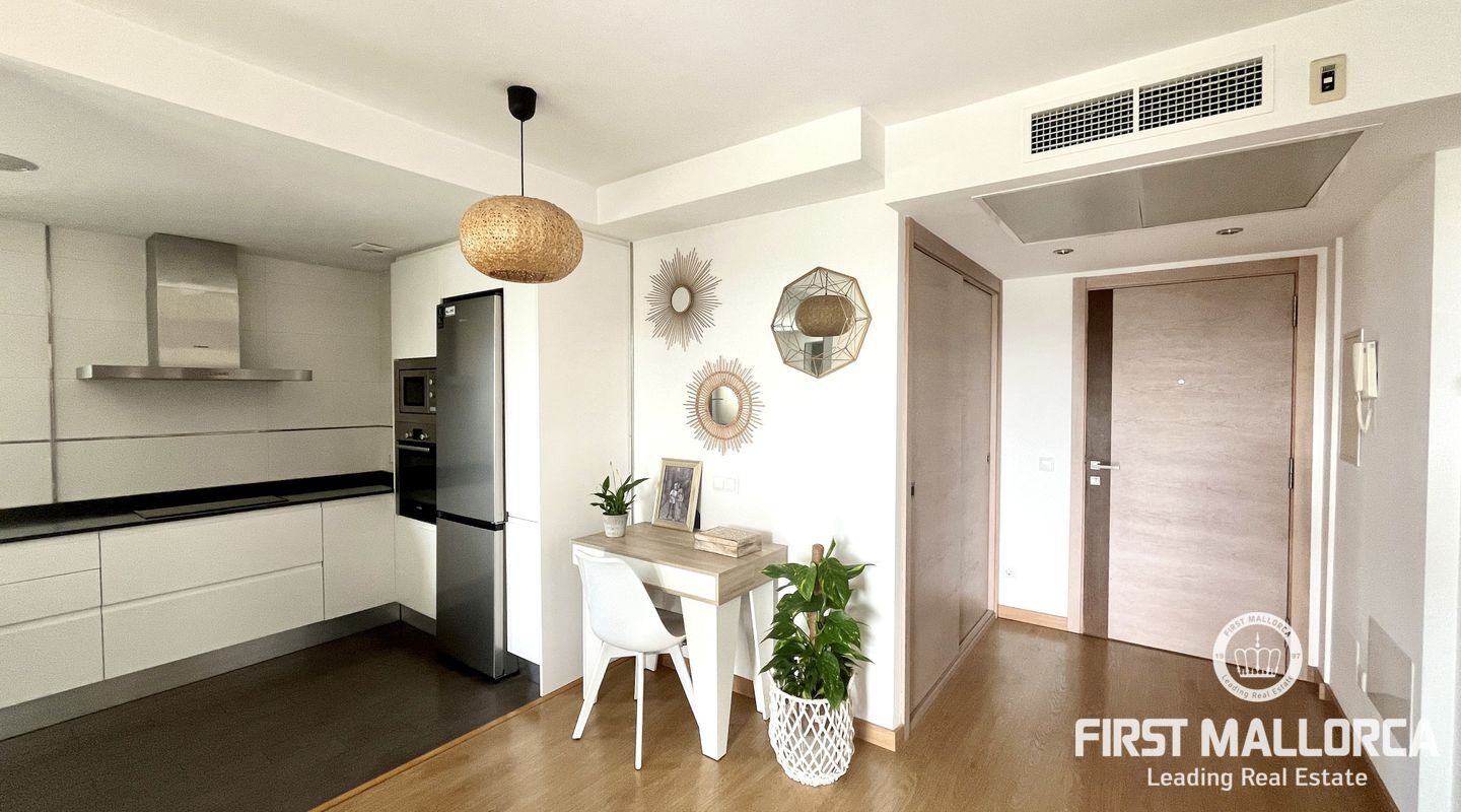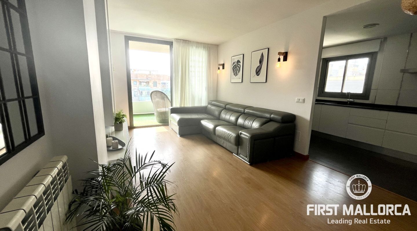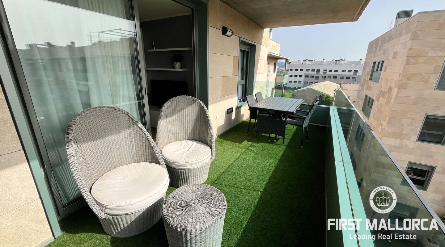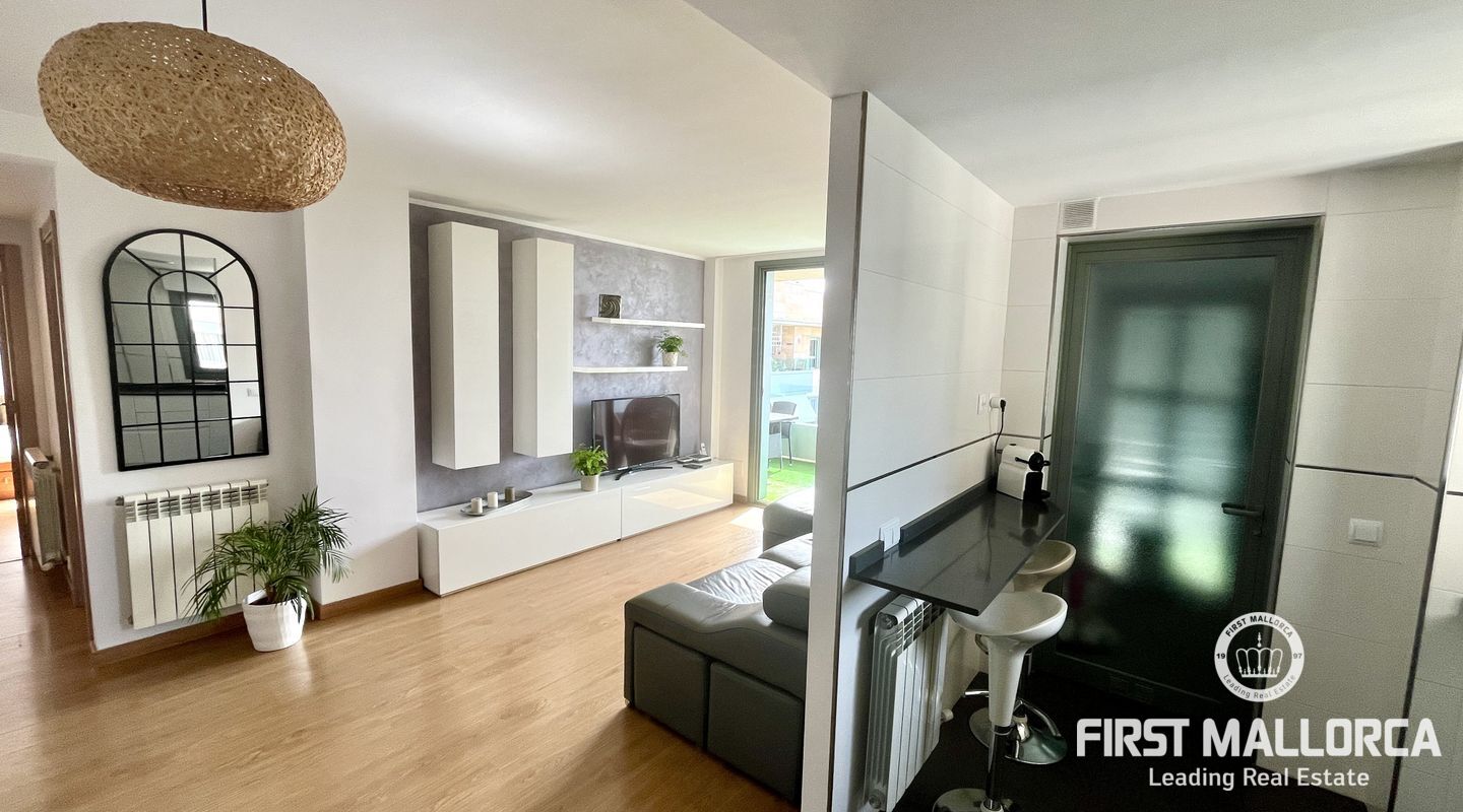 Die Gesamtfläche der Wohnung beträgt 90 Quadratmeter und umfasst zwei geräumige Schlafzimmer, ein Badezimmer mit Dusche, eine voll ausgestattete Küche und ein gemütliches Wohnzimmer mit Zugang zu einem geräumigen Balkon. Es ist erwähnenswert, dass Sie über eine Wendeltreppe auf das Dach gelangen können, um die mallorquinische Sonne auf einer geräumigen privaten Terrasse zu genießen.