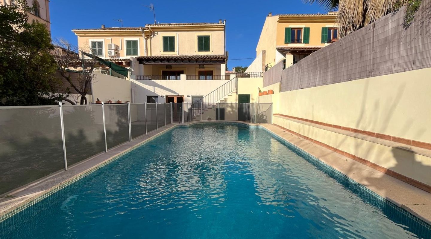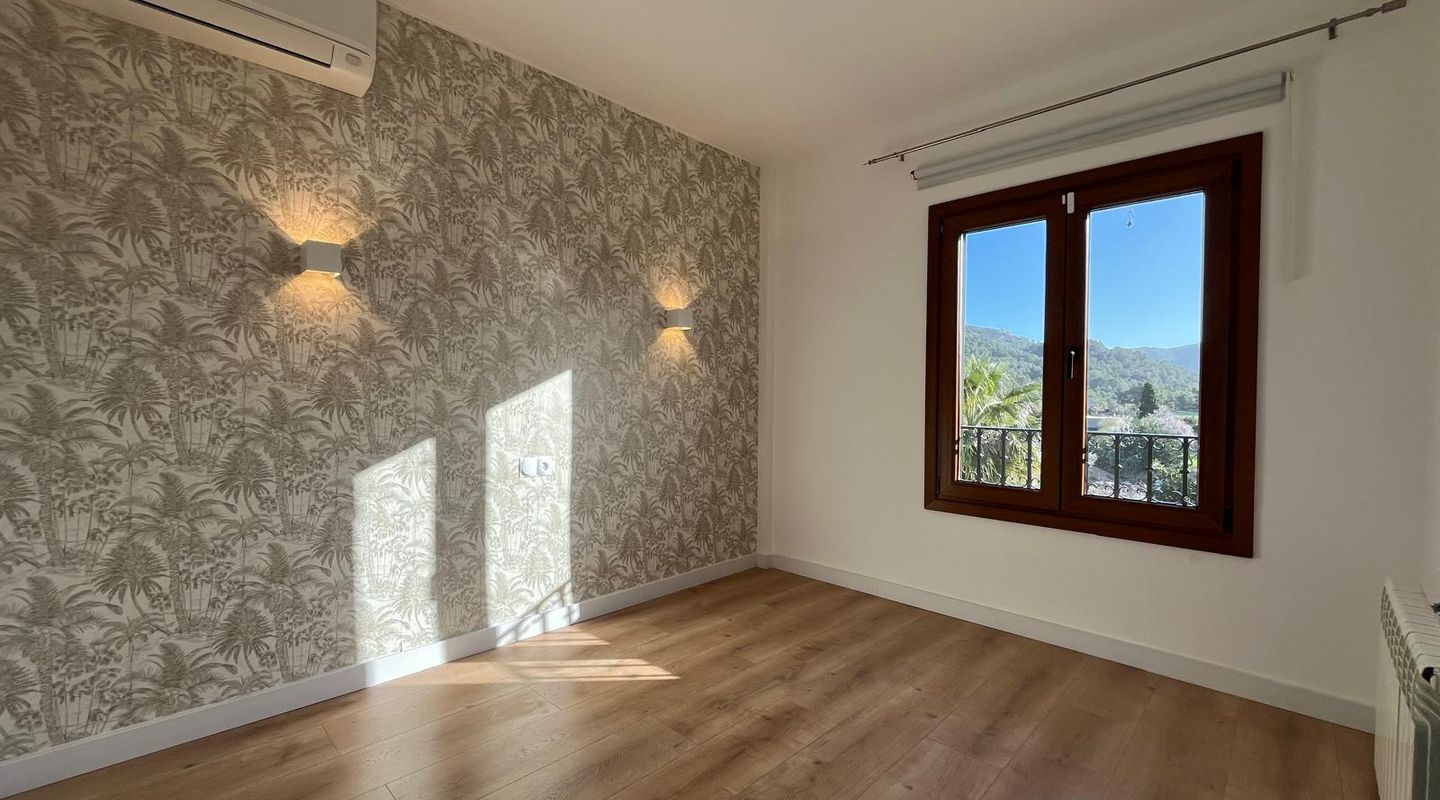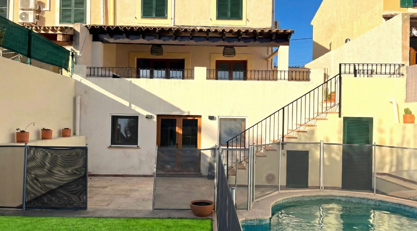 Elegantes, komplett renoviertes Reihenhaus auf drei Etagen, gelegen in der letzten Straße von Calvià Pueblo. Ruhige und private Lage mit Bergblick, Garten und Pool. Nur fünf Gehminuten von allen Dienstleistungen des Dorfes entfernt, vereint dieses Haus modernes Design und hochwertige Materialien mit einem hellen und funktionalen Grundriss und bietet Komfort und Exklusivität. Es verfügt über vier großzügige Schlafzimmer mit Einbauschränken, zwei vollständige Bäder und ein Gäste-WC, ein helles Wohn-Esszimmer im offenen Konzept mit integrierter Küche sowie ein separates Arbeitszimmer, ideal als Fitnessraum, Büro oder Mehrzweckraum. Im Außenbereich gibt es einen privaten Garten und einen Pool mit zertifiziertem Sicherheitssystem sowie drei Terrassen, darunter die Hauptterrasse mit Veranda und Bergblick, perfekt, um das mediterrane Klima das ganze Jahr über zu genießen. Die Küche ist komplett ausgestattet, das Haus verfügt über Klimaanlage (Heiß/Kalt), einen Kamin mit Holzofen, Zentralheizung mit Öl und doppelt verglaste Fenster für Wärme- und Schallschutz. Zwei Parkplätze sind vorhanden, und das Haus liegt in einer ruhigen Straße mit ausgezeichneter Ausrichtung und Privatsphäre. In fünf Gehminuten erreichen Sie Schulen, Supermarkt, Bibliothek, Musikschule, Spielplatz und den Dorfplatz mit Bars und Restaurants. Die Vermietung erfolgt nach Vorlage von Unterlagen, die die finanzielle Solvenz nachweisen. Diese Immobilie ist ideal für alle, die Lebensqualität, Ruhe und Komfort in einer natürlichen Umgebung suchen, ohne auf die täglichen Annehmlichkeiten zu verzichten, nur wenige Minuten von Palma und den besten Stränden im Südwesten Mallorcas entfernt.