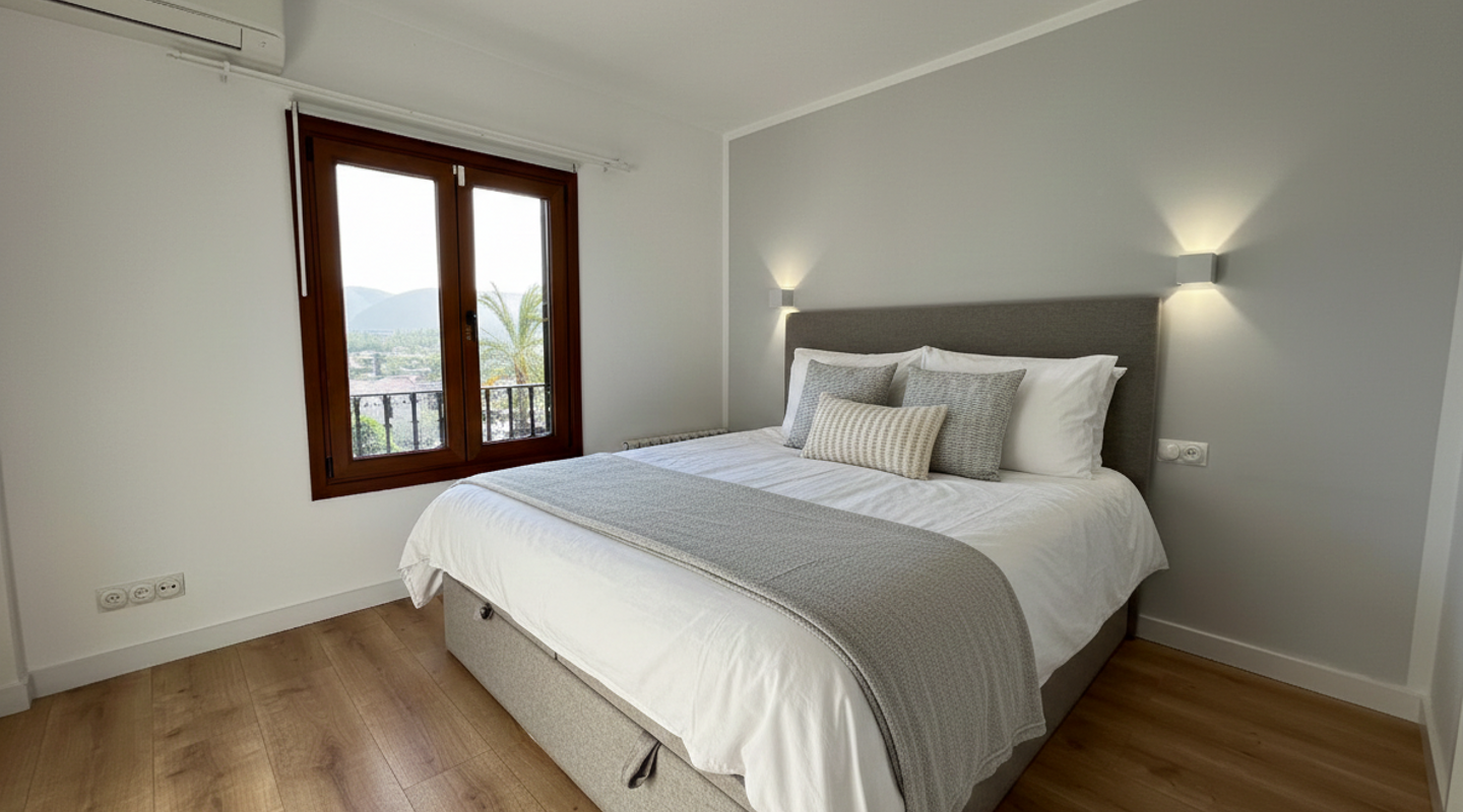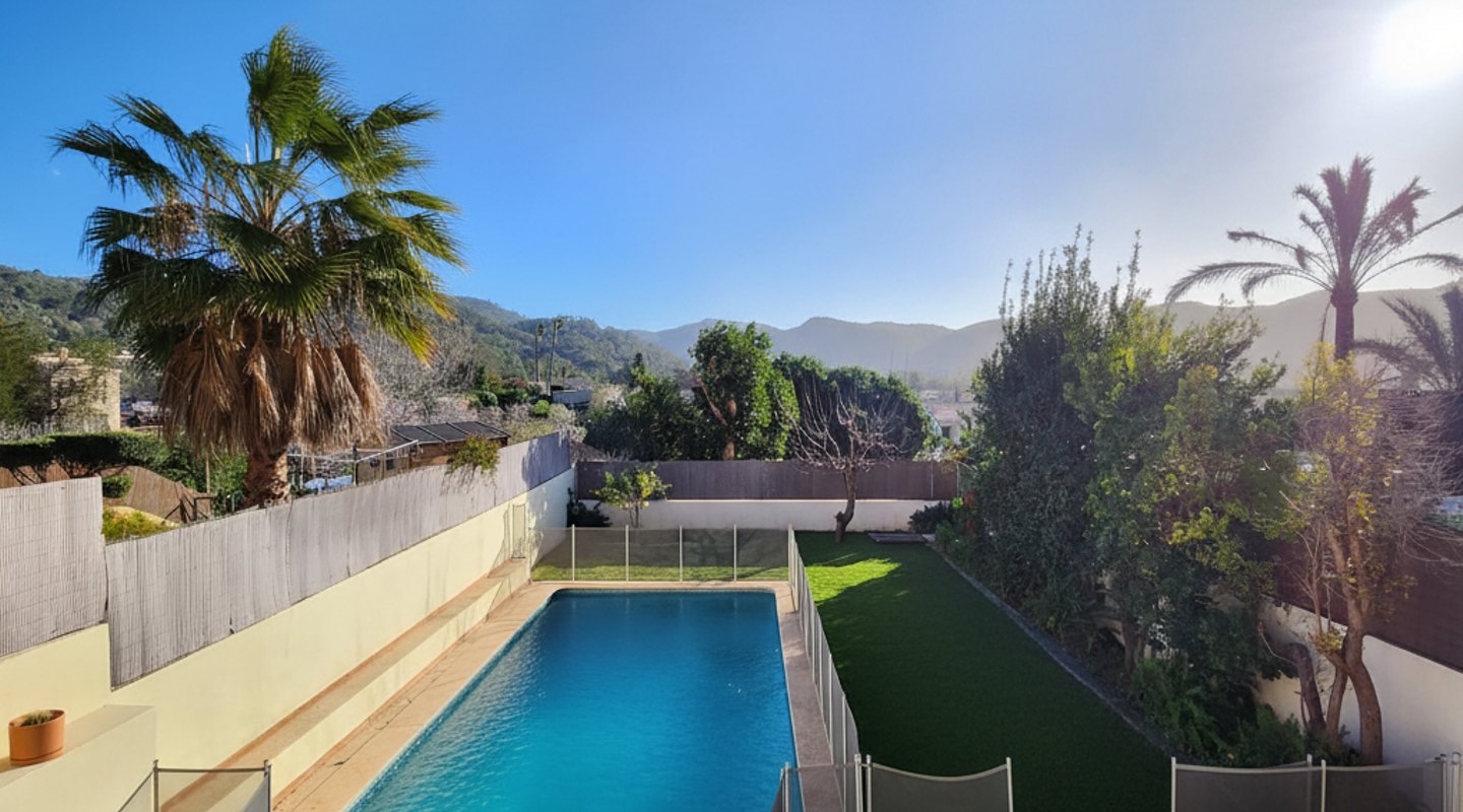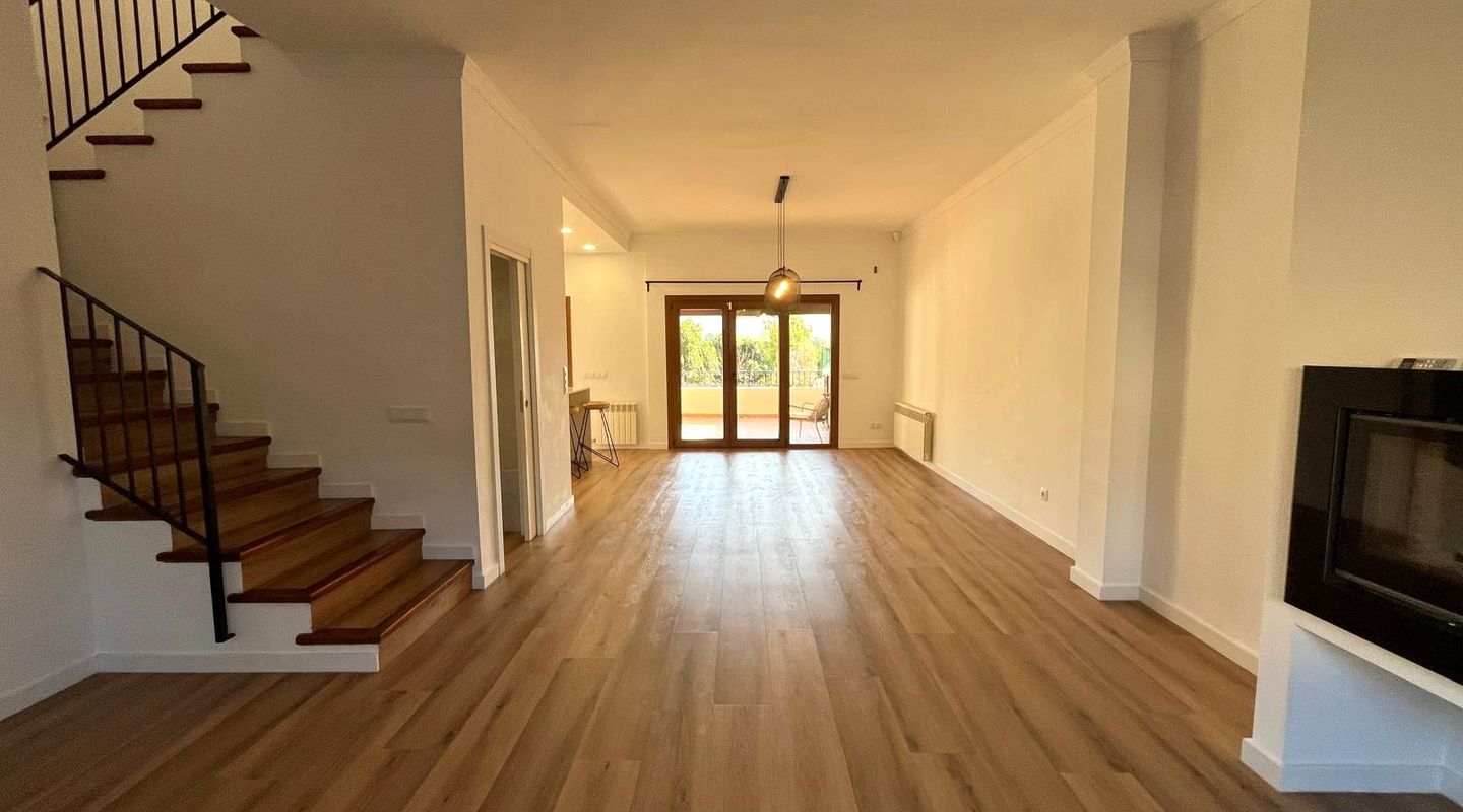 Elegantes, komplett renoviertes Reihenhaus auf drei Etagen, gelegen in der letzten Straße von Calvià Pueblo. Ruhige und private Lage mit Bergblick, Garten und Pool. Nur fünf Gehminuten von allen Dienstleistungen des Dorfes entfernt, vereint dieses Haus modernes Design und hochwertige Materialien mit einem hellen und funktionalen Grundriss und bietet Komfort und Exklusivität. Es verfügt über vier großzügige Schlafzimmer mit Einbauschränken, zwei vollständige Bäder und ein Gäste-WC, ein helles Wohn-Esszimmer im offenen Konzept mit integrierter Küche sowie ein separates Arbeitszimmer, ideal als Fitnessraum, Büro oder Mehrzweckraum. Im Außenbereich gibt es einen privaten Garten und einen Pool mit zertifiziertem Sicherheitssystem sowie drei Terrassen, darunter die Hauptterrasse mit Veranda und Bergblick, perfekt, um das mediterrane Klima das ganze Jahr über zu genießen. Die Küche ist komplett ausgestattet, das Haus verfügt über Klimaanlage (Heiß/Kalt), einen Kamin mit Holzofen, Zentralheizung mit Öl und doppelt verglaste Fenster für Wärme- und Schallschutz. Zwei Parkplätze sind vorhanden, und das Haus liegt in einer ruhigen Straße mit ausgezeichneter Ausrichtung und Privatsphäre. In fünf Gehminuten erreichen Sie Schulen, Supermarkt, Bibliothek, Musikschule, Spielplatz und den Dorfplatz mit Bars und Restaurants. Die Vermietung erfolgt nach Vorlage von Unterlagen, die die finanzielle Solvenz nachweisen. Diese Immobilie ist ideal für alle, die Lebensqualität, Ruhe und Komfort in einer natürlichen Umgebung suchen, ohne auf die täglichen Annehmlichkeiten zu verzichten, nur wenige Minuten von Palma und den besten Stränden im Südwesten Mallorcas entfernt.