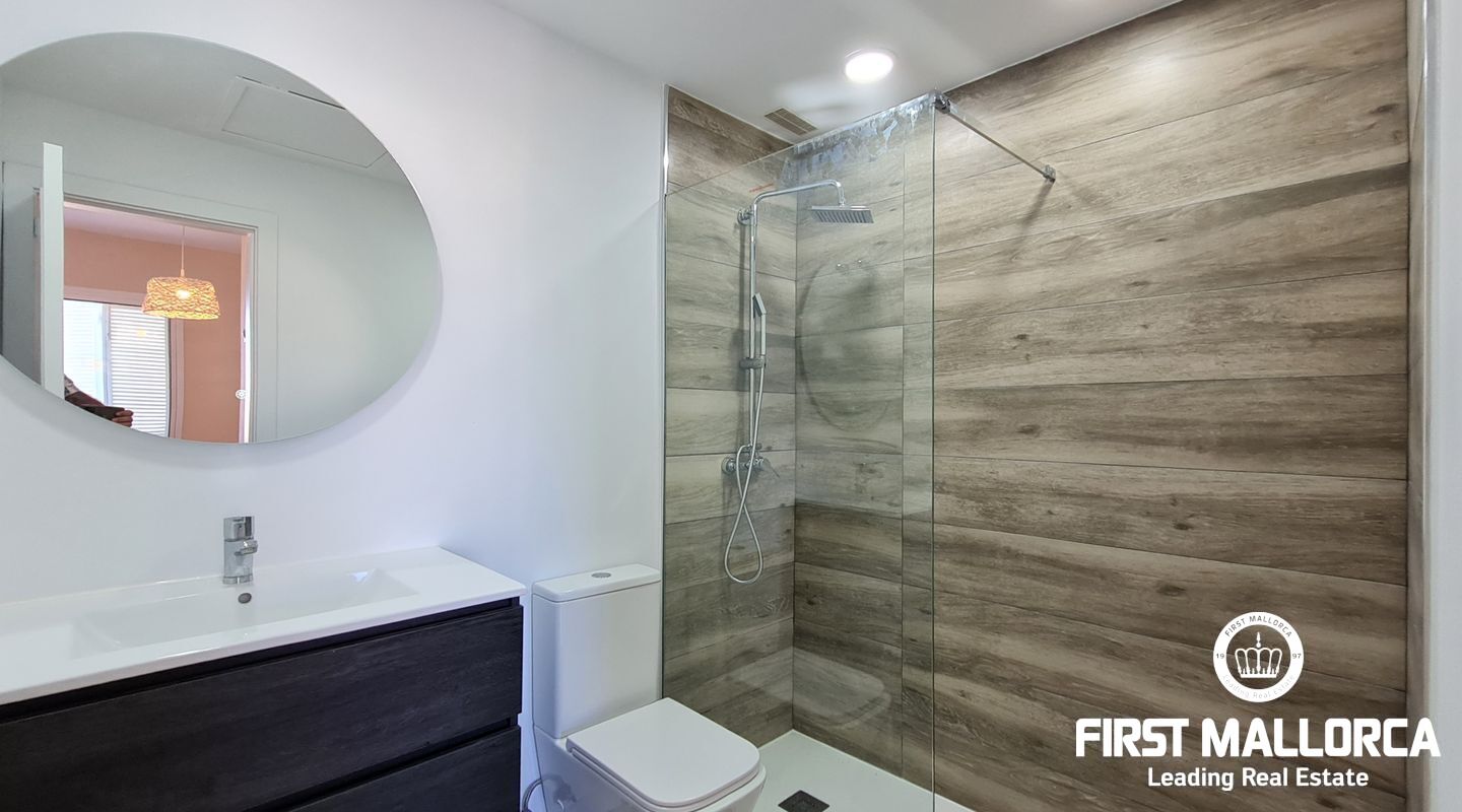 Im ersten Stock befinden sich 4 Schlafzimmer ähnlicher Größe, alle mit eigenem Bad und Einbauschränken. Zwei von ihnen haben Terrassen, eine auf der Vorderseite mit teilweisem Meerblick und die andere auf der Rückseite mit freiem Blick.