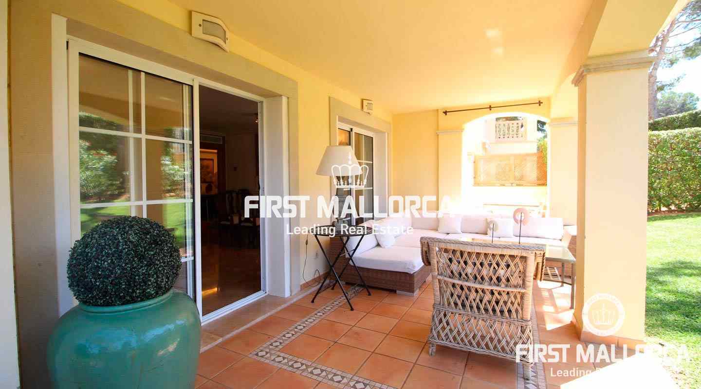 Es verfügt über eine große Eingangshalle und ein geräumiges Wohn- und Esszimmer mit Zugang zu einer großen überdachten und nicht überdachten Terrasse und einem privaten Garten. Die Erdgeschosswohnung verfügt über 3 Schlafzimmer mit Einbauschränken, 3 Badezimmer (alle en suite), eine Gästetoilette und eine Einbauküche mit Hauswirtschaftsraum. Alle Zimmer haben Zugang nach außen. Zur Ausstattung gehören eine Klimaanlage und eine zentrale Gasheizung in allen Zimmern.