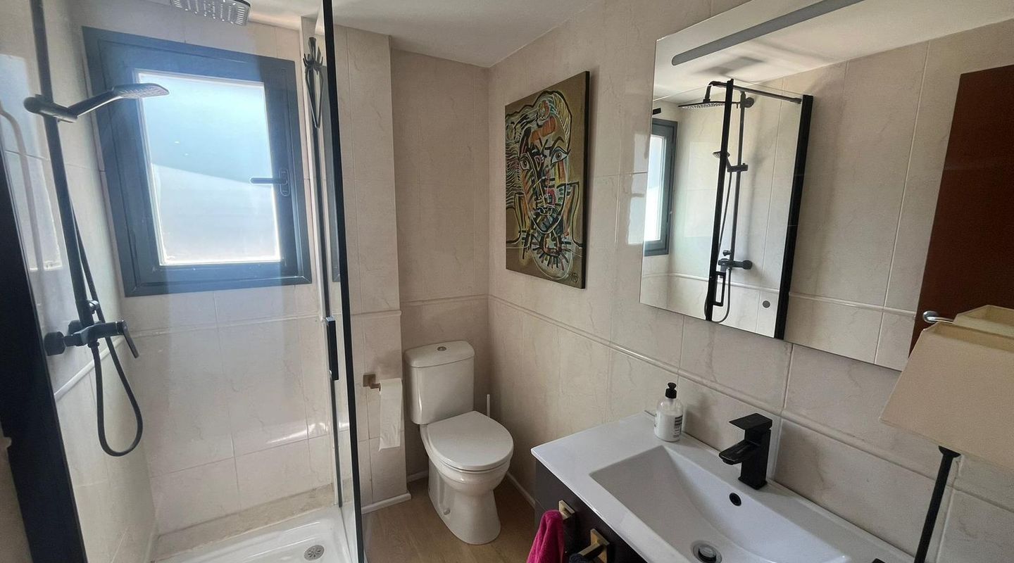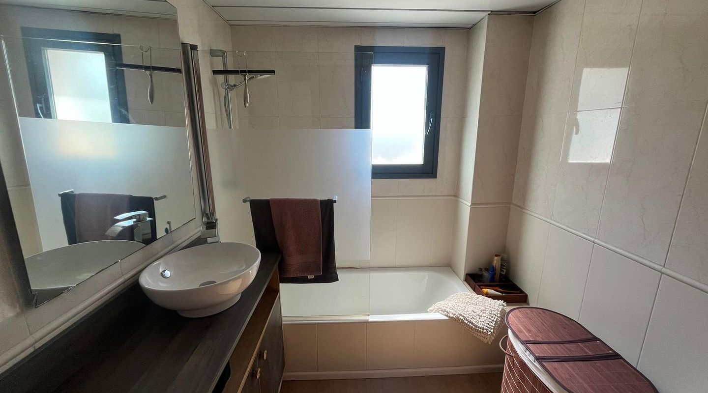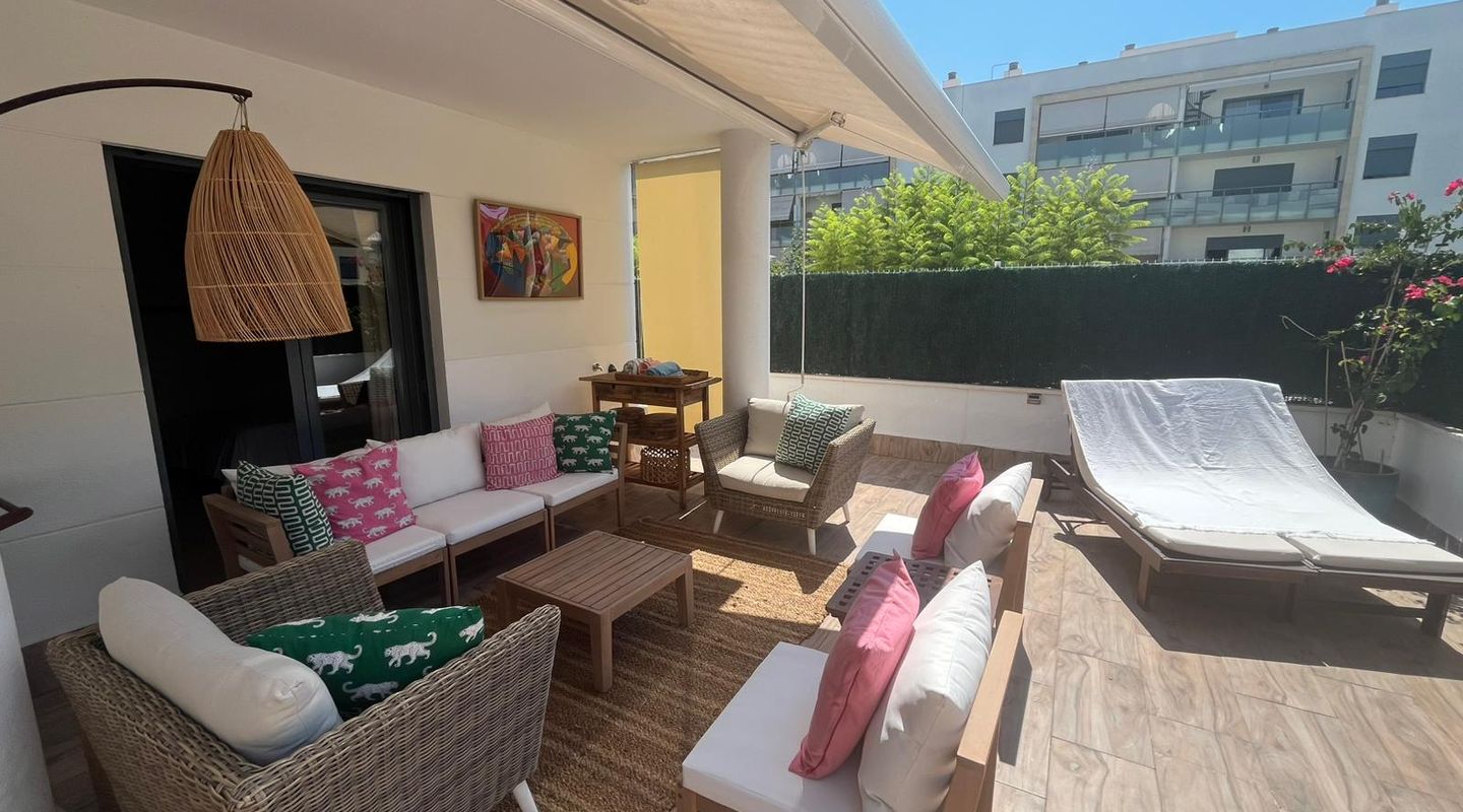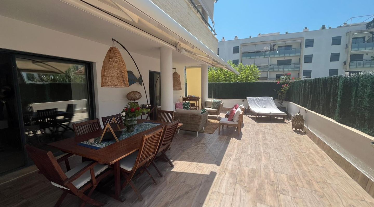 Die Wohnung verfügt über eine durchdachte und elegante Aufteilung: ein großzügiges Wohn-Esszimmer mit direktem Zugang zur Terrasse, 2 helle Schlafzimmer, 2 Badezimmer und eine komplett ausgestattete Küche. Das Highlight ist die große private Terrasse, die die Wohnung auf drei Seiten umgibt und von allen Räumen aus zugänglich ist – der perfekte Ort, um die Sonne zu genießen, im Freien zu essen oder einfach zu entspannen.