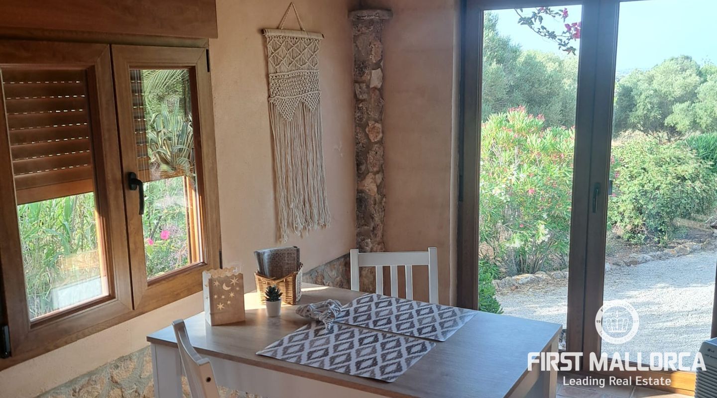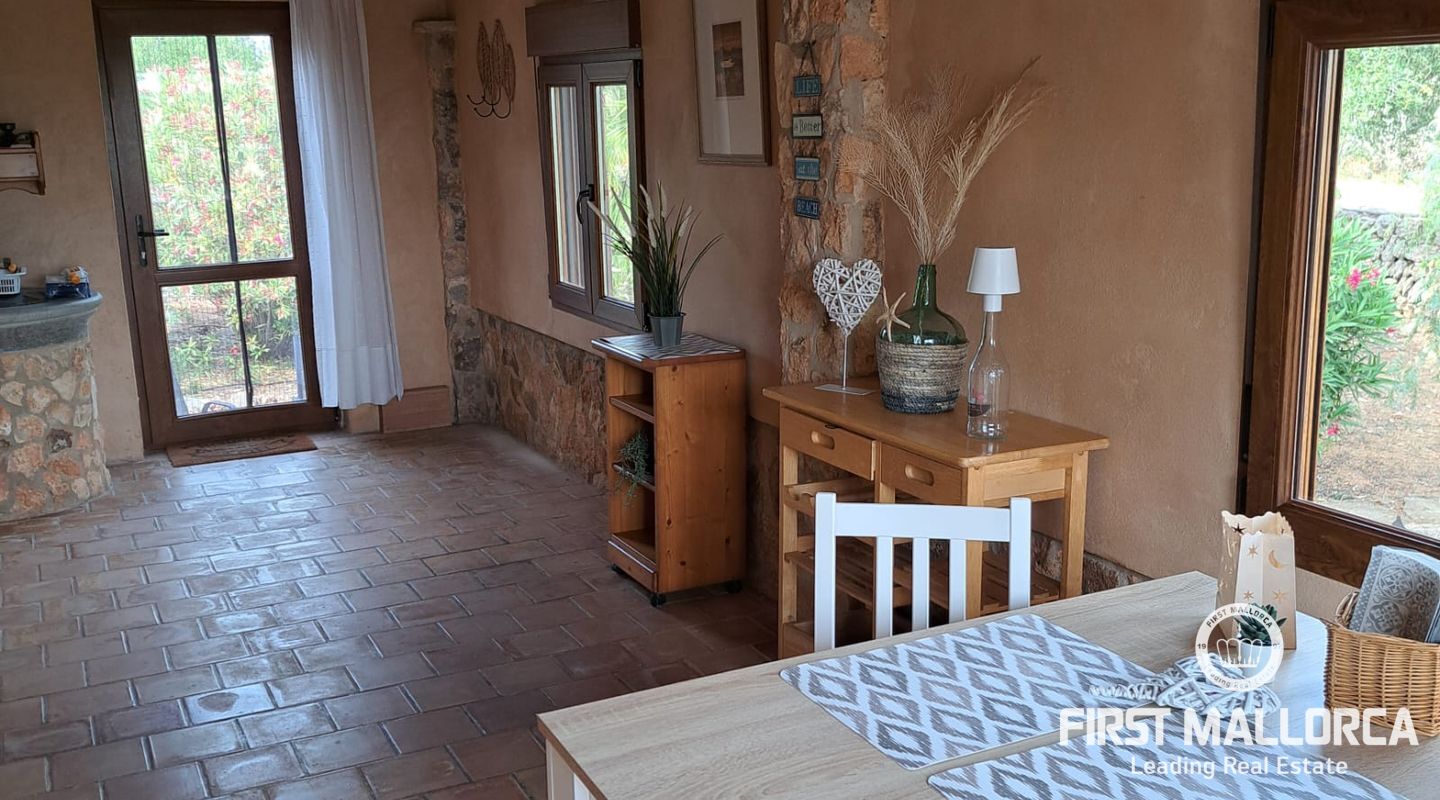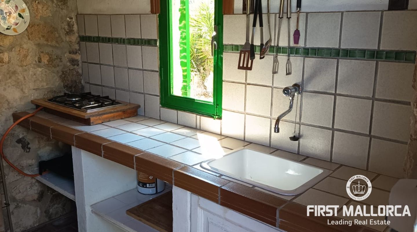 Es befindet sich in einer ca. 3.000 m² großen Finca, die komplett mit einer Mauer eingezäunt ist. Das Haus selbst hat eine Größe von ca. 90 m² und verfügt über ein Wohn-/Schlafzimmer, ein Esszimmer. Die Küche ist im Inneren des Hauses komplett möbliert und funktional. Im Außenbereich befindet sich eine weitere Küche, die sich ideal für die Zubereitung von Mahlzeiten mit Freunden auf einer der Terrassen eignet. Es gibt auch ein helles, kürzlich renoviertes Badezimmer.