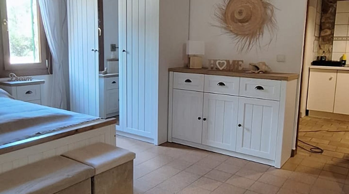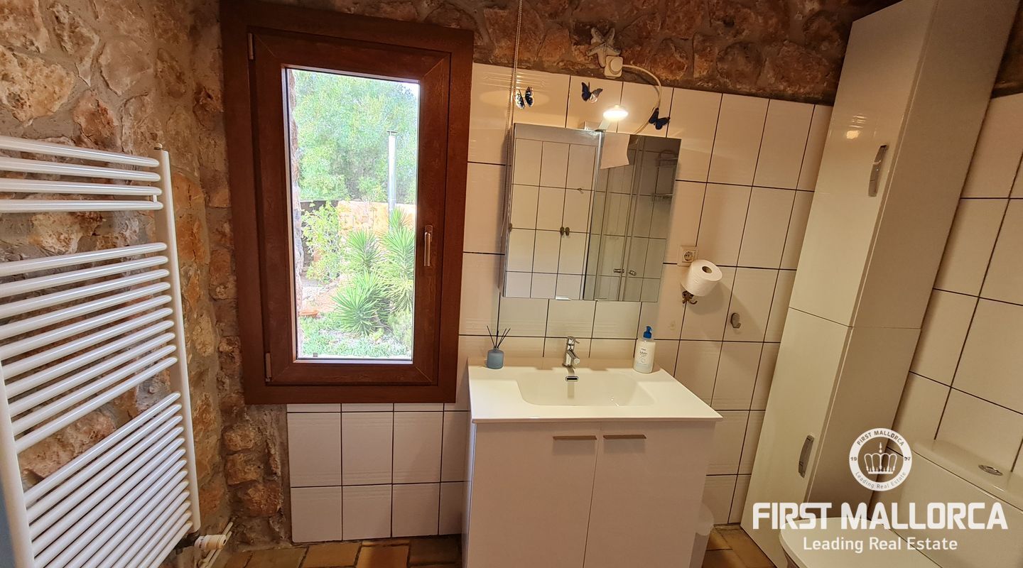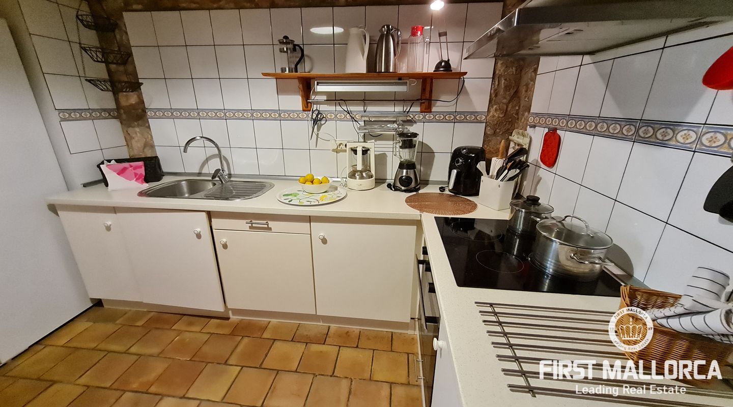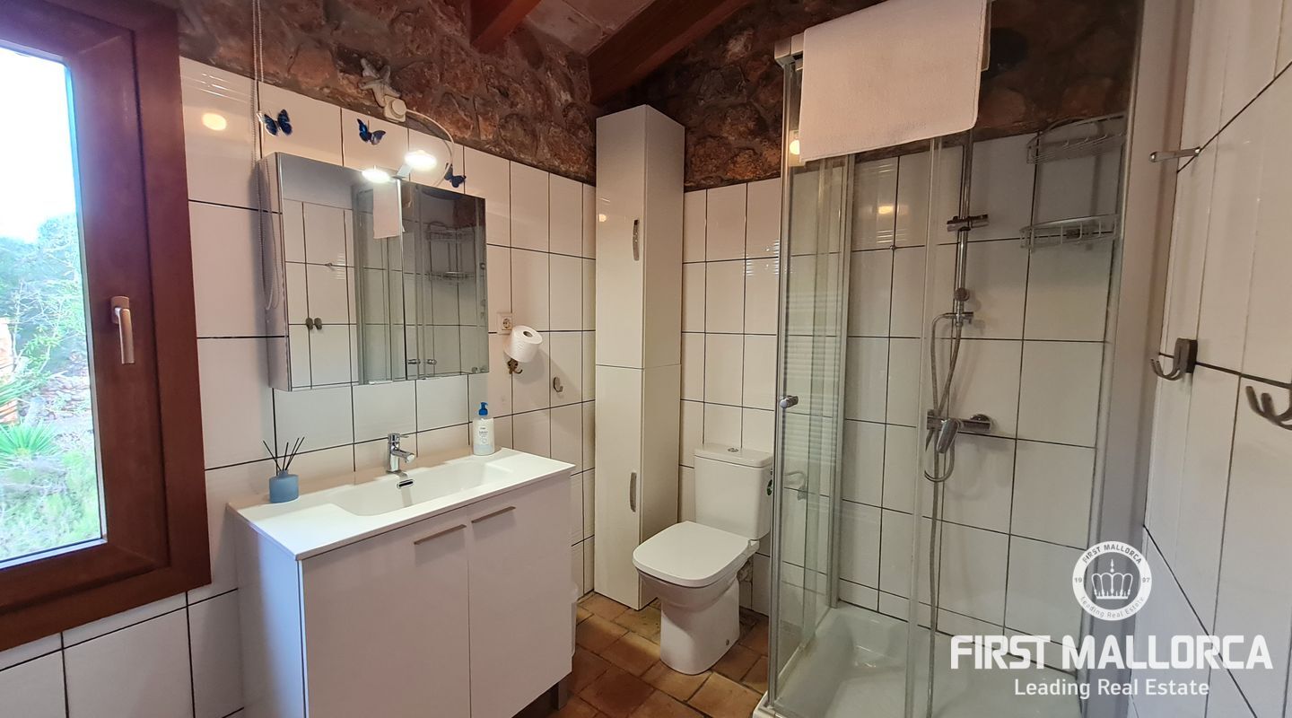 Es befindet sich in einer ca. 3.000 m² großen Finca, die komplett mit einer Mauer eingezäunt ist. Das Haus selbst hat eine Größe von ca. 90 m² und verfügt über ein Wohn-/Schlafzimmer, ein Esszimmer. Die Küche ist im Inneren des Hauses komplett möbliert und funktional. Im Außenbereich befindet sich eine weitere Küche, die sich ideal für die Zubereitung von Mahlzeiten mit Freunden auf einer der Terrassen eignet. Es gibt auch ein helles, kürzlich renoviertes Badezimmer.
