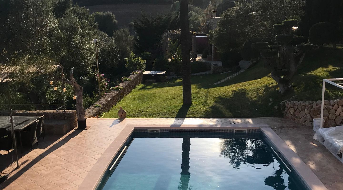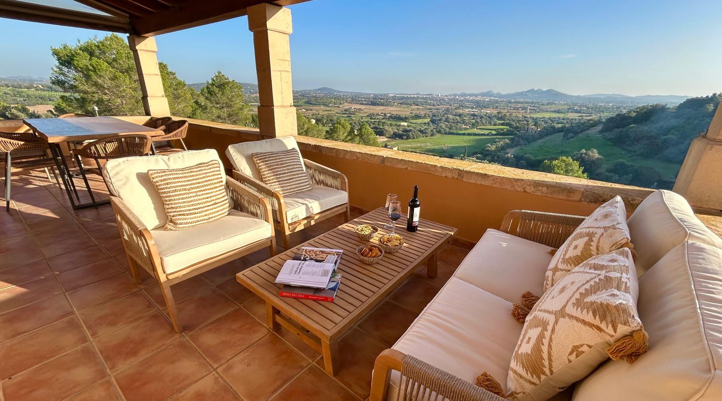 Das großzügige Grundstück ist ein echtes Highlight: Umgeben von Natur genießen Sie einen atemberaubenden Panoramablick bis nach Manacor. Der gepflegte Garten, die sonnige Terrasse sowie der private Pool laden zum Entspannen, Genießen und Verweilen ein – ein Ort, an dem man sofort ankommt und sich wohlfühlt.