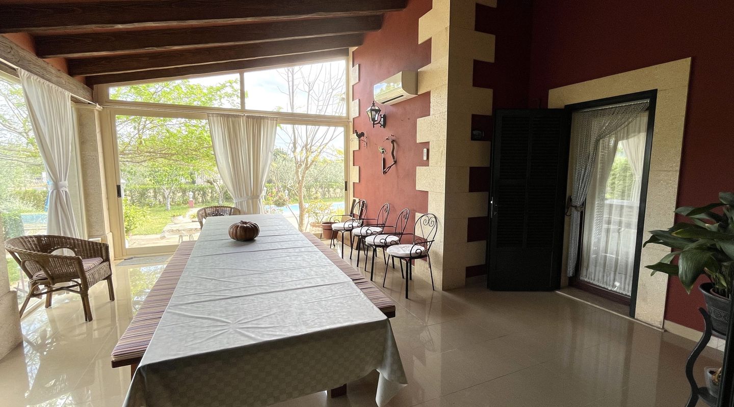 Entdecken Sie Ihren Traum vom rustikalen Rückzugsort in Selva. Diese 236m2 große Finca befindet sich auf einem großzügigen 2.210m2 großen Grundstück und bietet die perfekte Mischung aus rustikalem Charme und Komfort. Mit 4 Schlafzimmern (eines davon im Erdgeschoss), 2 geräumigen Bädern (eines davon im Erdgeschoss), einem gemütlichen Büro und mehreren einladenden Wohnbereichen bietet das Haus viel Platz. Ein charmantes Esszimmer und ein zweiter Essbereich haben große Fenster, die einen malerischen Blick auf den üppigen Garten mit Obstbäumen und den privaten Swimmingpool bieten. Das Herzstück des Hauses, eine voll ausgestattete Küche mit einem praktischen Hauswirtschaftsraum, wartet auf Ihre kulinarischen Abenteuer. Das Haus ist komplett möbliert und mit Annehmlichkeiten wie Klimaanlage, Gasöl-Heizung, doppelt verglasten Fenstern zur Wärme- und Schalldämmung sowie LED-Beleuchtung ausgestattet, die die doppelhohen Decken mit sichtbaren Holzbalken akzentuiert. Es gibt einen überdachten Parkplatz für 2 Autos. Ideal gelegen, nur einen Kilometer vom Dorf entfernt, sind Cafés, Bars und Schulen leicht zu erreichen, während Sie die Ruhe Ihrer ländlichen Oase genießen können. Genießen Sie die Essenz des rustikalen Lebens und kontaktieren Sie unser Team, um Ihre Besichtigung noch heute zu vereinbaren.