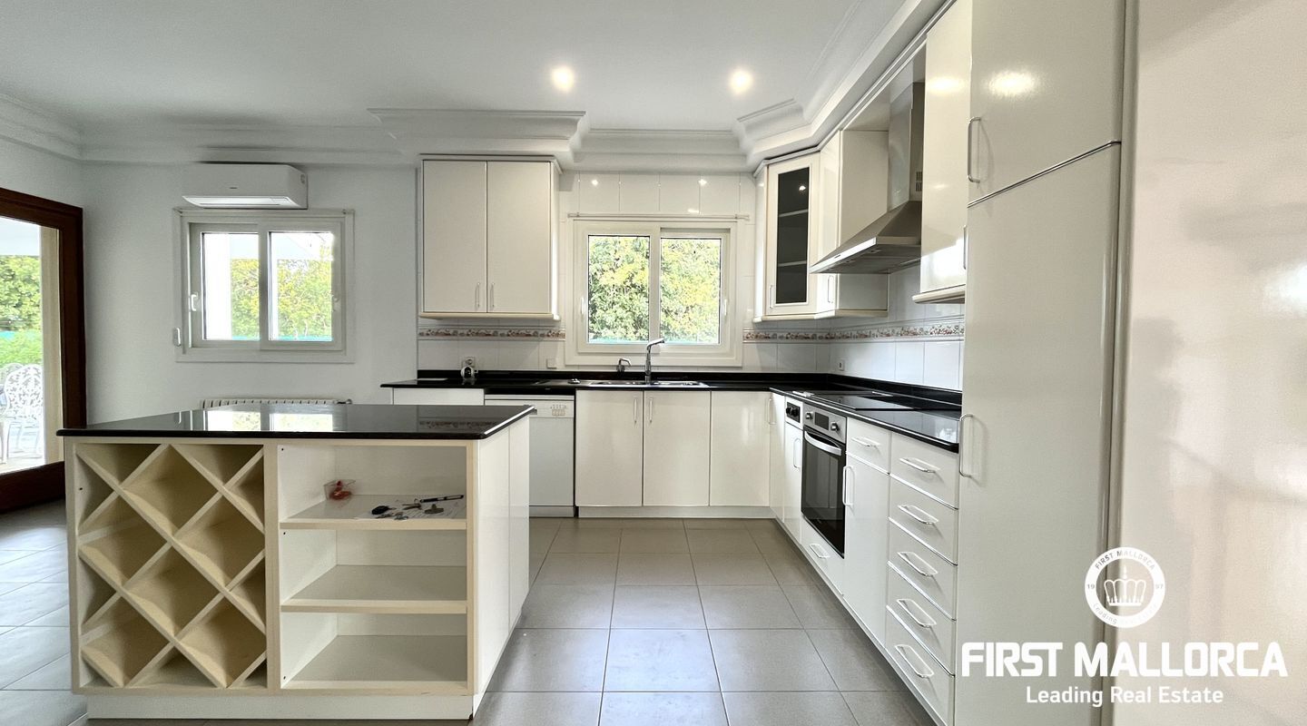 Die Villa verfügt über vier Schlafzimmer, jedes mit eigenem Bad en suite, darunter eine Master-Suite mit begehbarem Kleiderschrank. Die großzügigen Wohnbereiche, ein gemütlicher Kamin und eine geräumige, voll ausgestattete Küche schaffen eine warme und funktionale Atmosphäre. Zudem gibt es ein separates Fernsehzimmer und ein Büro – perfekt für alle, die von zu Hause aus arbeiten.