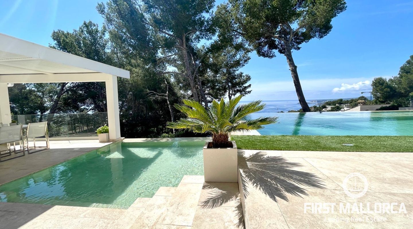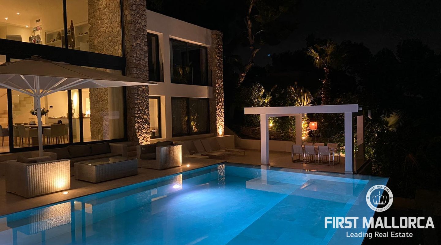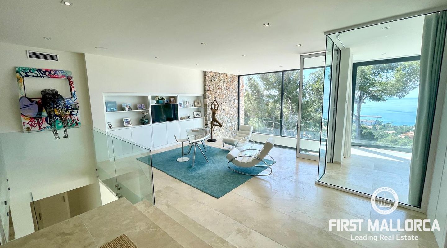 Das Haus ist mit einzigartigen Kunstwerken und Gemälden dekoriert und verfügt über eine durchgehende Klimaanlage sowie eine überdachte, offene Garage. Die Villa steht zur Miete im Juli und August zur Verfügung – ideal, um den Sommer auf dieser idyllischen Insel in luxuriöser Umgebung mit Blick auf den berühmten Puerto Portals und seine eleganten Yachten und Segelboote zu erleben.