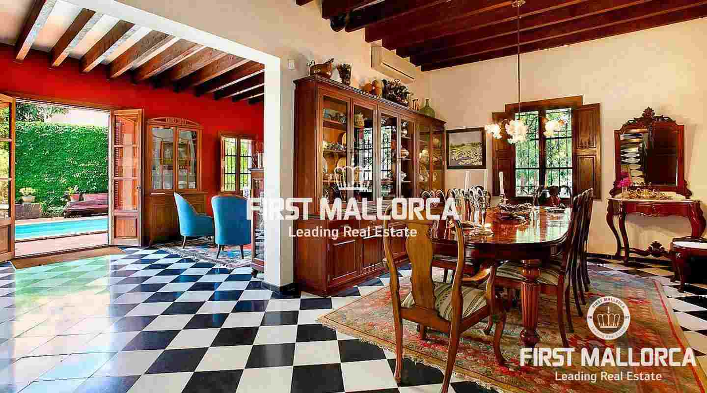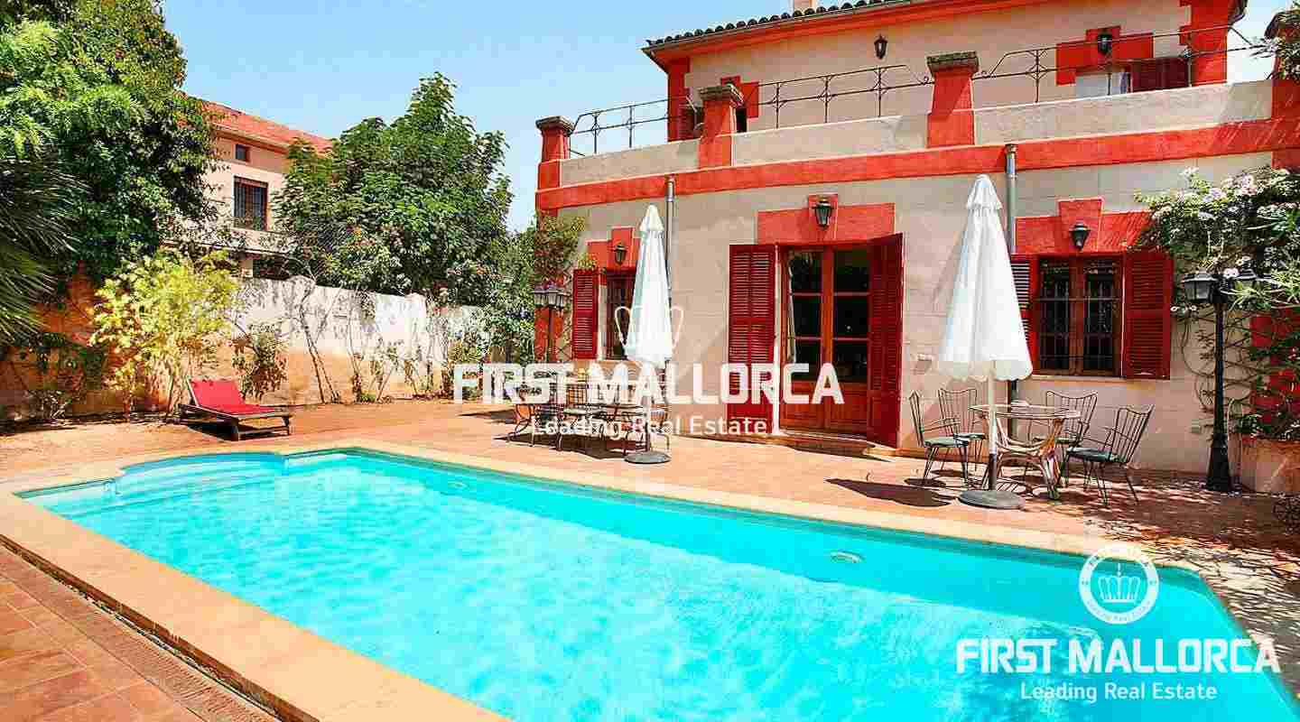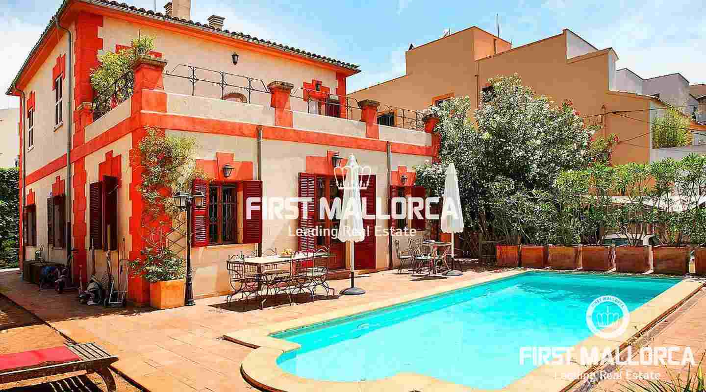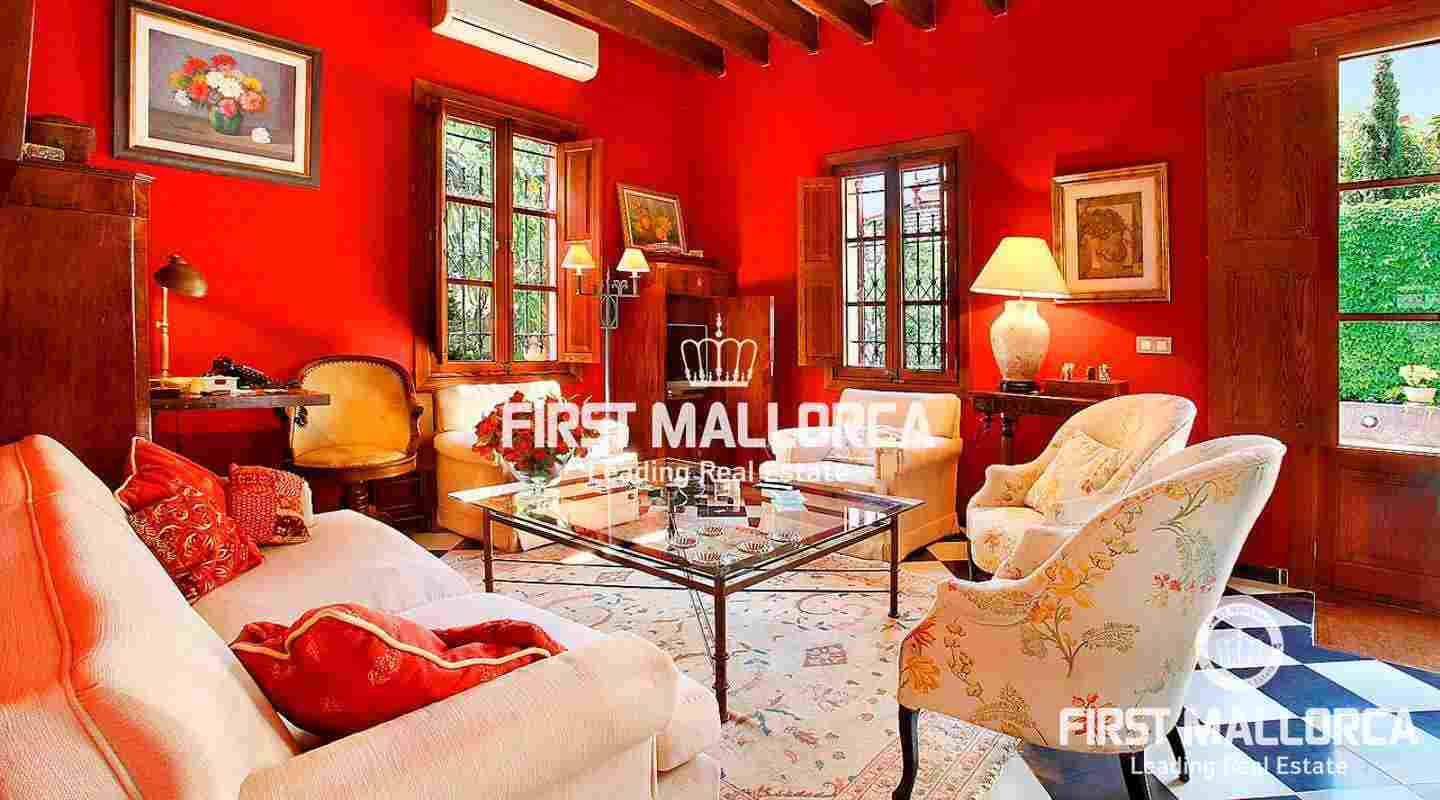 Beeindruckendes, zu Beginn des 20. Jahrhunderts erbautes Haus, mit hochwertigen Materialien renoviert. Die Mallorca Immobilie befindet sich in El Terreno, einem ruhigen Wohngebiet von Palma. Das Haus mit 6 Schlafzimmern und 4 Bädern liegt auf einem 620 m2 grossen Grundstück und hat eine bebaute Fläche von ca. 300 m2, die sich in zwei Etagen plus Gästeapartment und Gästehaus aufteilt. Daneben gibt es 60 m2 verschiedene offene Terrassen sowie einen mediterranen Garten mit Pool. Weitere Ausstattungsmerkmale sind: Kamin und 2 Parkplätze.