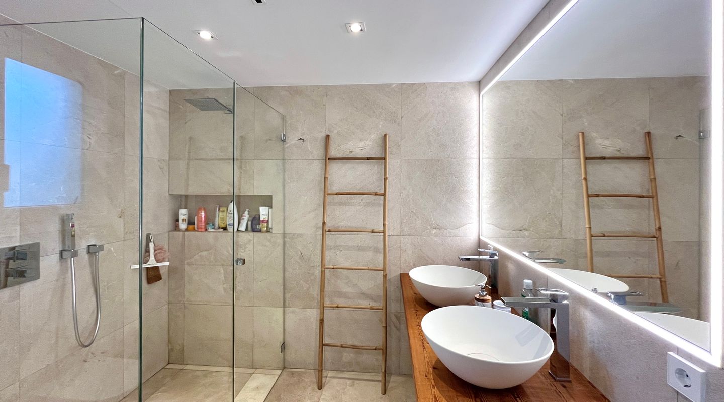 Die Villa ist mit Klimaanlage über Kanäle, Fußbodenheizung mittels Aerothermie, Wasserenthärter, Osmosefiltern in der Küche, Sicherheitssystem und einem privaten Parkplatz für zwei Autos ausgestattet. Alles befindet sich in einwandfreiem Zustand – bezugsfertig ab dem ersten Tag.