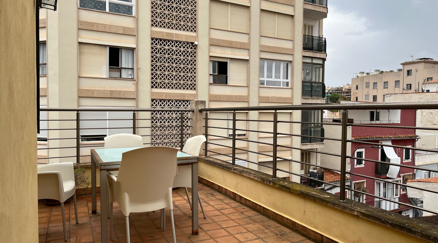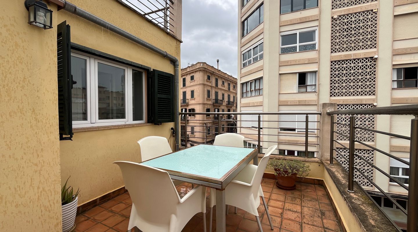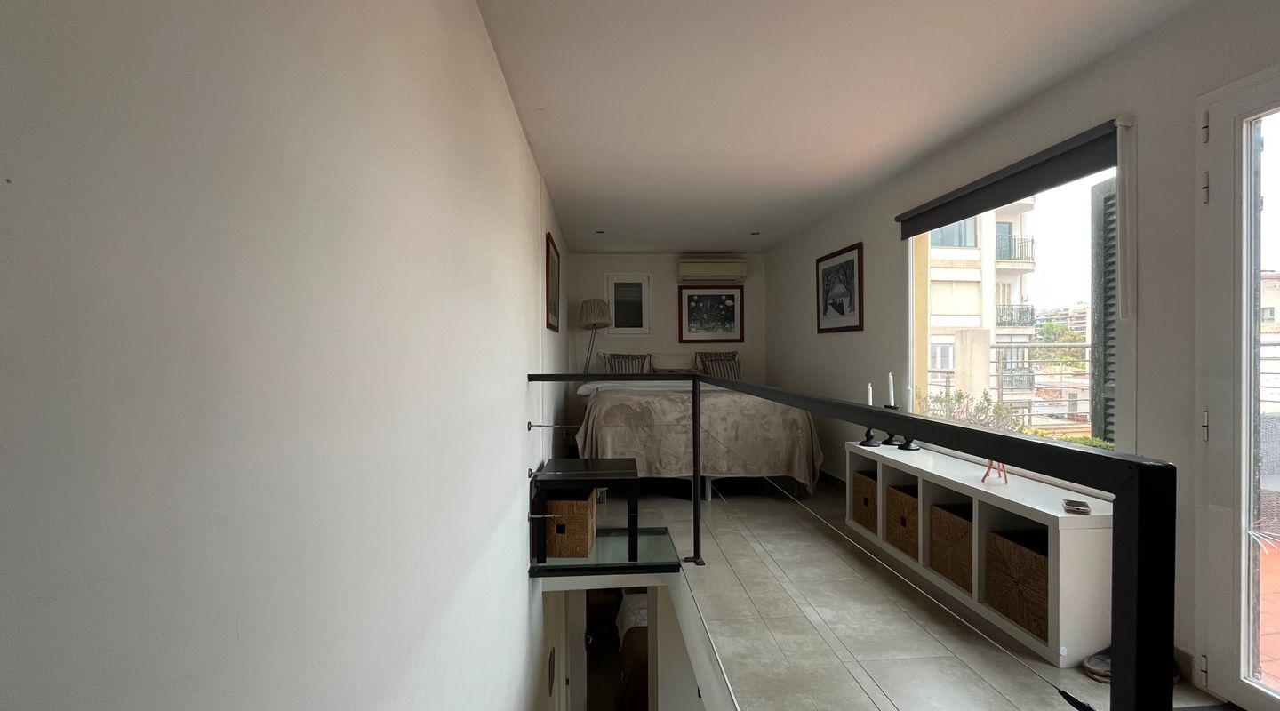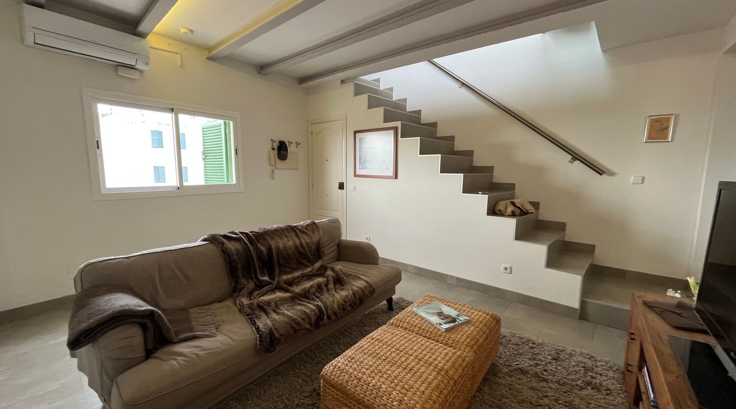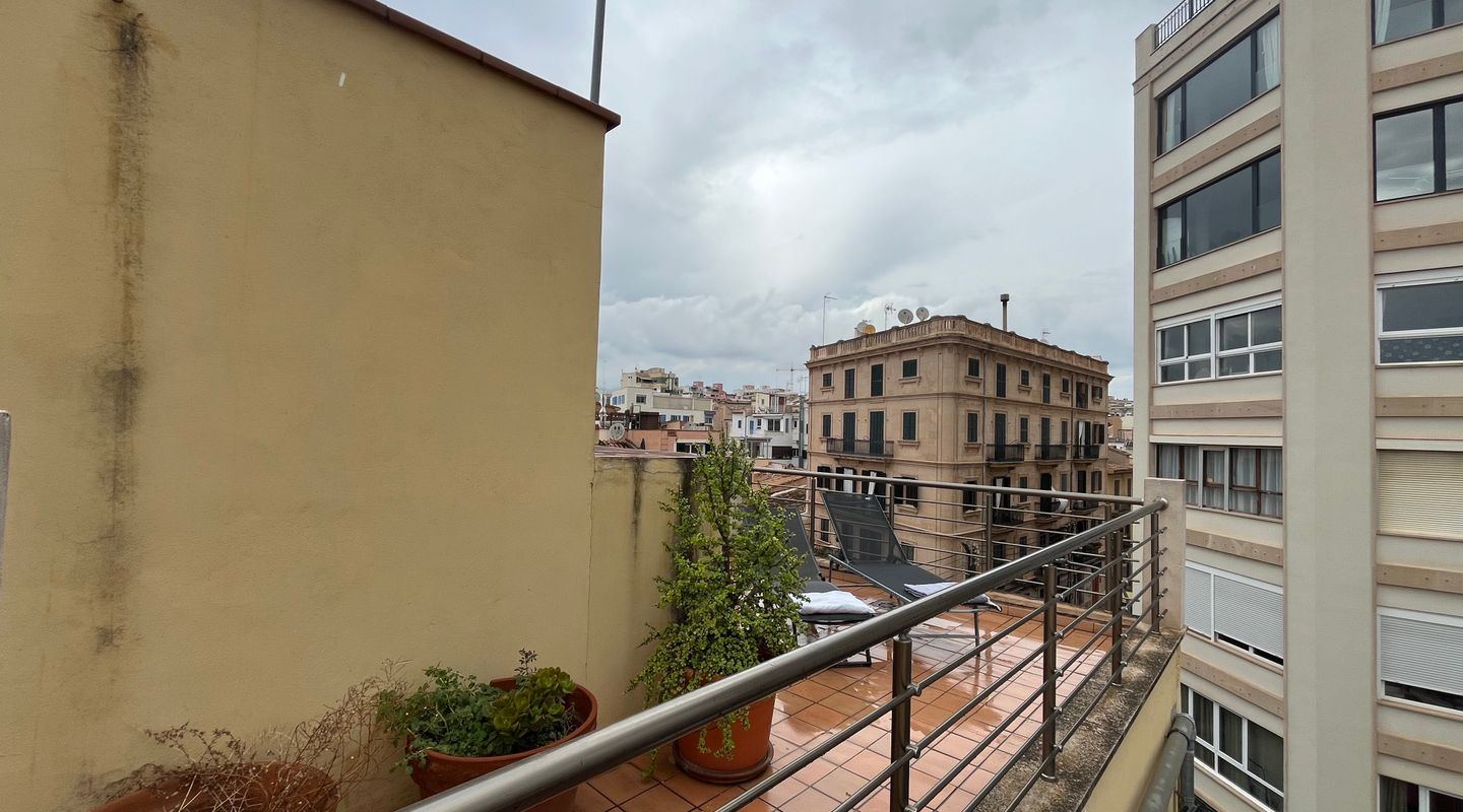 Auf zwei Ebenen verteilt bietet es 60 m² Wohnfläche und zwei herrliche Terrassen: eine 13 m² große Terrasse neben der Küche und eine 38 m² große Dachterrasse mit offenem Blick auf die Kathedrale, das Meer und die Dächer von Palma.