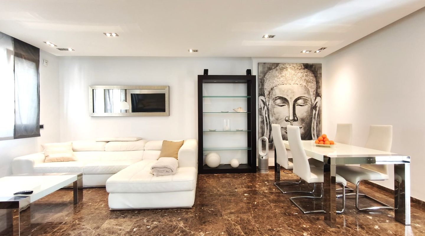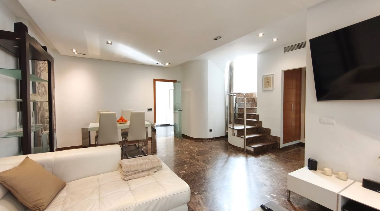 Dieses elegante Reihenhaus überzeugt durch sein geschmackvolles Interieur, hochwertige Ausstattungsmerkmale und eine hervorragende Lage in El Molinar, einer der begehrtesten Wohngegenden Palmas, nur wenige Schritte vom Meer entfernt.
