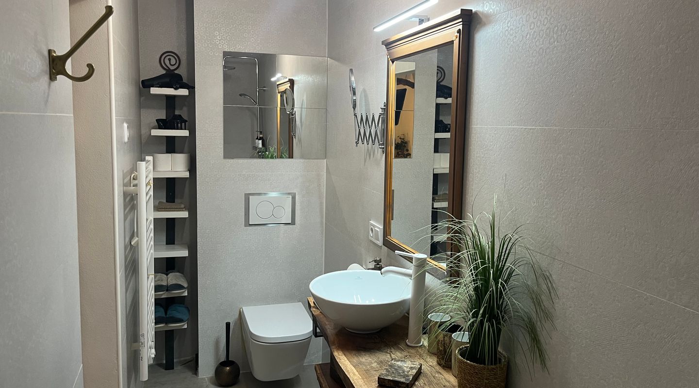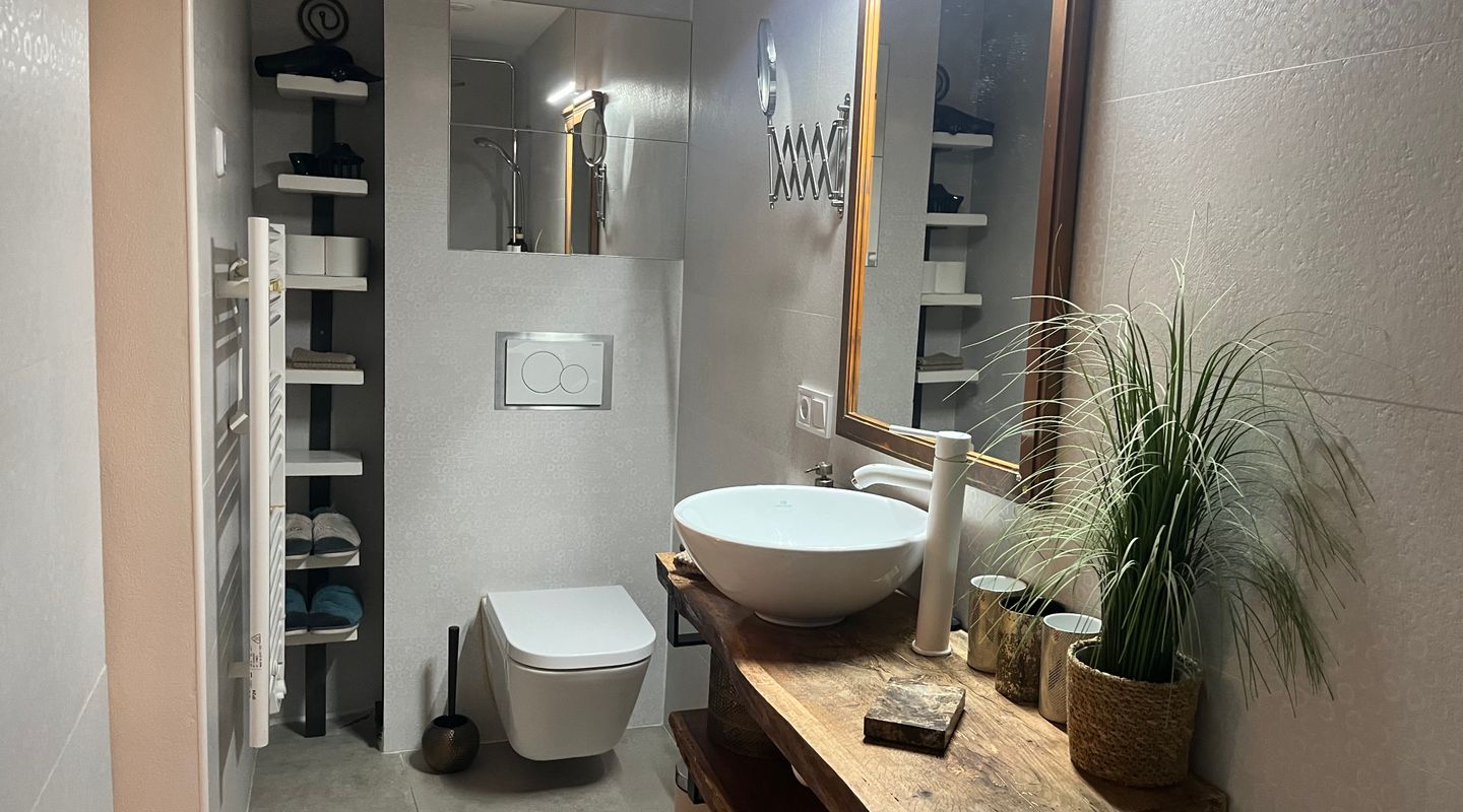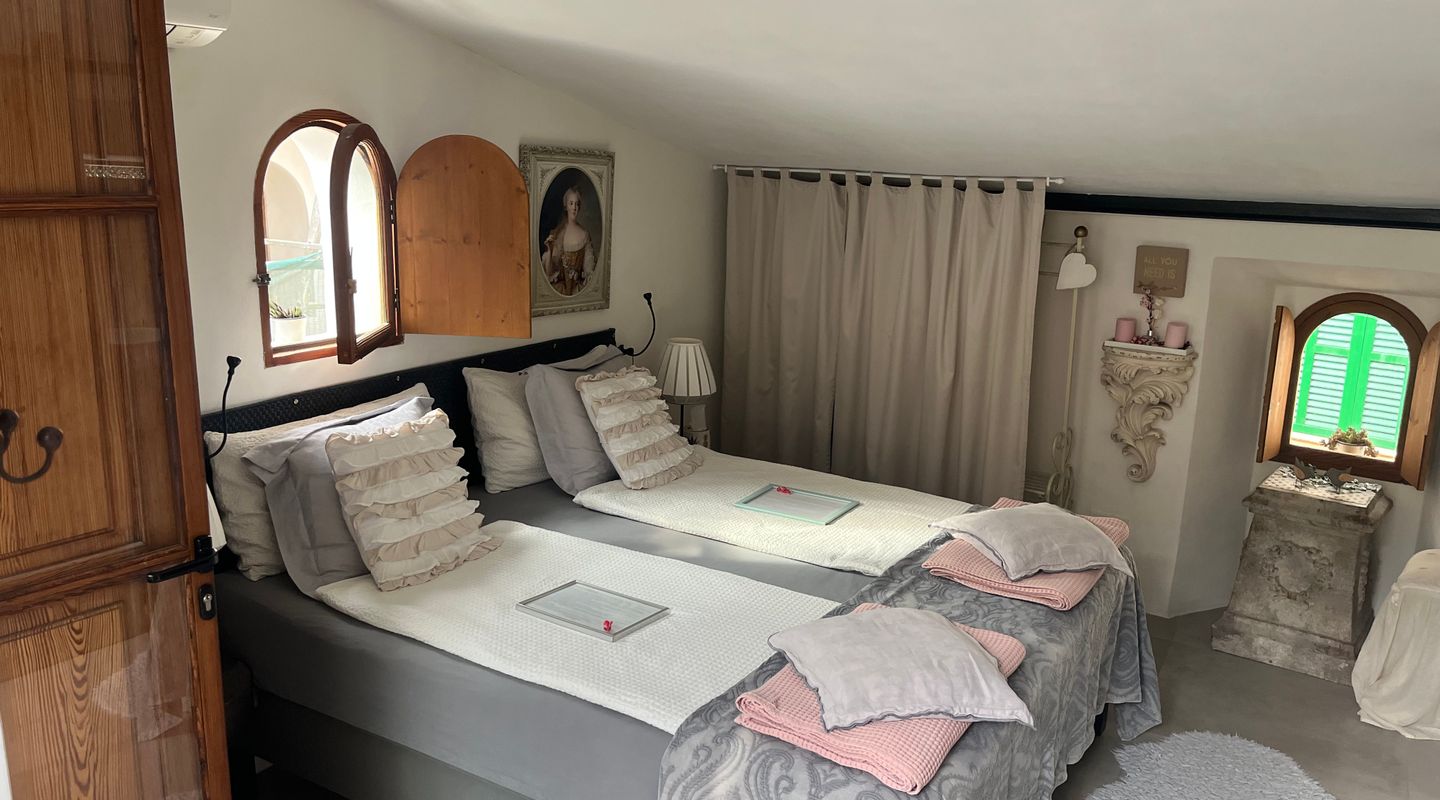 Das Haus verfügt über zwei Doppelschlafzimmer mit jeweils eigenem Badezimmer. Beide Schlafzimmer sind mit einer Klimaanlage ausgestattet, die in den Wintermonaten auch als Heizung dient.