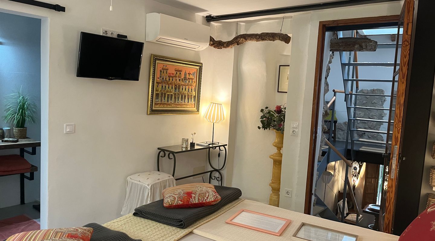 Im Erdgeschoss befinden sich der Eingangsbereich, das voll eingerichtete Wohnzimmer und eine einfache Küche. Über der Küche befindet sich auf einem Zwischengeschoss ein kleiner Essbereich. Von einem der Schlafzimmer aus gelangt man auf eine gemütliche Dachterrasse, die zum Entspannen einlädt.