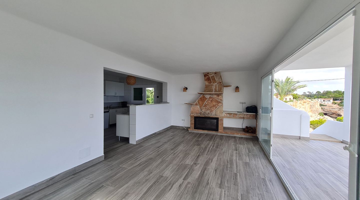 Das Grundstück von 907 m² erstreckt sich bis zu den Klippen und genießt einen herrlichen Blick auf das Meer und den berühmten Felsen Es Pontàs.