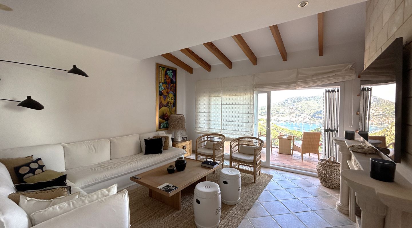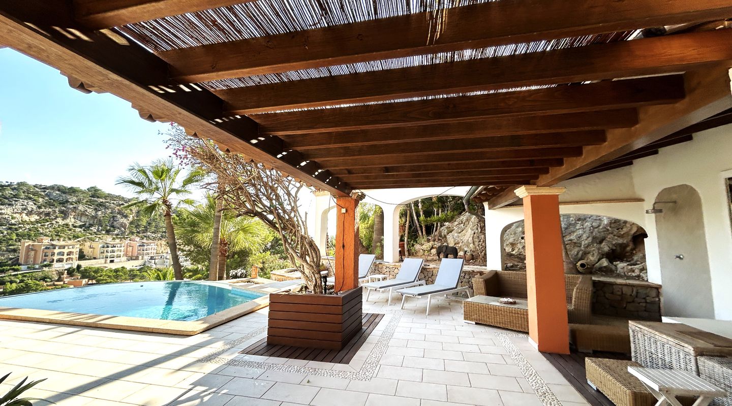 Diese prachtvolle Villa bietet einen wunderbaren Aufenthalt mit beeindruckendem Blick auf das Mittelmeer. Sie befindet sich in einer sehr ruhigen Gegend der Insel, innerhalb einer kleinen und exklusiven Gemeinschaft. Nur 5 Autominuten vom Strand und dem Hafen von Andratx entfernt, der eine hervorragende internationale Gastronomie bietet, verwandelt diese Immobilie Ihren Aufenthalt in ein traumhaftes Erlebnis.