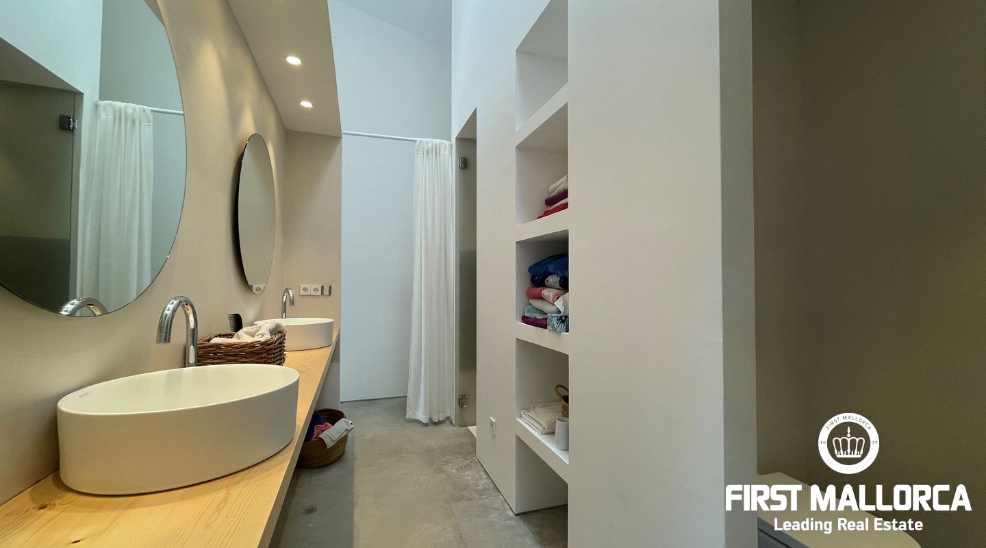 Atemberaubende neue Villa in dem malerischen Dorf Llubi gelegen. Die Immobilie bietet ein außergewöhnliches Wohnerlebnis mit einer perfekten Mischung aus modernen Annehmlichkeiten und charmanten rustikalen Elementen.
