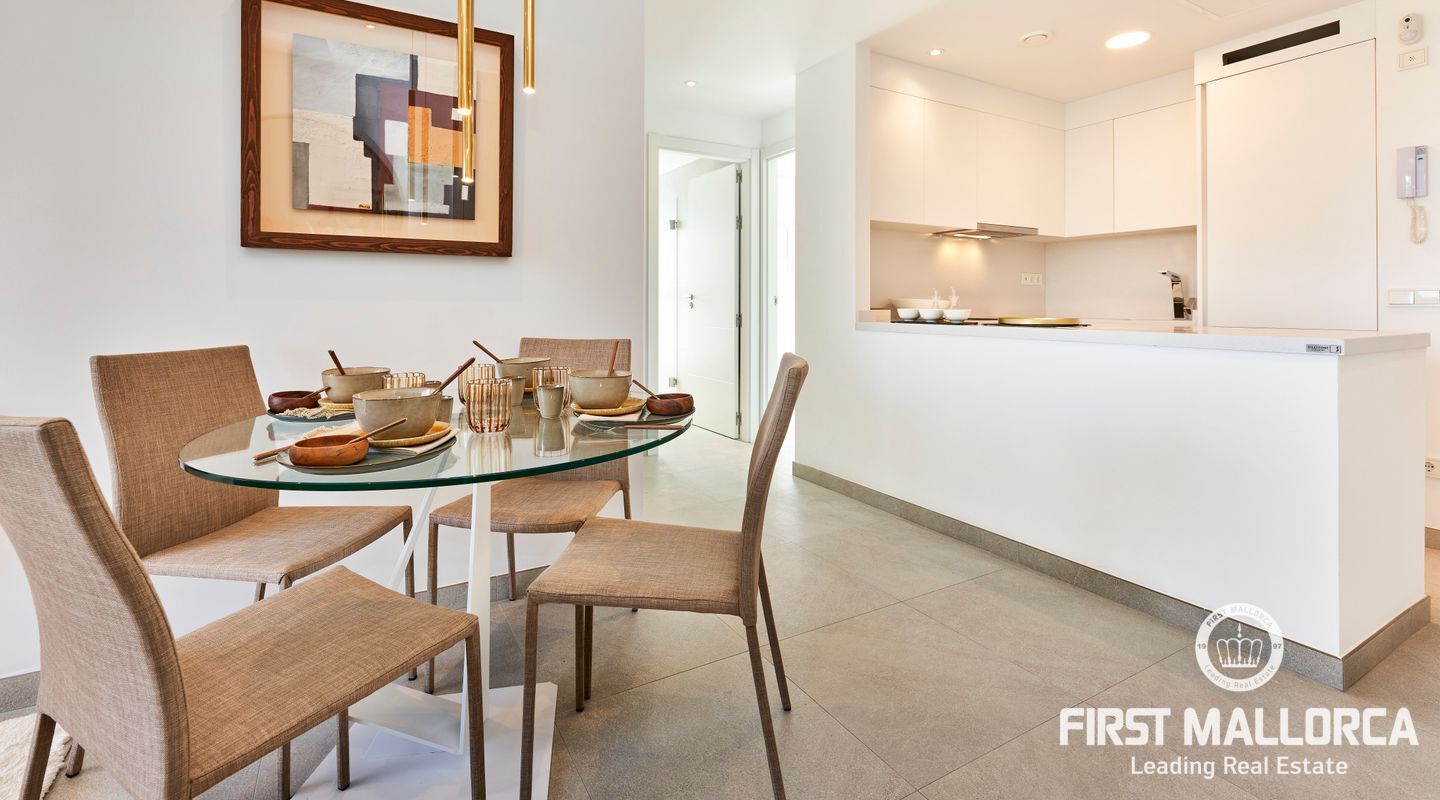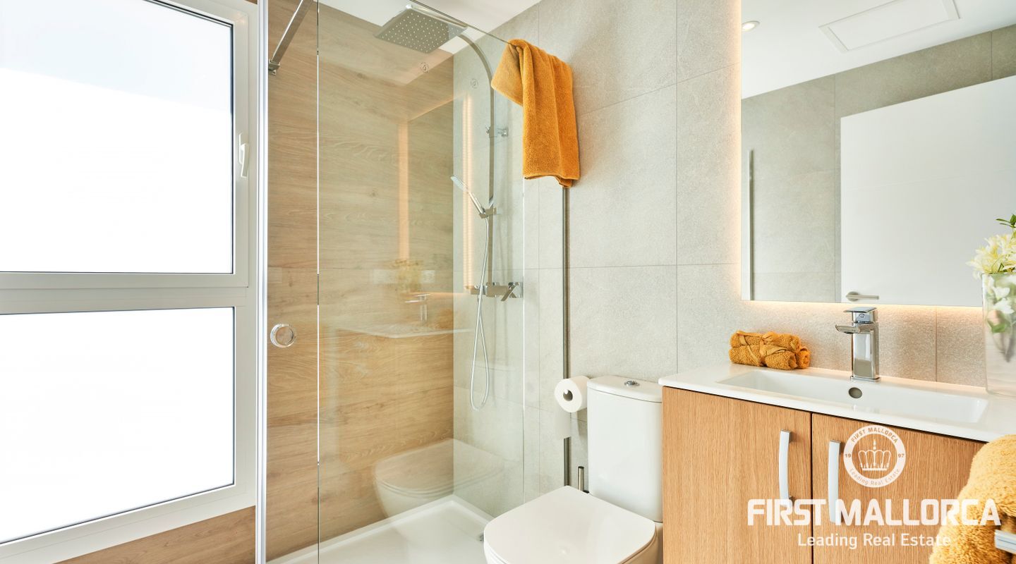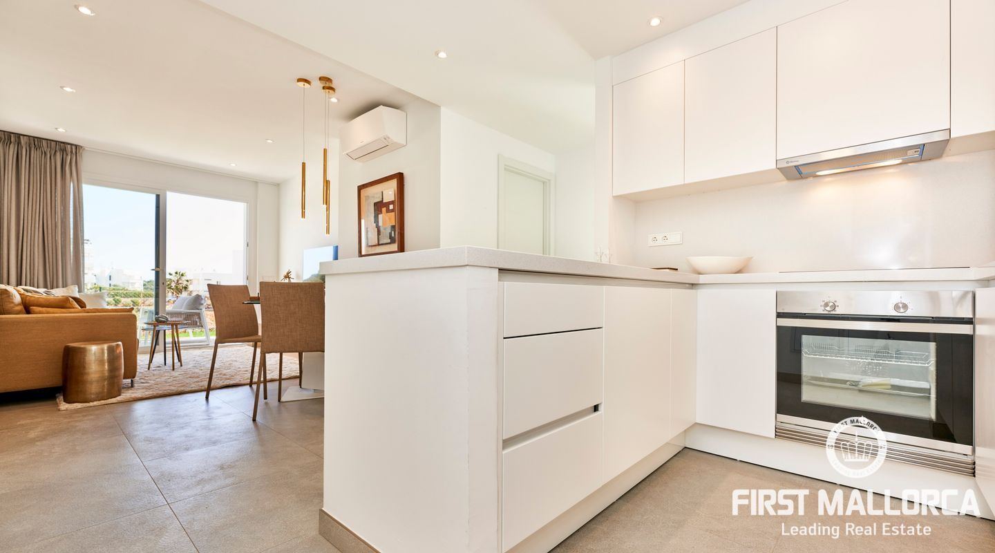 Diese modernen im ibizenkischen Weiß gehaltenen Apartments haben eine sehr hochwertige Ausstattung. Die Aufteilung in den Apartments begeistern mit viel Platz in 2 Schlafzimmer mit Bad (1 Bad en Suite) Wohn- Esszimmer und große Terrassen oder bei den Erdgeschosswohnungen Veranden mit Gartenanteil. Großzügige Gartenanlagen umgeben das Areal und 2 große Gemeinschafts Pools laden zum genießen des mediterranen Lebens ein. Ein Parkplatz gehört ebenfalls zu jeder Wohnung.