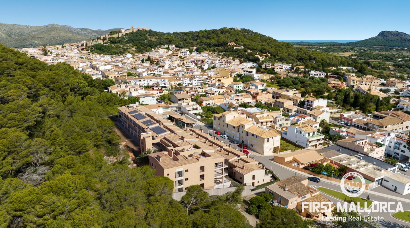 Modern und doch mallorquin gehalten werden am Stadtrand 23 Neubauwohnungen und neun Stadthäuser entstehen. Die Anlage wird über einen Gemeinschaftspool und einen Garten verfügen und bietet genug Parkplätze für alle.