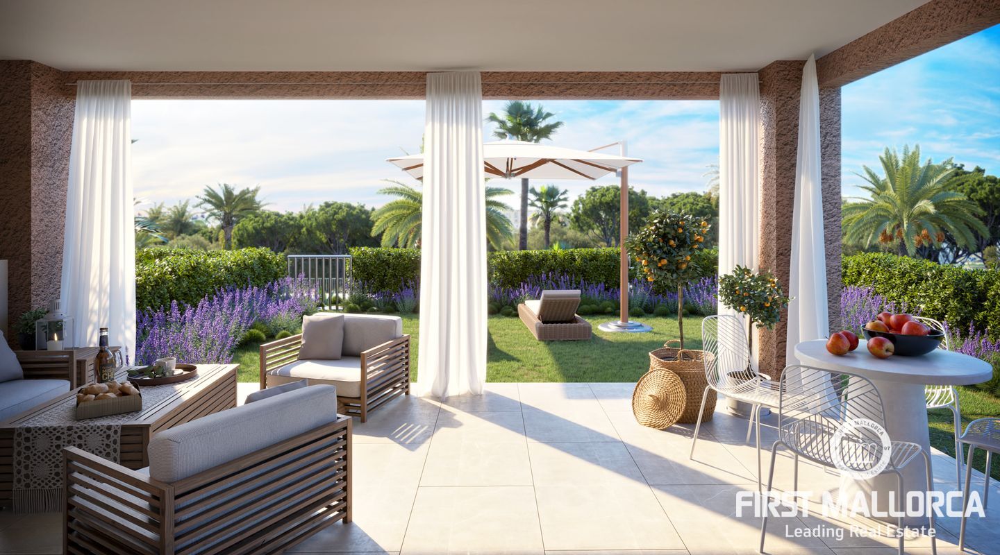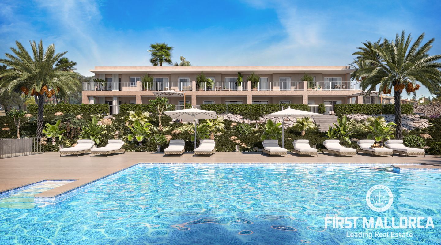 Die Apartments im Erdgeschoss verfügen über großzügige Terrassen und einen eigenen Gartenabschnitt. Die Wohnanlage hat eine schöne Gartenanlage und einen Gemeinschaftspool.