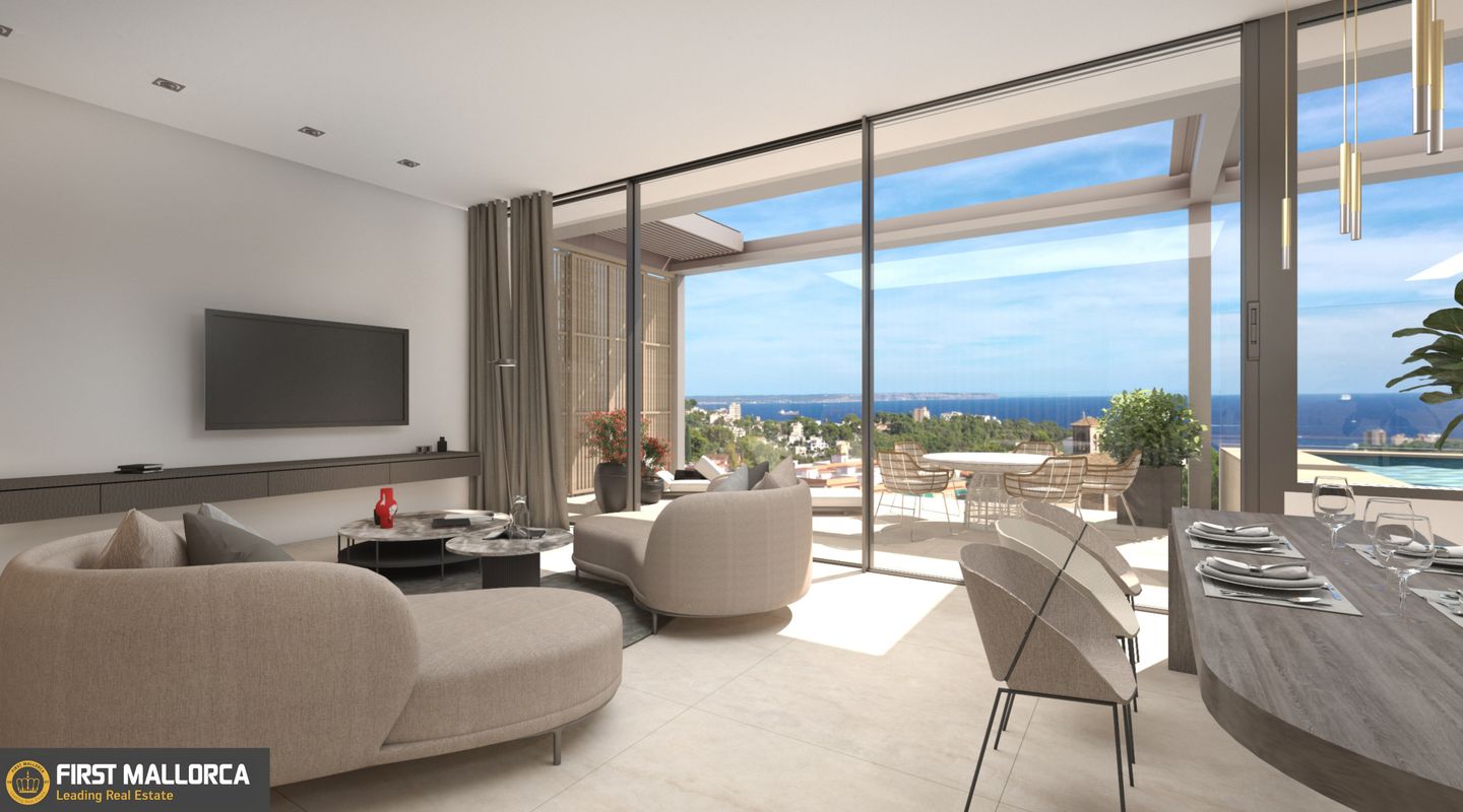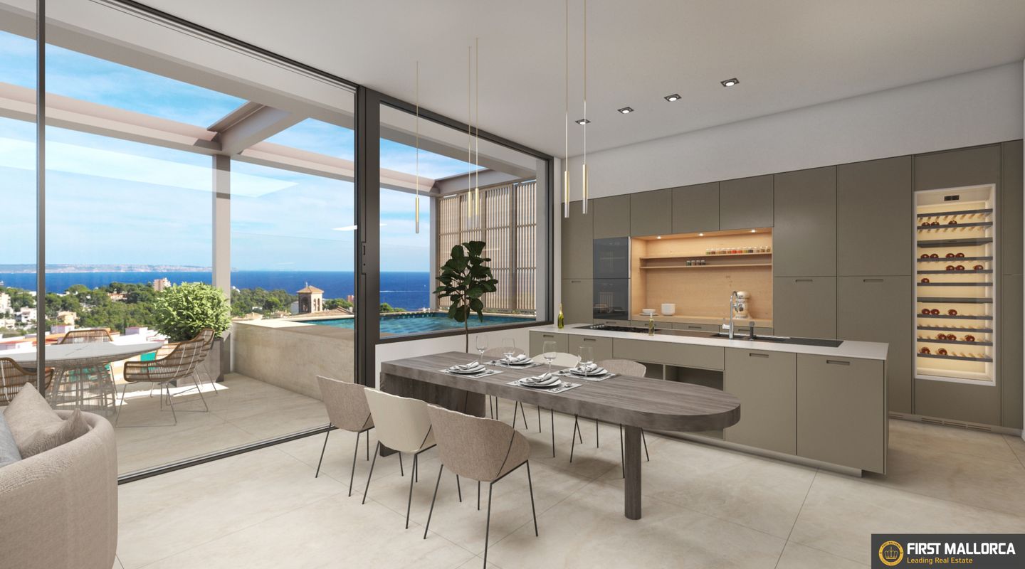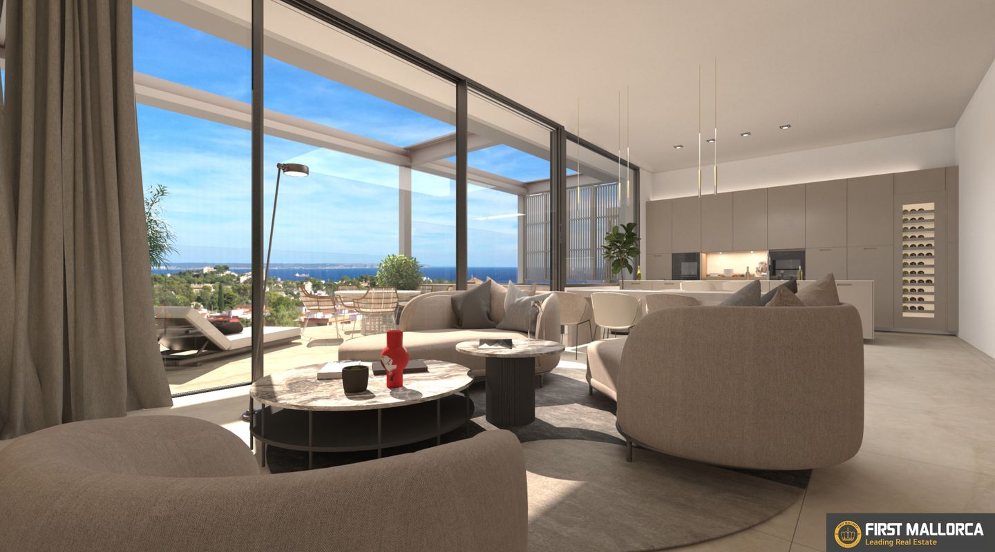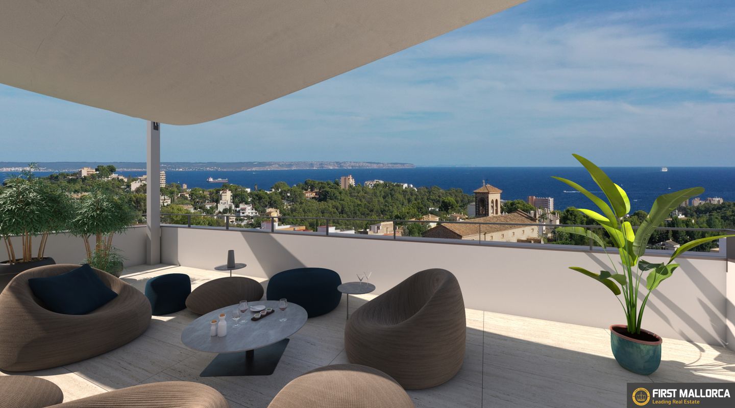 Die Immobilie bietet atemberaubende Panoramablicke auf Palma, das Schloss Bellver und die Bucht von Palma von den Terrassen des Hauptschlafzimmers, des Wohnzimmers, der Küche und der privaten Dachterrasse. Südlich ausgerichtet, genießt sie den ganzen Tag über reichlich Tageslicht.