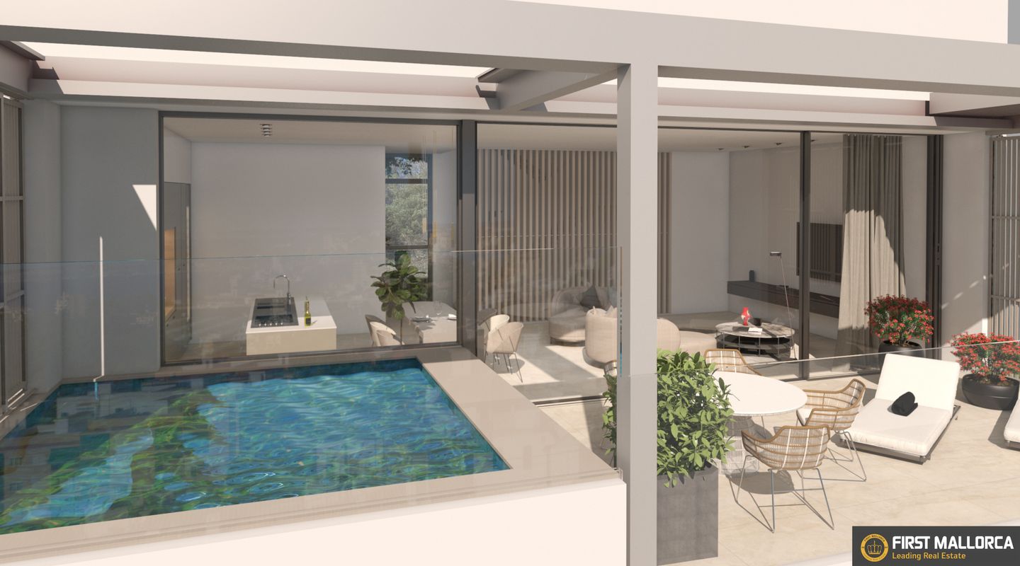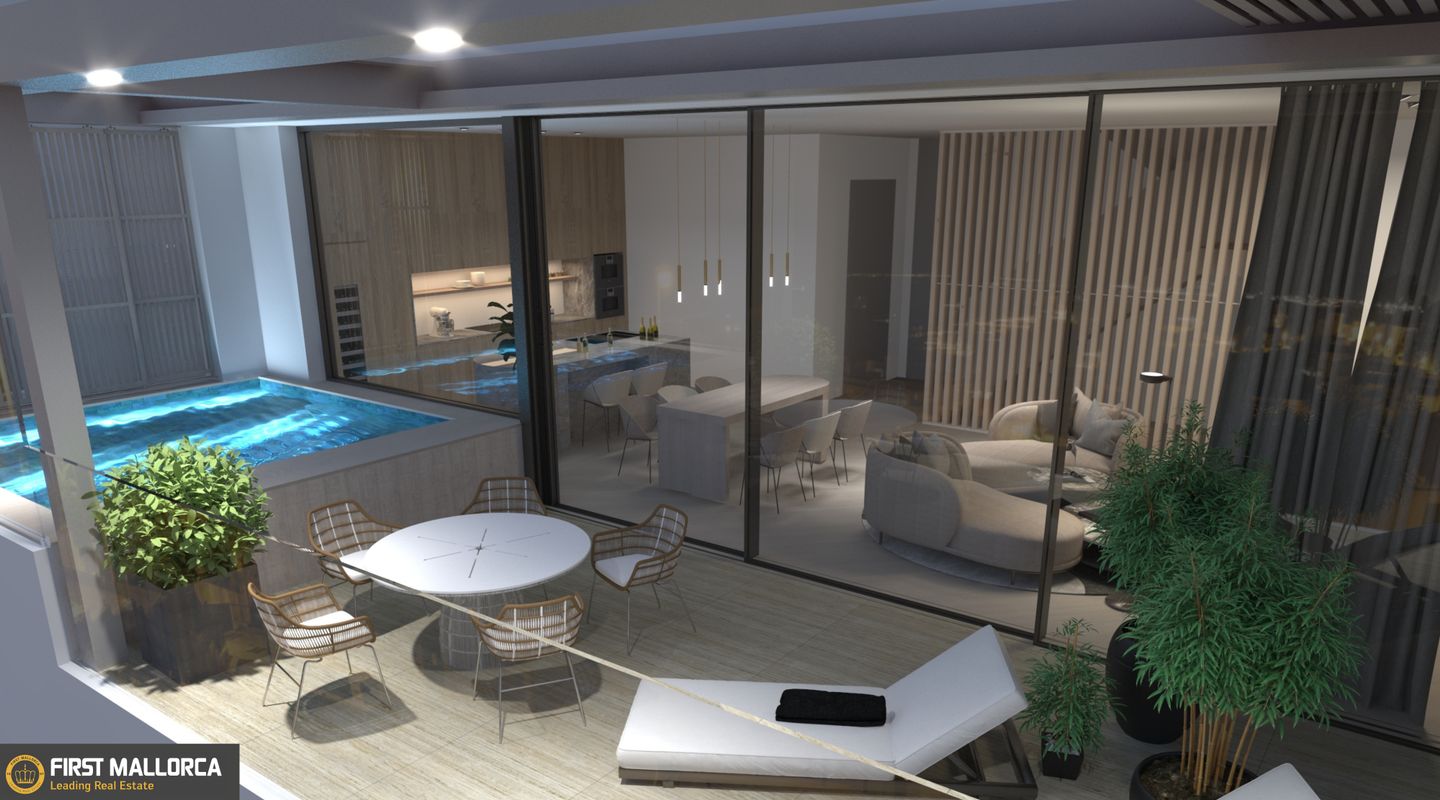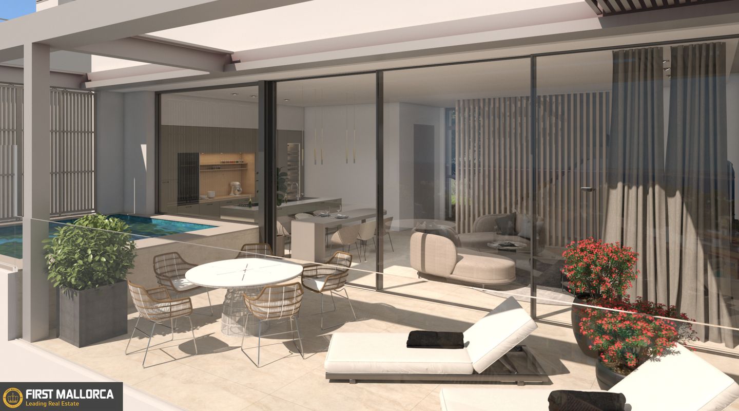 Die Dachterrasse ist das Highlight: großzügig, privat und mit spektakulären 360º-Blicken über die Bucht von Palma und die Dächer von Gènova — ideal, um warme Abende in guter Gesellschaft zu genießen.