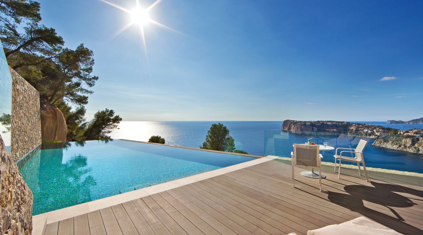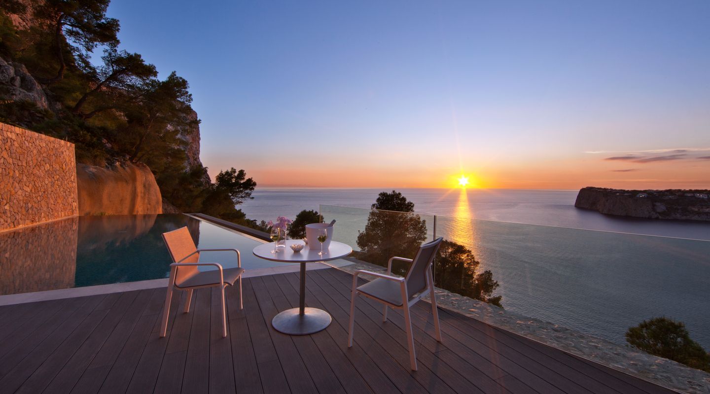 Das Anwesen befindet sich auf einem großzügigen Grundstück von 1823 m² und bietet ein unvergessliches mediterranes Wohnerlebnis. Auf einer bebauten Fläche von 573 m² finden Sie eine harmonische Mischung aus zeitgenössischem Design, eleganter Architektur und erstklassigen VIP-Sonnenuntergängen. Der lichtdurchflutete Wohn- und Essbereich schafft eine einladende Atmosphäre und bietet den perfekten Raum für Entspannung und Unterhaltung. Ein optischer „grüner Garten” im Innenhof verstärkt die Verbindung zwischen den Wohnbereichen im Innen- und Außenbereich und ermöglicht es den Bewohnern, das milde Klima der Insel zu genießen. Es besteht die Möglichkeit, ein zusätzliches Gästehaus mit 2 weiteren Schlafzimmern zu errichten. Eine unschlagbare Lage in unmittelbarer Nähe zum Gran Folies Beach Club und nur 5 Autominuten vom luxuriösen Puerto de Andratx entfernt.