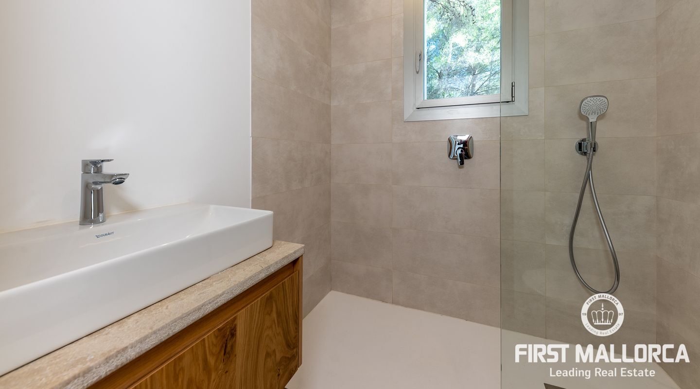 Diese tolle Neubauvilla zeichnet sich durch einzigartiges Design und Funktionalität sowie durch die ausgezeichente Lage. Die bebaute Fläche verteilt sich wie folgt auf: Obergeschoss von 102m2 mit Küche, Gästetoilette, Wohn-Esszimmer mit Zugang zu einer Außenterrasse mit Veranda von ca. 32m2. Untere Etage von ca. 97m2 bietet 3 Schlafimmer, jedes mit Bad en suite. Im Untergeschoss von ca. 90m2 befindet sich Doppel-Garage, Hauswirtschaftsraum, Maschinenraum und Hauptzugang zum Gebäude, der zur offenen Treppe und zum Aufzug führt. Es gibt einen weiteren Parkplatz im Freien. Ausserdem eine ca. 100m2 grosse Dachterrasse ist auch vorhanden! Im oberen Bereich des Grundstücks, zwischen dem Obergeschosses und der Dachterrasse, befindet sich der Pool. Der Rest des Grundstücks ist einem mediterranen Garten gewidmet, der in Natursteinterrassen angelegt ist. Die Ausstattung ist hochwertig und beinhaltet Fußbodenheizung und Klimaanlage w/k im ganzen Haus, Aufzug, Alufenster mit Doppelverglasung usw.. Besonders zu erwähnen sind große Fenster mit Blick nach Osten auf Sa Figuera und nach Süden und Westen auf die Berge und Puerto de Sóller.