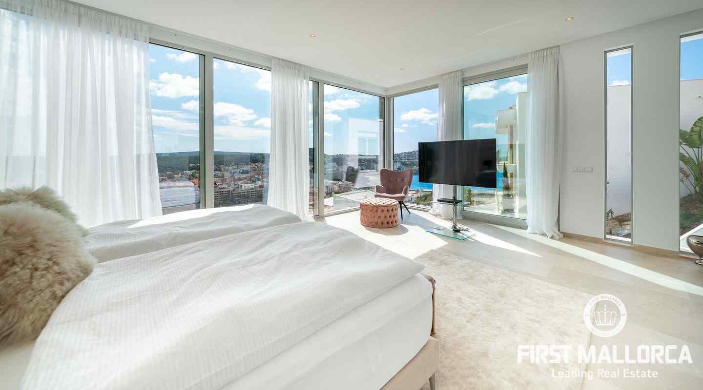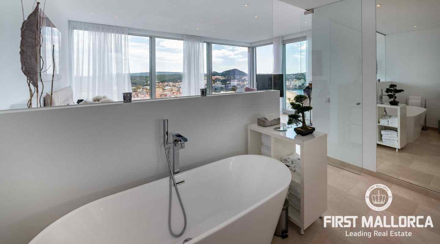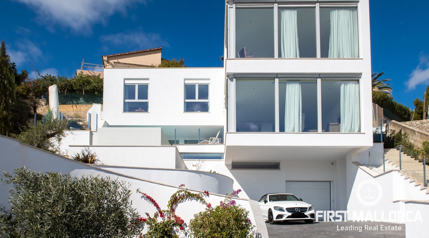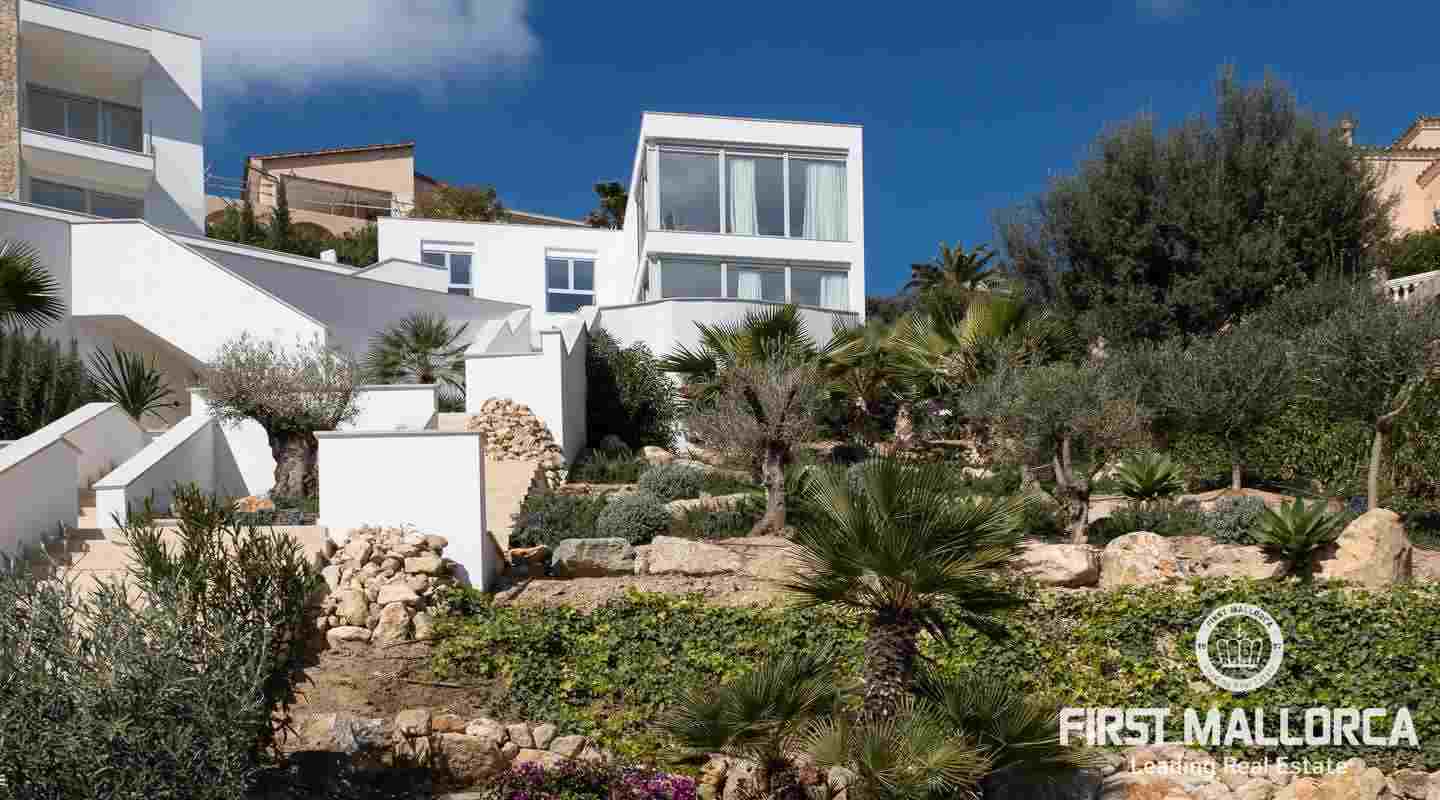 Diese einzigartige Luxus-Villa mit Meerblick ist Teil einer kleinen Gemeinschaft von 3 Villen. Die besondere Kombination aus atemberaubendem Meer- und Dorfblick und erstklassiger Bauqualität setzt neue Maßstäbe in der ruhigen Wohngegend von Santa Ponsa. Die Immobilie ist über eine Gemeinschaftsauffahrt erreichbar, die von wunderschön angelegten Gärten umgeben ist.