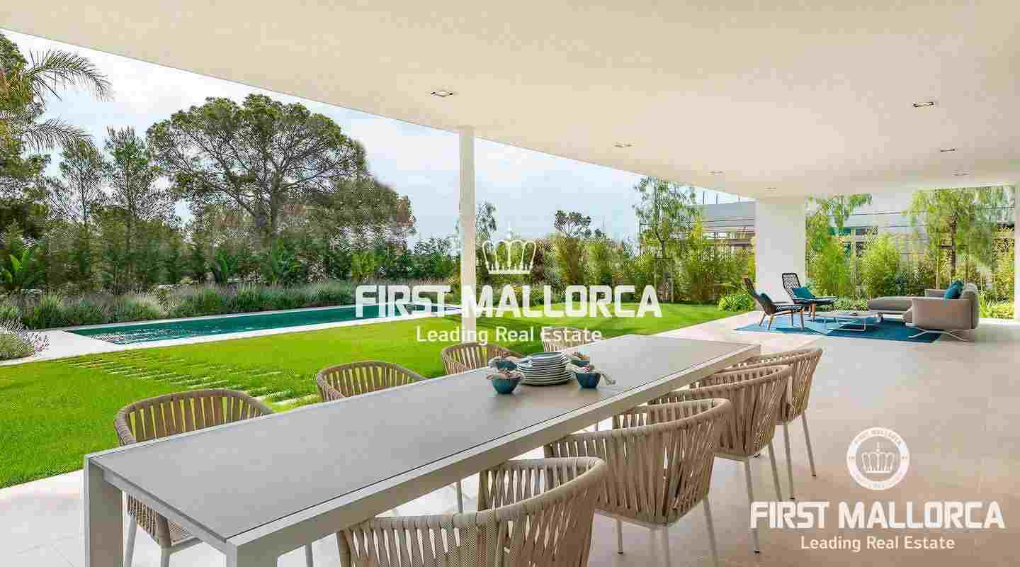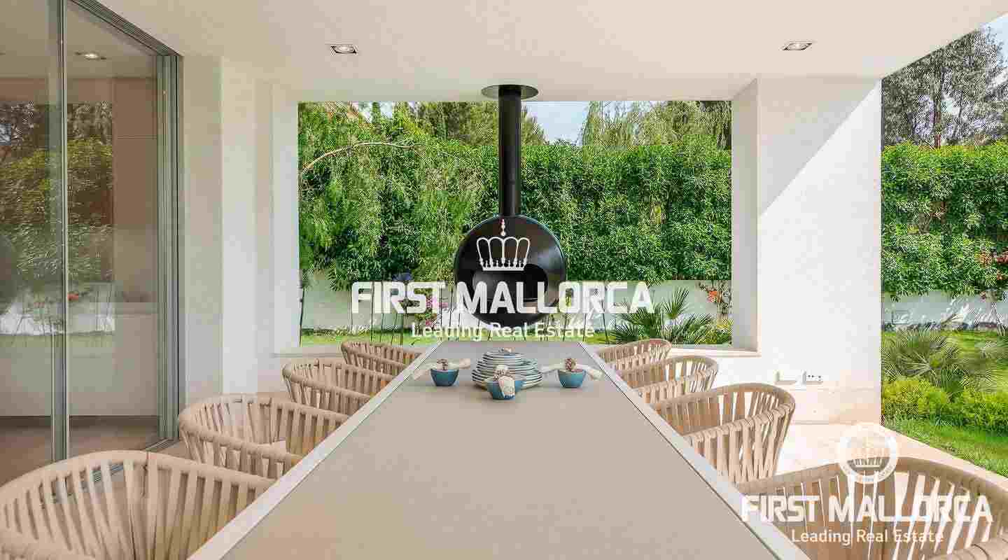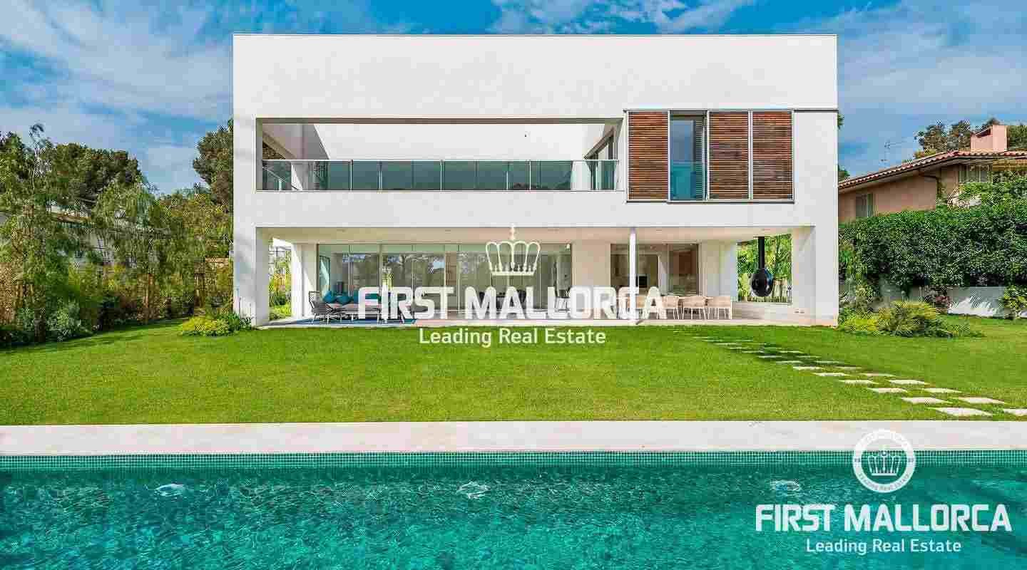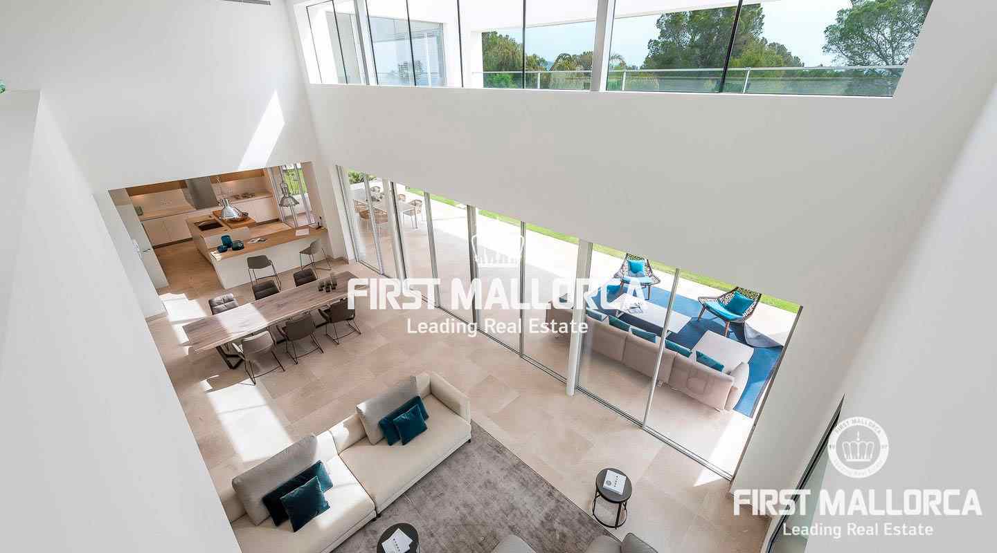 Diese erstklassige Familienvilla bietet auf 2 Etagen die perfekte Kombination aus moderner Architektur, viel Licht und warmen Naturmaterialien. Insgesamt beherbergt sie 5 Schlafzimmer und 4 Bäder, 3 davon en-Suite. Eines der Schlafzimmer befindet sich im Erdgeschoss, die weiteren in der 1. Etage, unter anderem auch das Hauptschlafzimmer mit großer Terrasse. Die Empore mit Blick in den Wohnbereich bietet neben einem tollen Ambiente zudem auch Platz für einen Arbeitsbereich. Das Highlight ist der Wohn-/Essbereich mit doppelter Raumhöhe (6,05m) und die moderne, offene Küche mit Kochinsel und Gaggenau-Geräten ist perfekt integriert. Die große Fensterfront zum Garten, mit viel Rasenfläche und Swimmingpool, lässt sich komplett öffnen, sodass Wohnzimmer und überdachte Terrassen einen großen Wohlfühlbereich bilden, der die meiste Zeit des Jahres zum Entspannen einlädt. Sonnenanbeter nehmen ihr Sonnenbad auf der Poolterrasse oder auf der großen Panorama-Dachterrasse, die einen traumhaften Weitblick bietet und Platz für eine Sommerküche sowie einen Jacuzzi bereithält.