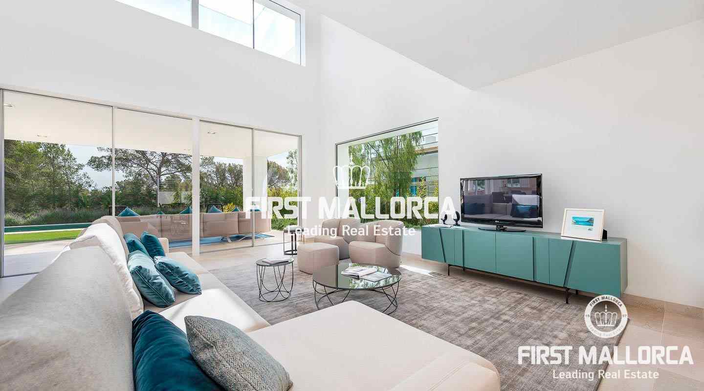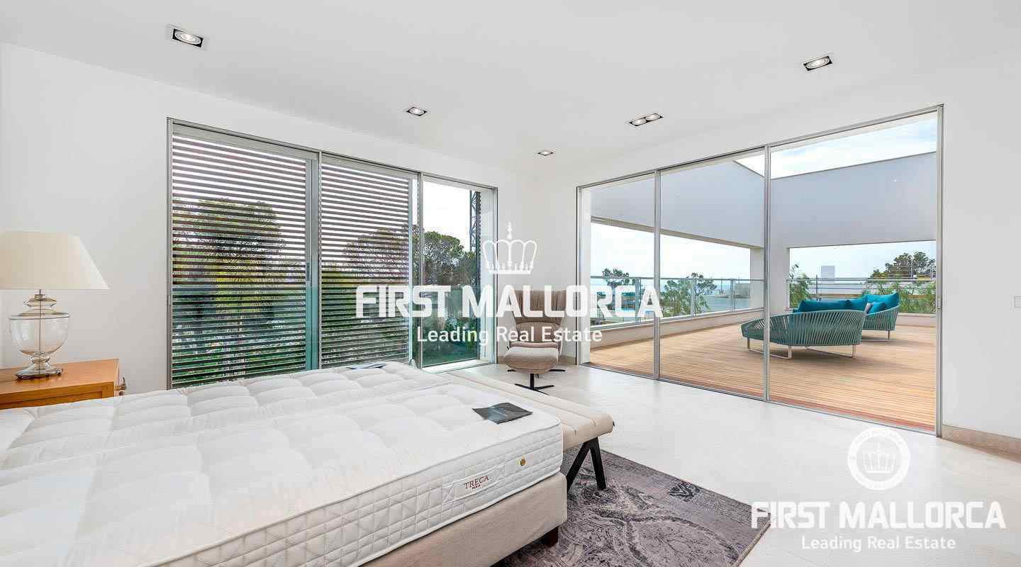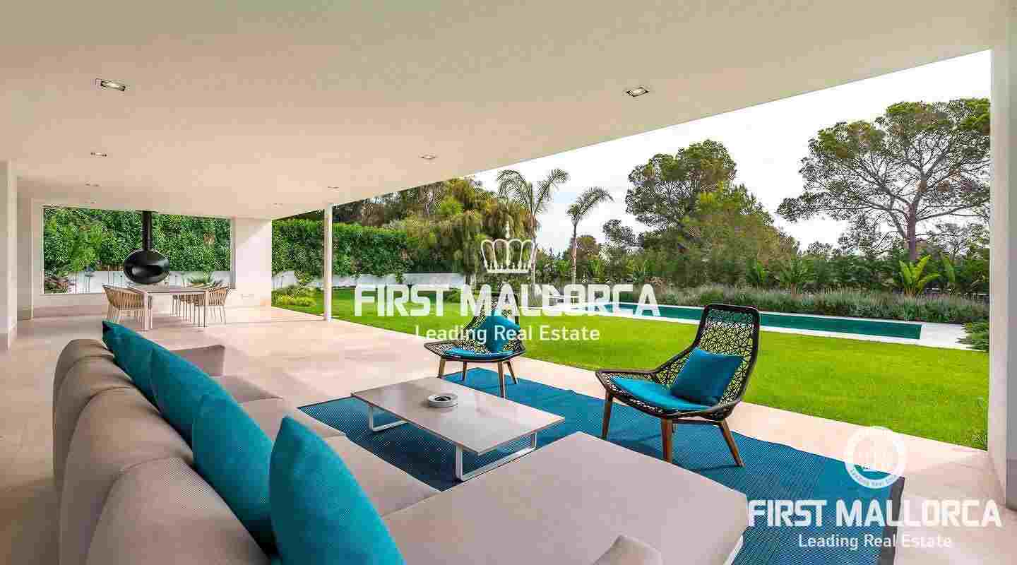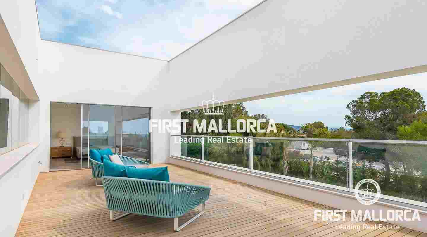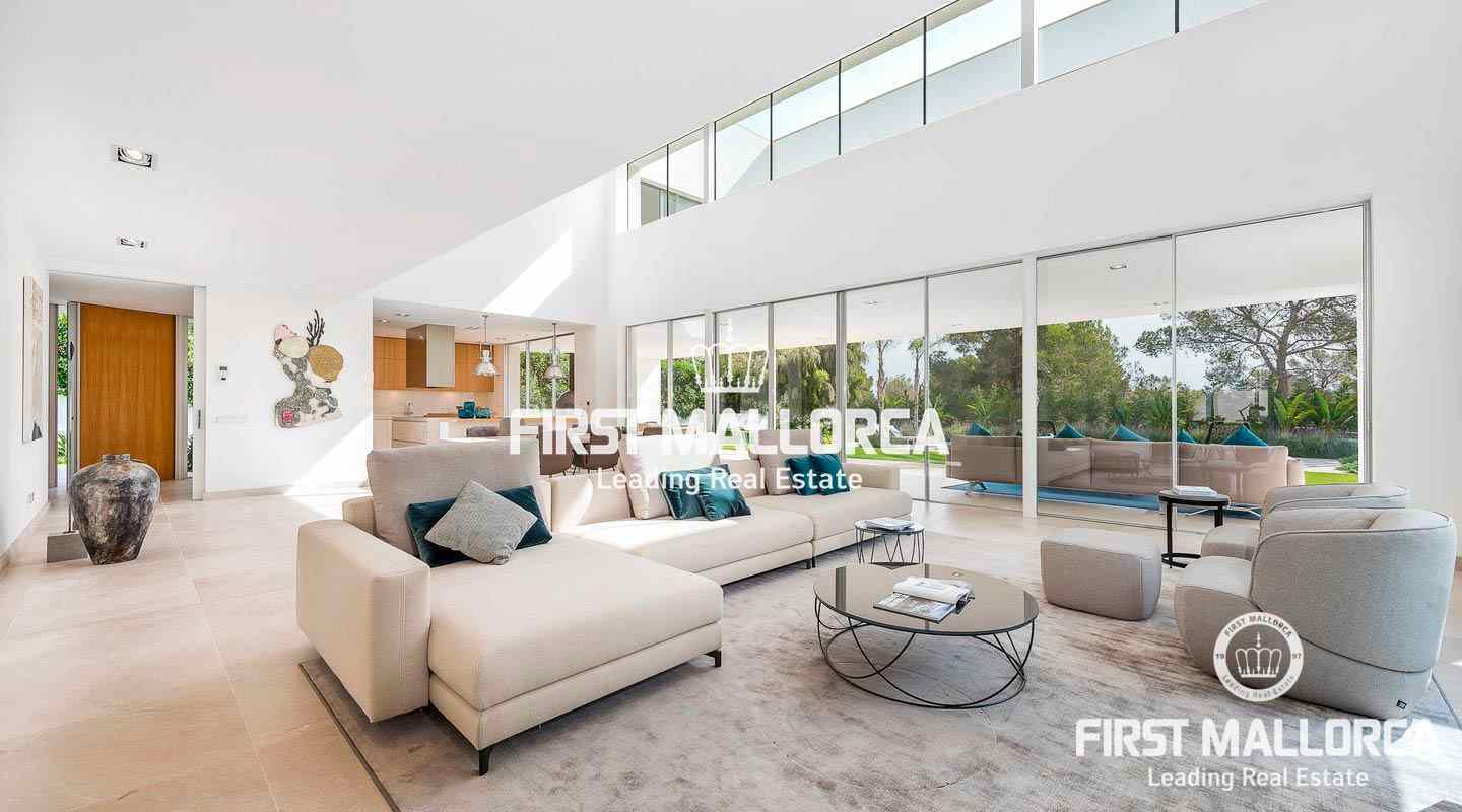 Diese erstklassige Familienvilla bietet auf 2 Etagen die perfekte Kombination aus moderner Architektur, viel Licht und warmen Naturmaterialien. Insgesamt beherbergt sie 5 Schlafzimmer und 4 Bäder, 3 davon en-Suite. Eines der Schlafzimmer befindet sich im Erdgeschoss, die weiteren in der 1. Etage, unter anderem auch das Hauptschlafzimmer mit großer Terrasse. Die Empore mit Blick in den Wohnbereich bietet neben einem tollen Ambiente zudem auch Platz für einen Arbeitsbereich. Das Highlight ist der Wohn-/Essbereich mit doppelter Raumhöhe (6,05m) und die moderne, offene Küche mit Kochinsel und Gaggenau-Geräten ist perfekt integriert. Die große Fensterfront zum Garten, mit viel Rasenfläche und Swimmingpool, lässt sich komplett öffnen, sodass Wohnzimmer und überdachte Terrassen einen großen Wohlfühlbereich bilden, der die meiste Zeit des Jahres zum Entspannen einlädt. Sonnenanbeter nehmen ihr Sonnenbad auf der Poolterrasse oder auf der großen Panorama-Dachterrasse, die einen traumhaften Weitblick bietet und Platz für eine Sommerküche sowie einen Jacuzzi bereithält.