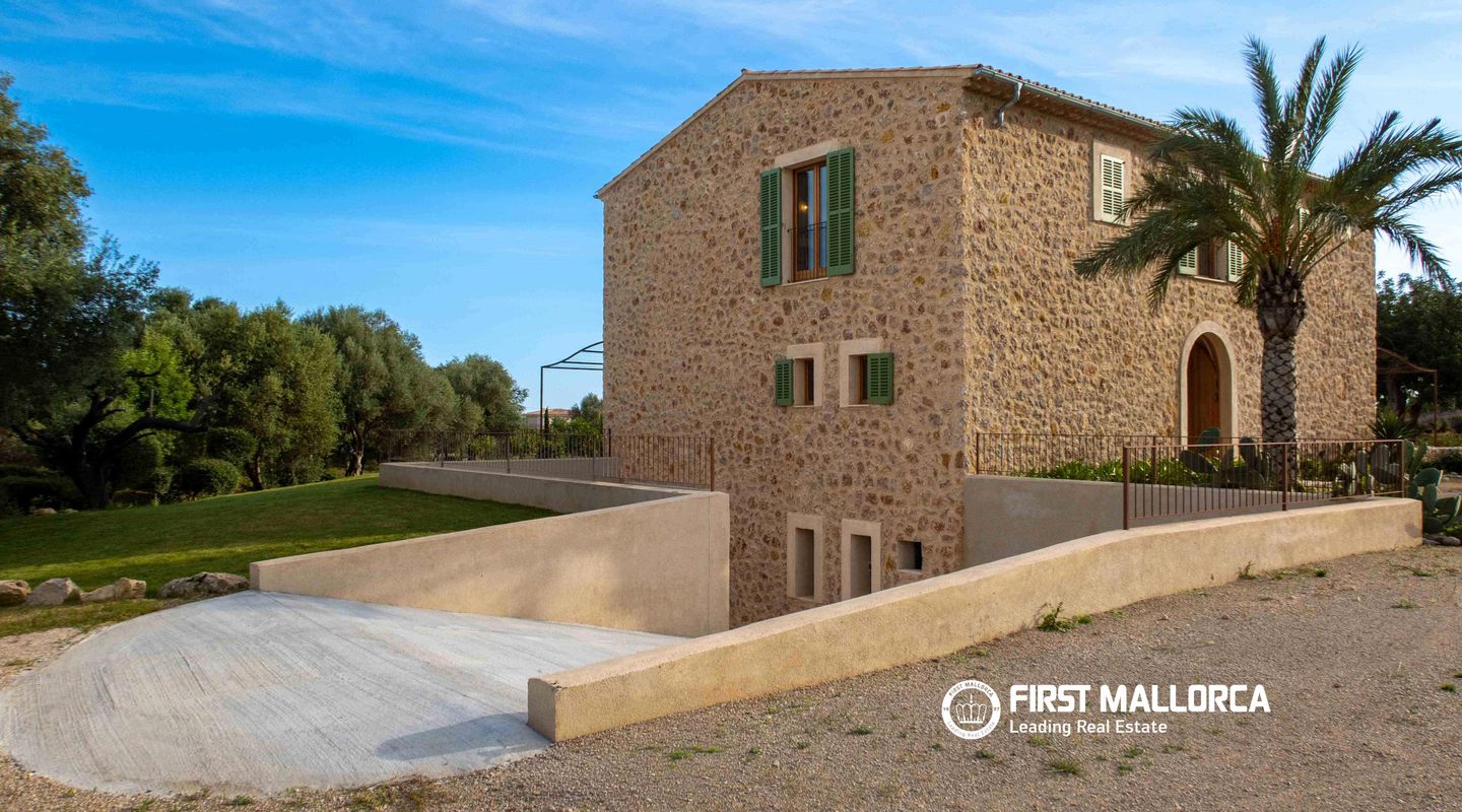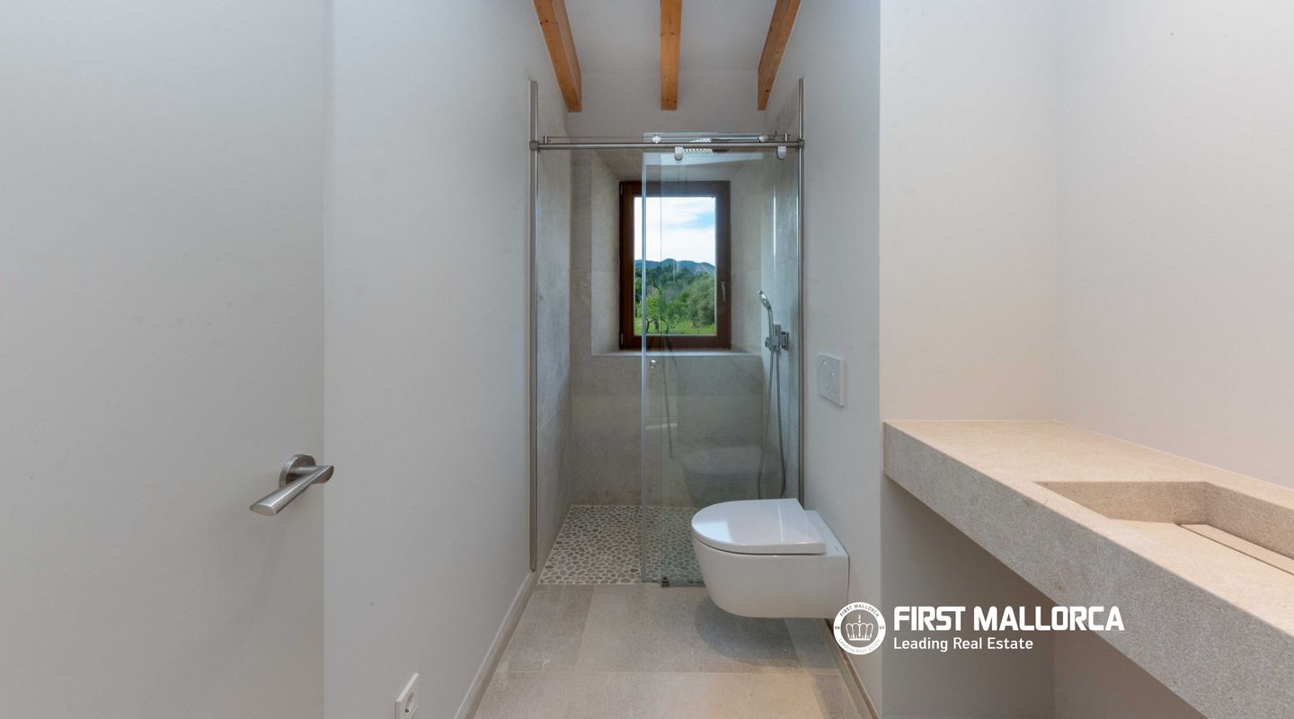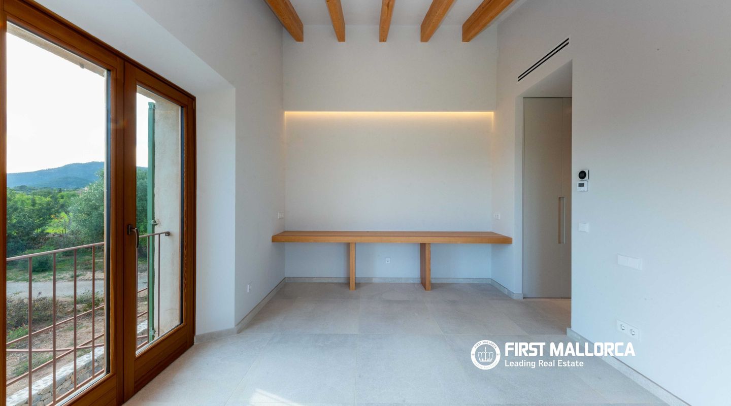 In dieser charmanten Finca, die nur 5 Minuten von Santa María und 10 Minuten von Alaró entfernt liegt, wurde eine wirklich außergewöhnliche Immobilie errichtet. Das Haus präsentiert sich mit einer eleganten Natursteinfassade, ganz im traditionellen mediterranen Stil. Im Erdgeschoss führt ein großzügiger Eingangsbereich in ein helles Wohn- und Esszimmer mit großen Fensterfronten, die den Raum mit natürlichem Licht durchfluten. Dieser Bereich geht nahtlos in eine geräumige, voll ausgestattete Küche im modernen Stil über. Auf derselben Ebene befinden sich außerdem ein zusätzlicher Wohnraum sowie ein Gäste-WC. Im Obergeschoss befinden sich vier Schlafzimmer, alle mit eigenem Bad en suite und großen Fenstern, die für viel Tageslicht in allen Räumen sorgen. Der Außenbereich ist als mediterraner Garten mit einheimischen Pflanzen wie Oliven-, Mandel- und Johannisbrotbäumen gestaltet. Zudem gibt es eine gemütliche Veranda mit Chill-out-Bereich neben einem großzügigen Pool sowie eine Terrasse zum Sonnenbaden. Abgerundet wird die Immobilie durch ein geräumiges Untergeschoss mit viel Stauraum sowie eine Garage mit Platz für mehrere Fahrzeuge. Weitere Ausstattungsmerkmale: beeindruckender Ausblick, Anschluss an das Stromnetz sowie Solaranlage mit Batterien und Generator, eigener Brunnen, Fußbodenheizung und zentrale Klimaanlage. Wichtiger Hinweis: Einige Bilder wurden virtuell möbliert, um das Potenzial der Immobilie im eingerichteten Zustand zu veranschaulichen.