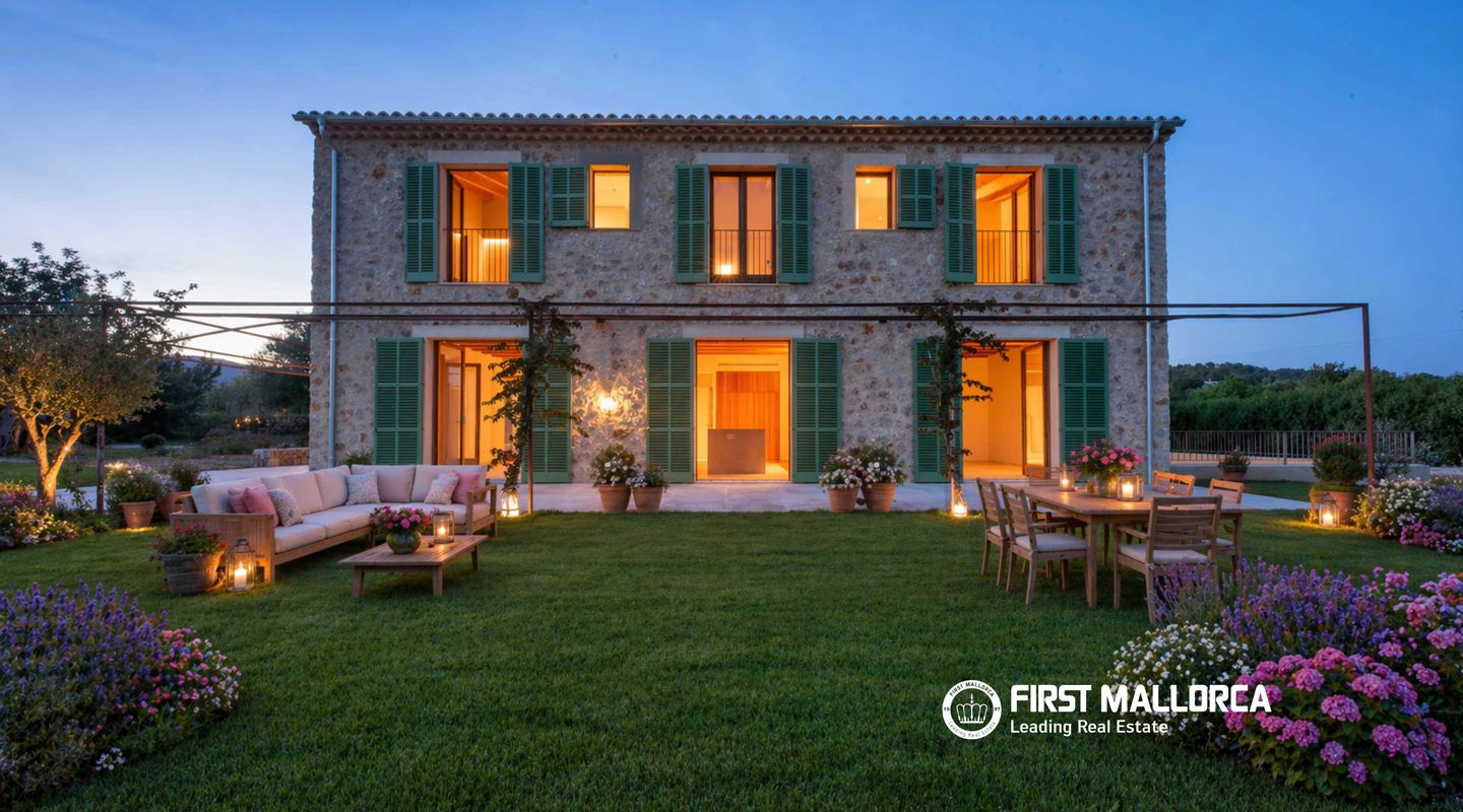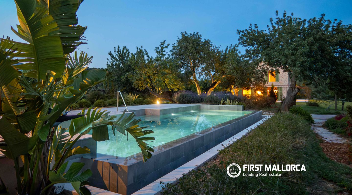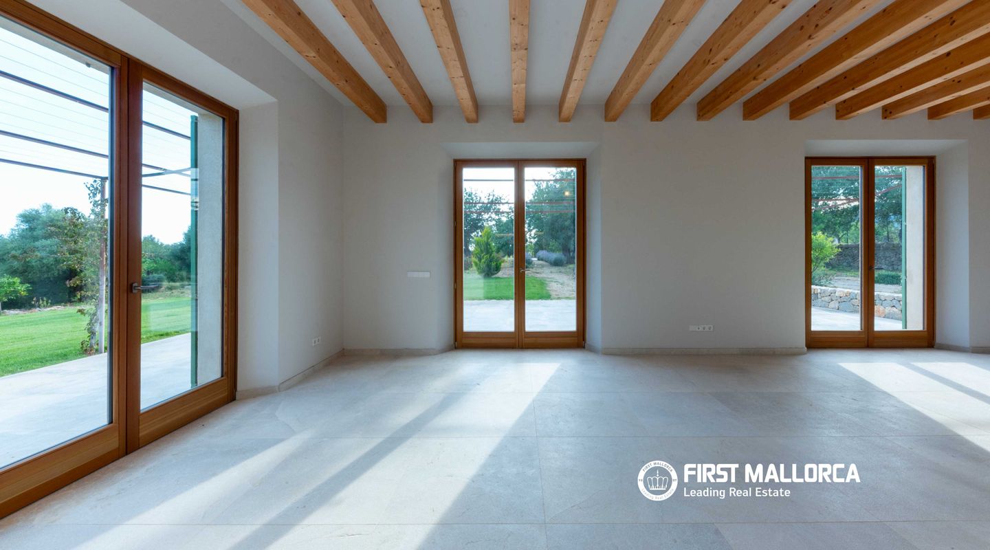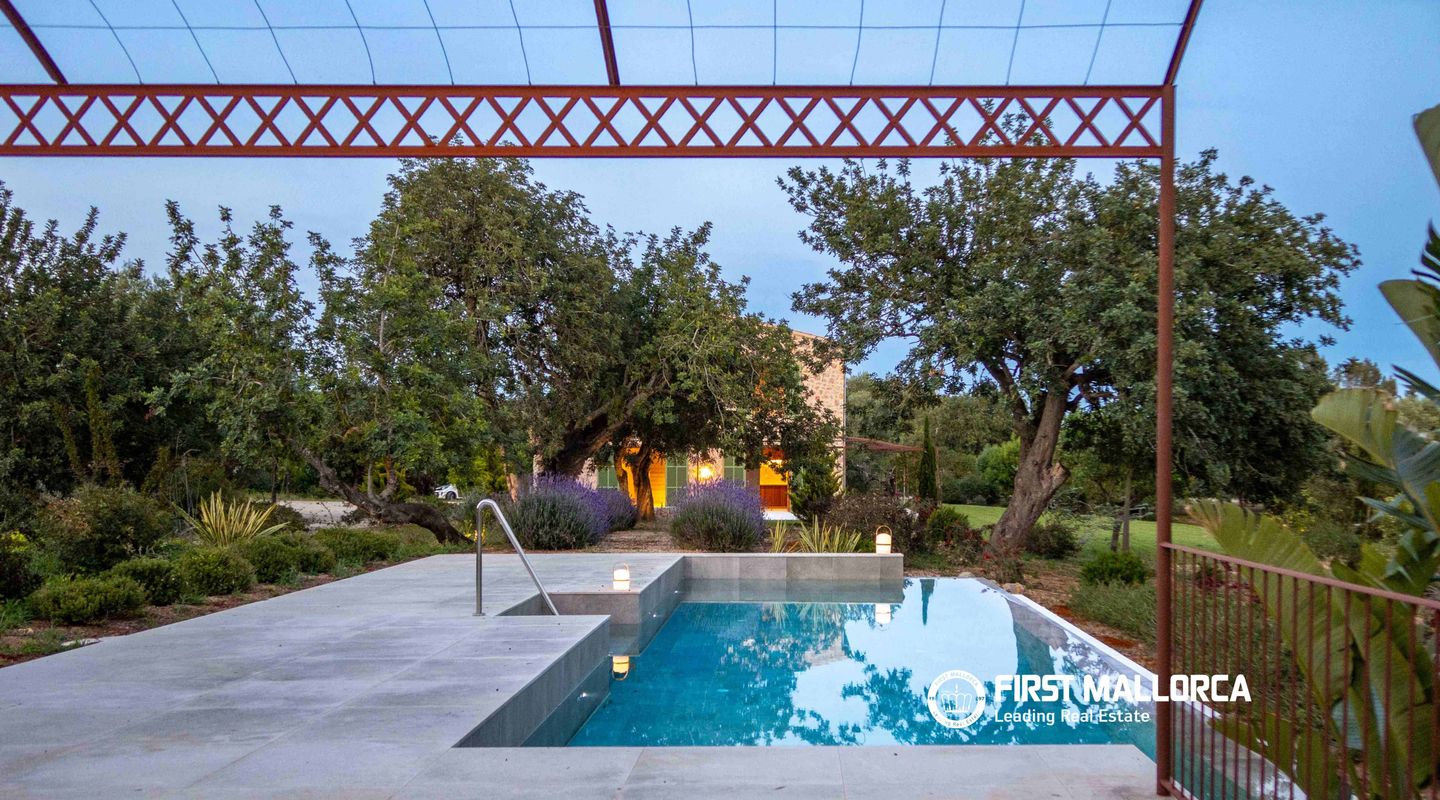 In dieser charmanten Finca, die nur 5 Minuten von Santa María und 10 Minuten von Alaró entfernt liegt, wurde eine wirklich außergewöhnliche Immobilie errichtet. Das Haus präsentiert sich mit einer eleganten Natursteinfassade, ganz im traditionellen mediterranen Stil. Im Erdgeschoss führt ein großzügiger Eingangsbereich in ein helles Wohn- und Esszimmer mit großen Fensterfronten, die den Raum mit natürlichem Licht durchfluten. Dieser Bereich geht nahtlos in eine geräumige, voll ausgestattete Küche im modernen Stil über. Auf derselben Ebene befinden sich außerdem ein zusätzlicher Wohnraum sowie ein Gäste-WC. Im Obergeschoss befinden sich vier Schlafzimmer, alle mit eigenem Bad en suite und großen Fenstern, die für viel Tageslicht in allen Räumen sorgen. Der Außenbereich ist als mediterraner Garten mit einheimischen Pflanzen wie Oliven-, Mandel- und Johannisbrotbäumen gestaltet. Zudem gibt es eine gemütliche Veranda mit Chill-out-Bereich neben einem großzügigen Pool sowie eine Terrasse zum Sonnenbaden. Abgerundet wird die Immobilie durch ein geräumiges Untergeschoss mit viel Stauraum sowie eine Garage mit Platz für mehrere Fahrzeuge. Weitere Ausstattungsmerkmale: beeindruckender Ausblick, Anschluss an das Stromnetz sowie Solaranlage mit Batterien und Generator, eigener Brunnen, Fußbodenheizung und zentrale Klimaanlage. Wichtiger Hinweis: Einige Bilder wurden virtuell möbliert, um das Potenzial der Immobilie im eingerichteten Zustand zu veranschaulichen.