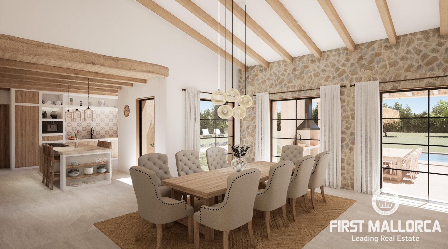 Diese hochwertige Finca mit 313 m² befindet sich auf einem fantastischen Grundstück von 19.200 m2, fünf Minuten vom Dorf Felanitx mit seinem Wochenmarkt und allen Arten von Dienstleistungen entfernt, 20 Minuten von den Stränden und Fischerhäfen wie Portocolom oder dem Hafen von Cala d’Or.