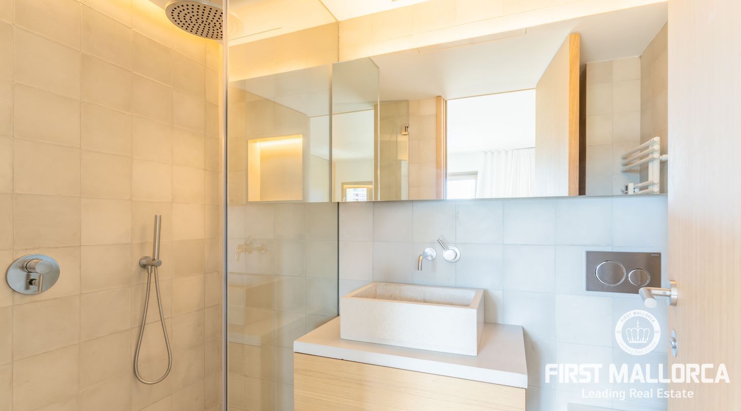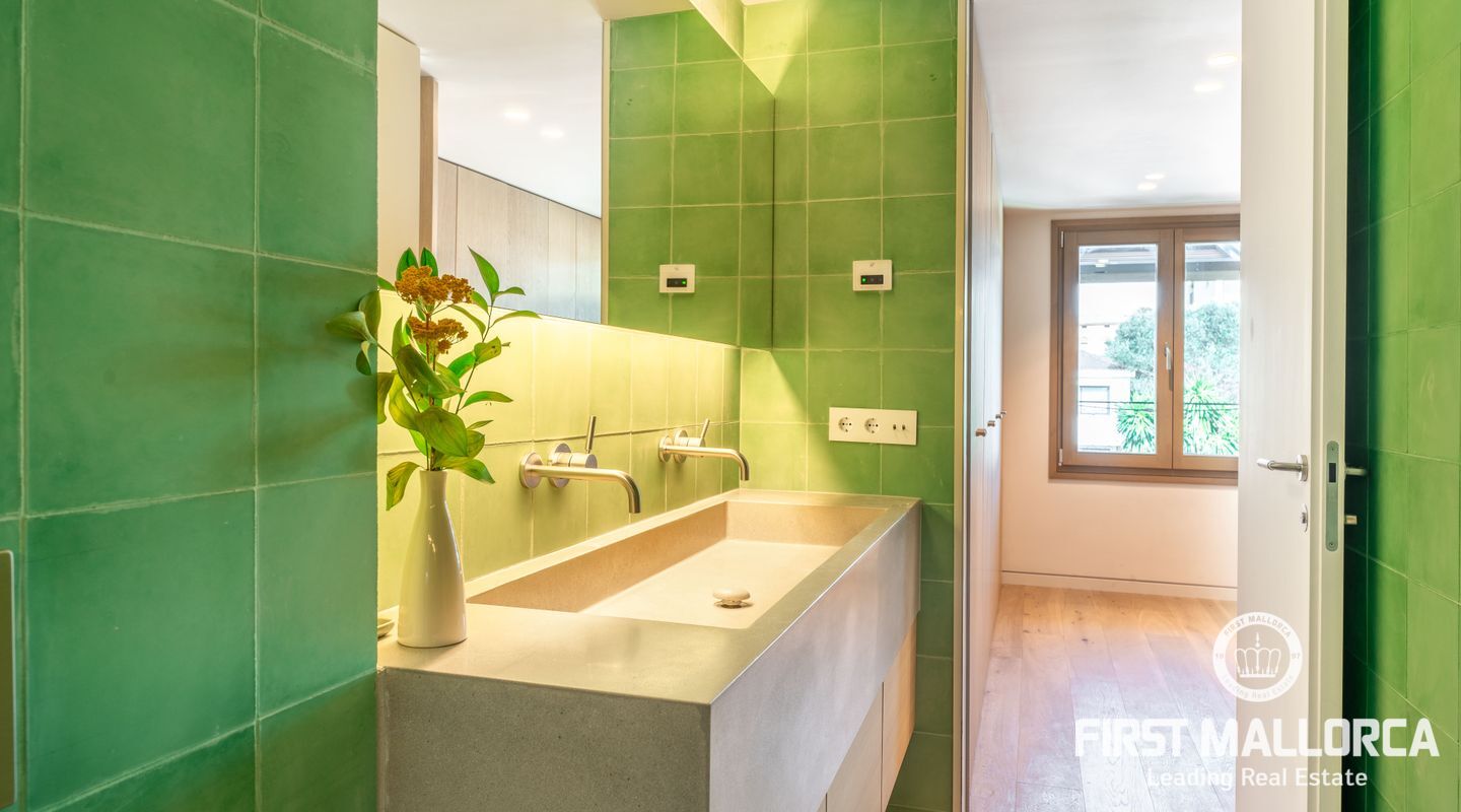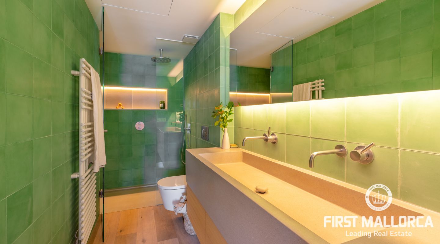 Ein harmonisches Farbkonzept und verschiedene hochwertige Materialien wie mallorquinischem Naturstein, Holz oder hydraulische Zementfliesen lassen eine besondere Atmosphäre entstehen und sorgen für ein angenehmes Klima.