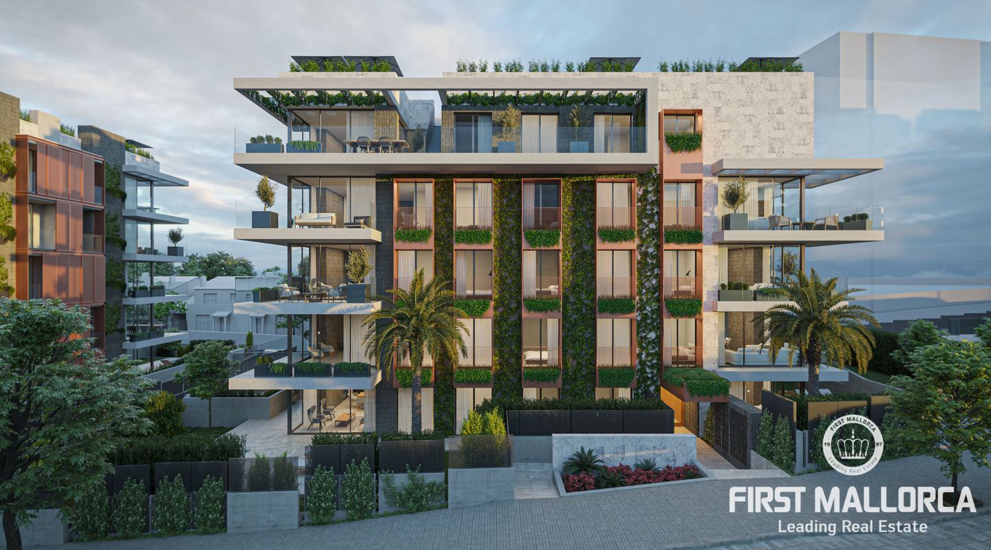 Diese neue Wohnanlage wird in der Nachbarschaft von Son Dameto gebaut. Nur wenige Gehminuten vom Stadtzentrum entfernt und sehr gut angebunden. Die Umgebung ist mit allen Dienstleistungen ausgestattet, und auch die Schulen sind nicht weit entfernt. Das Projekt wurde mit avantgardistischer Architektur entworfen, was sich auch in der teilweise begrünten Fassade widerspiegelt. Ein Gemeinschaftsschwimmbad, eine Sonnenterrasse und ein Fitnessraum im Freien laden zum Verweilen in der Anlage ein. Für die Gestaltung der Wohnungen wurde eine gelungene Kombination aus verschiedenen hochwertigen Naturmaterialien gewählt: Stein und Beton verleihen den Innenräumen einen edlen Charakter, während Glas für eine moderne Anmutung sorgt. Große, bodentiefe Fenster sorgen für viel natürliches Licht im offenen Wohn- und Essbereich und schaffen einen fließenden Übergang zwischen den großen Terrassen und den großzügigen Wohnbereichen mit integrierten Küchen (ausgestattet mit Bosch oder ähnlichen Geräten; Penthäuser Miele oder ähnlich). Klimaanlage und Fußbodenheizung (Wärmepumpe) sorgen das ganze Jahr über für ein angenehmes Klima. Außerdem sind ein Stellplatz und ein Abstellraum in der Tiefgarage im Preis enthalten (Penthäuser und Erdgeschosswohnungen 2 Stellplätze). Dies ist eine der wenigen Gelegenheiten, eine hochwertige Immobilie in der Stadt Palma de Mallorca zu erwerben. Zögern Sie nicht, das Team von First Mallorca zu kontaktieren, um einen Besichtigungstermin zu vereinbaren!