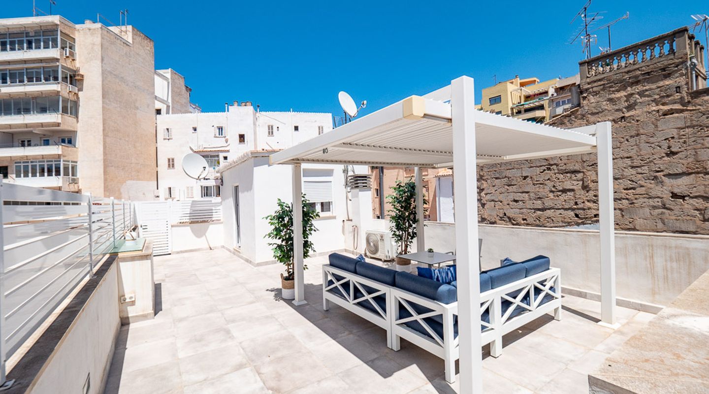Dieses wunderschöne neue Penthouse bietet eine seltene Mischung aus Luxus, Komfort und Lage. Mitten im Herzen von Palma gelegen, bietet es eine ruhige Oase fernab vom Trubel der Stadt, während gleichzeitig alles in Reichweite ist.