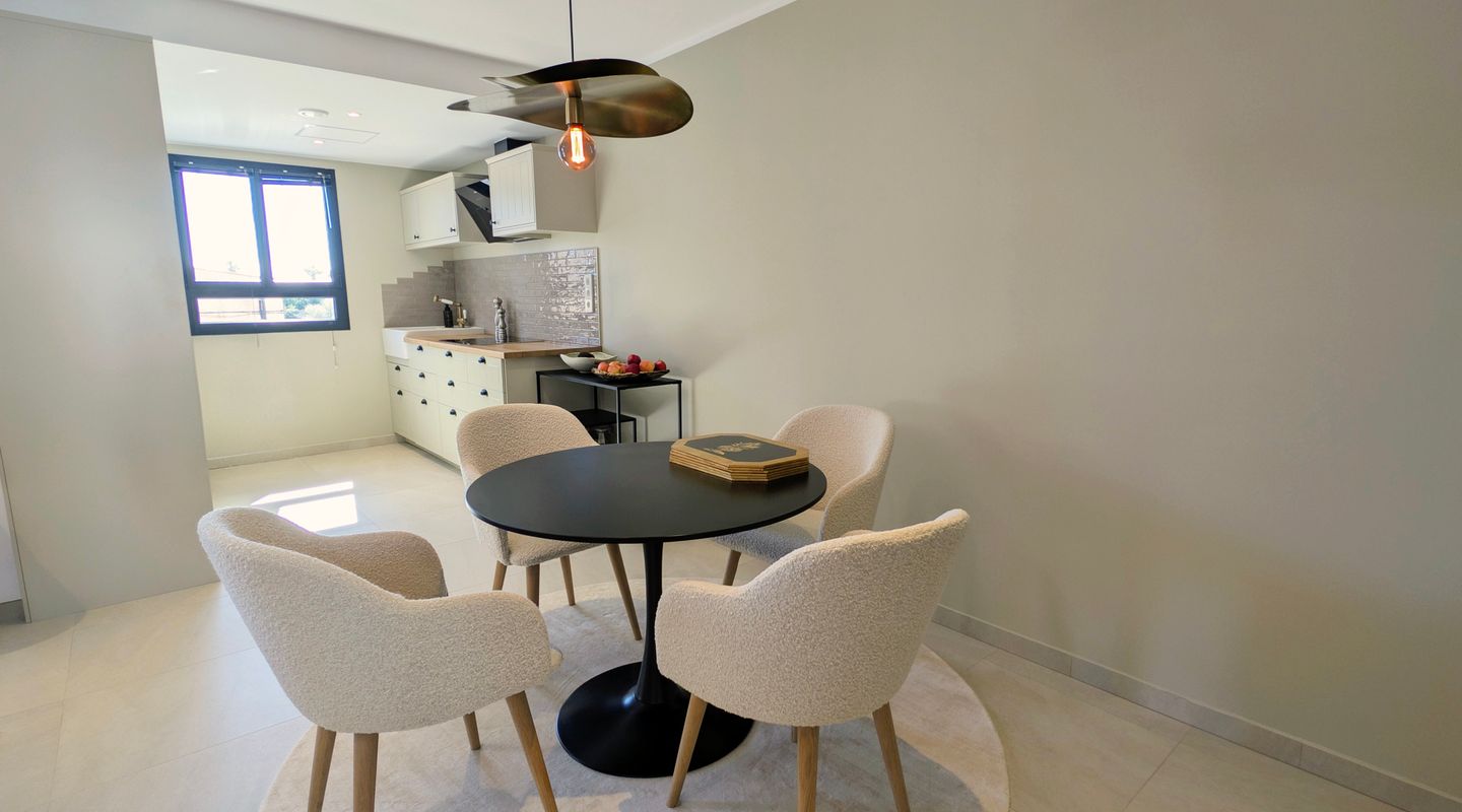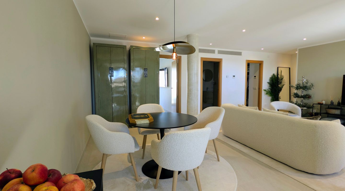 Dieses hochwertige Apartment wurde erst vor kurzem fertiggestellt und befindet sich in einer sehr gepflegten, kleinen Wohnanlage mit Gemeinschaftspool am Ortsrand von Ses Salines. Die Anlage liegt ruhig und dennoch nur wenige Gehminuten von Bars, Restaurants und dem lebendigen Marktplatz entfernt.