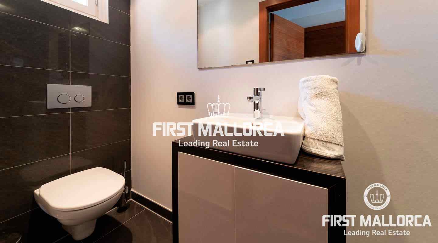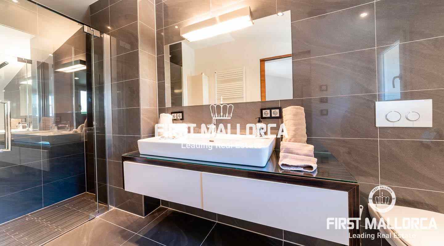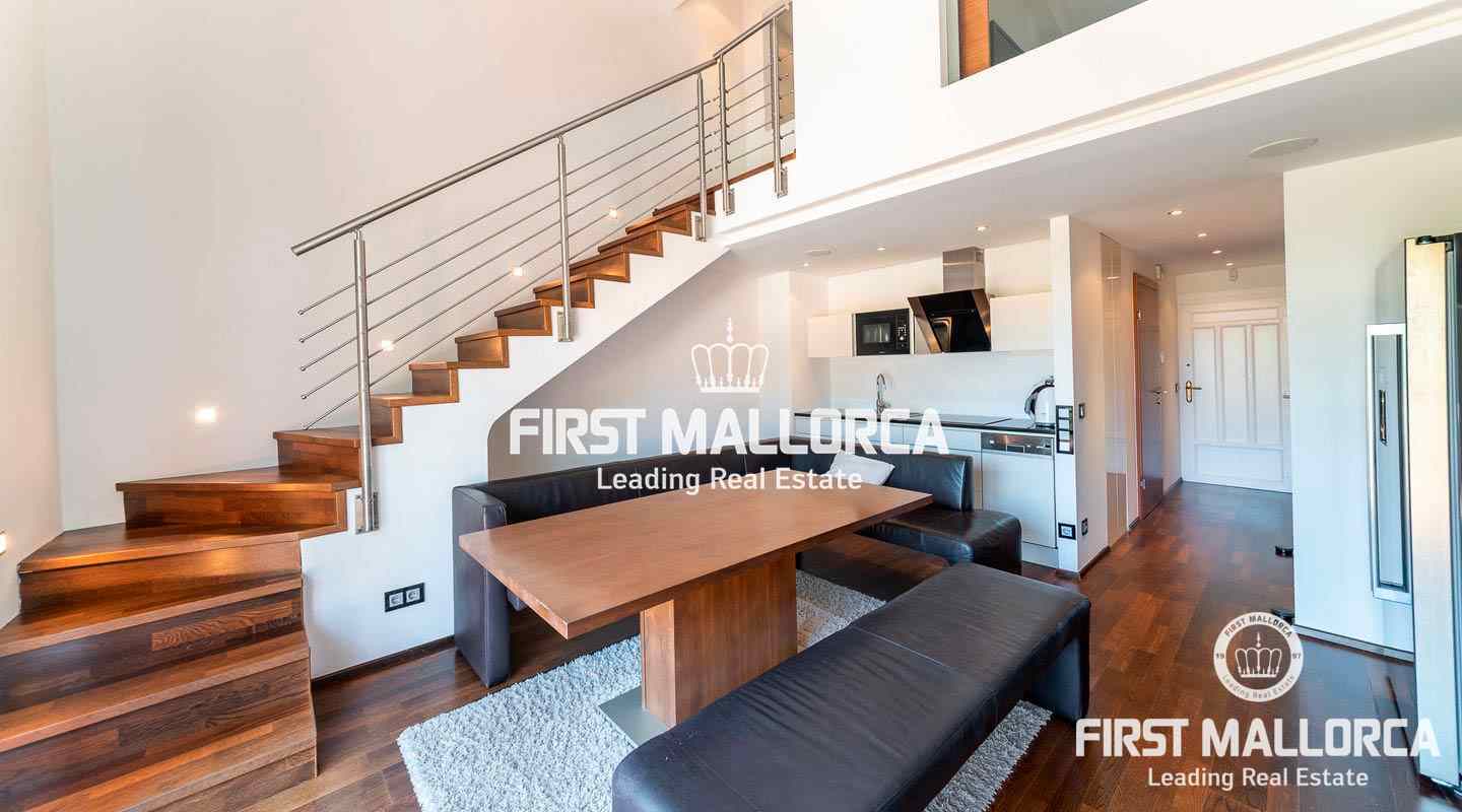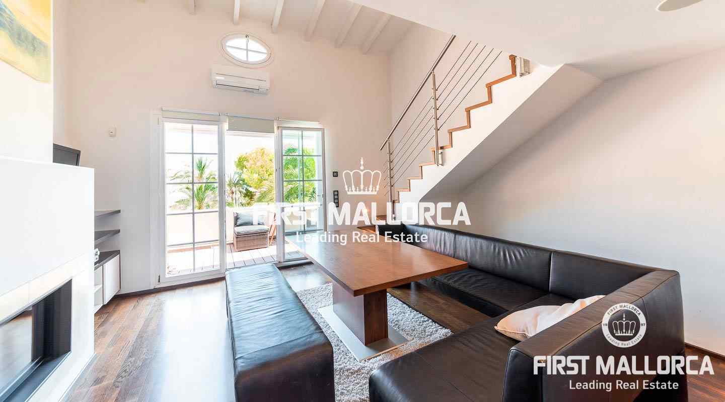 Dieses schicke Duplex-Penthouse bietet Ihnen die seltene Gelegenheit, in einer exklusiven Gemeinschaft in erster Meereslinie im Südwesten der Insel zu leben. Das Apartment bietet auf 2 Ebenen 2 Schlaf- und 2 Badezimmer. Auf der Eingangsebene befindet sich neben einem Schlaf- und Badezimmer ein offen gestalteter Wohn- und Essbereich mit Einbauküche. Von hier aus gelangt man auf die Terrasse mit Meerblick. Auf der oberen Ebene befindet sich das Hauptschlafzimmer mit Badezimmer en suite. Weitere Ausstattungsmerkmale: Klimaanlage warm/kalt, Elektroheizung, Kamin und ein grosser Abstellraum. Der Anchorage ist eine luxuriöse Wohnanlage mit Meerzugang und nur 10 Minuten mit dem Auto von Palma entfernt. Er verfügt über 5 Außenpools, einen Spa-Bereich mit türkischem Bad, Sauna und einem grossen Whirlpoolbecken. Abgerundet wird das ganze durch einen Tennisplatz, einen parkähnlichen Gemeinschaftsgarten mit subtropischen Pflanzen, Restaurant, 24-Stunden-Sicherheitsdienst sowie einen fantastischen Concierge-Service.