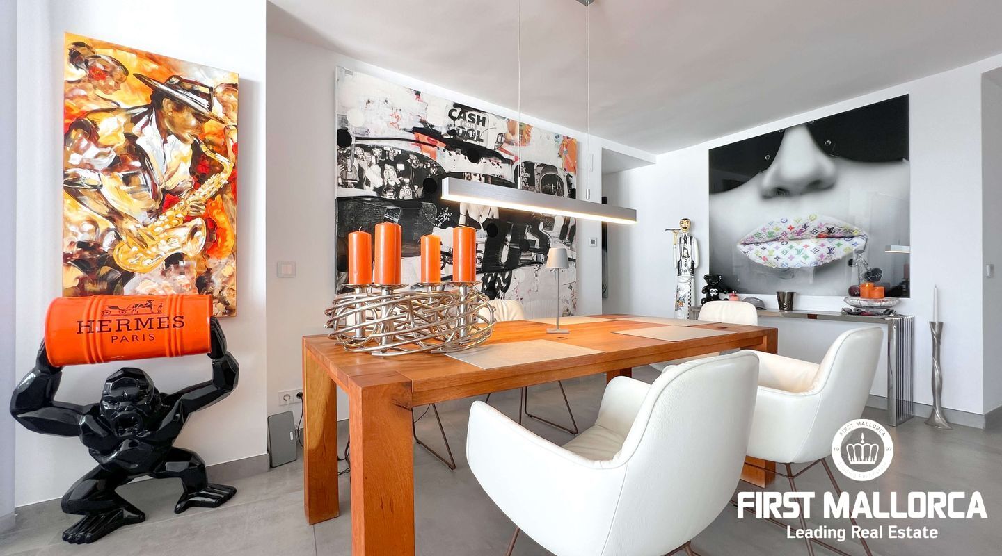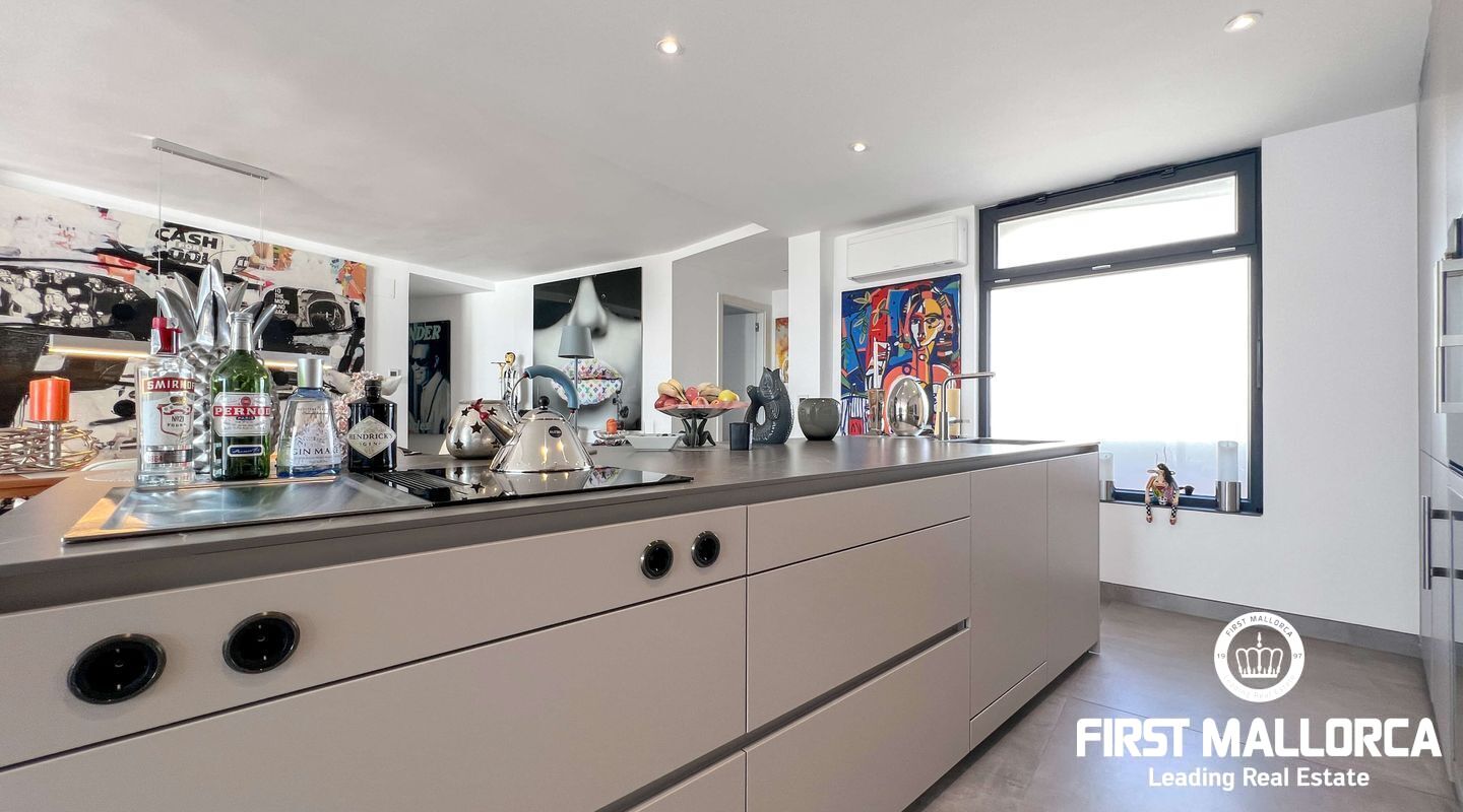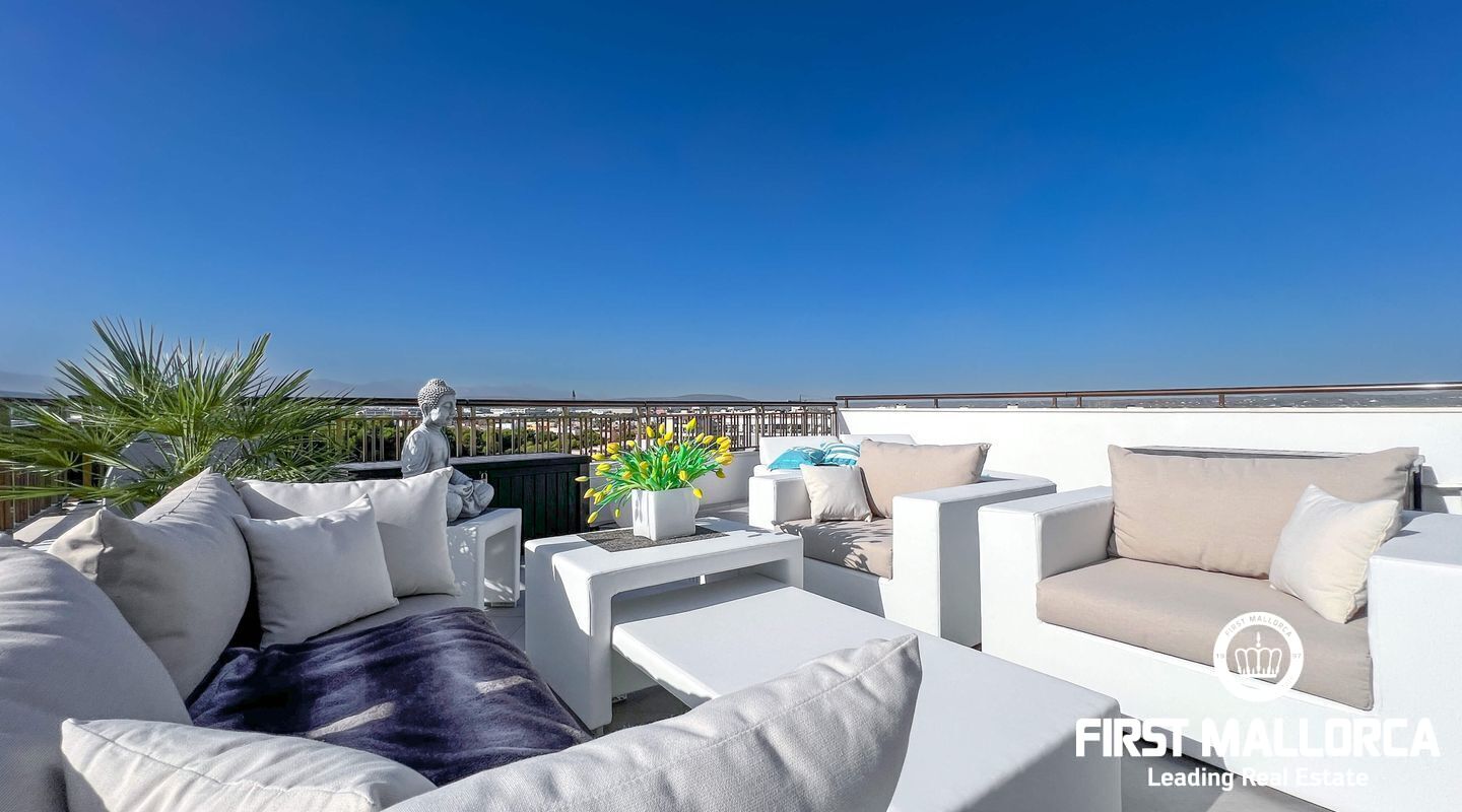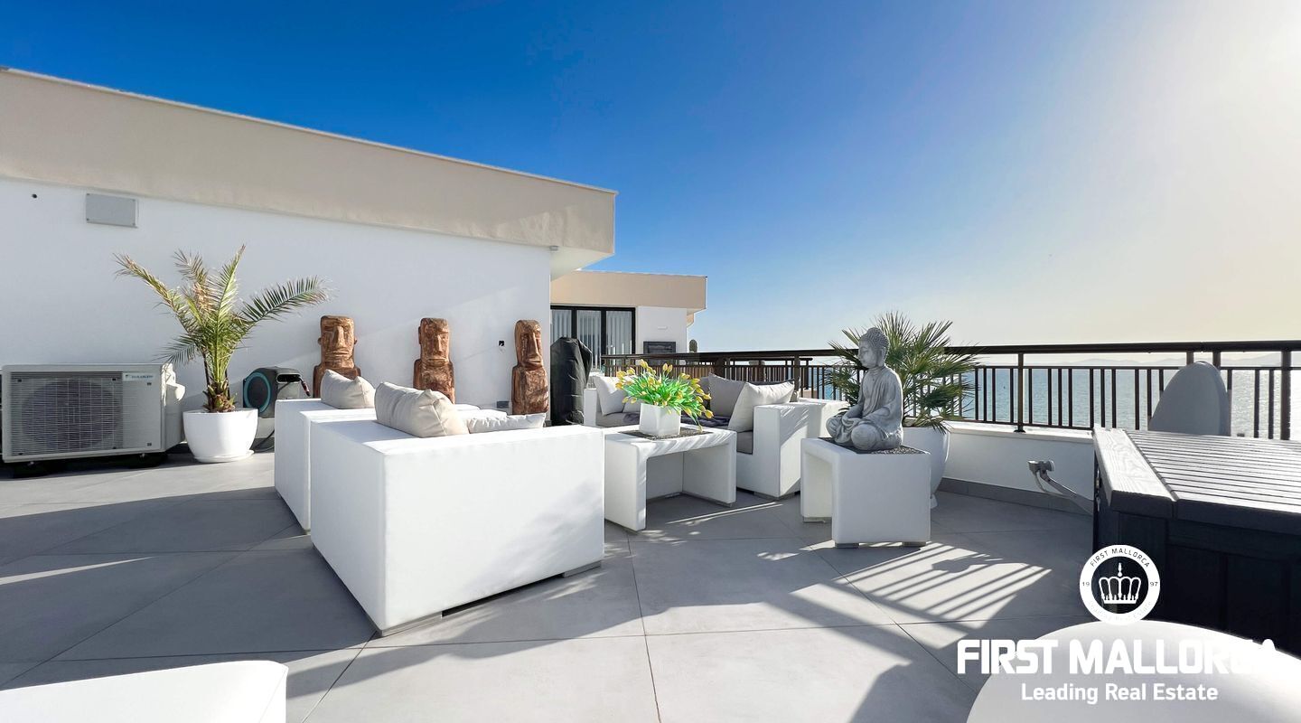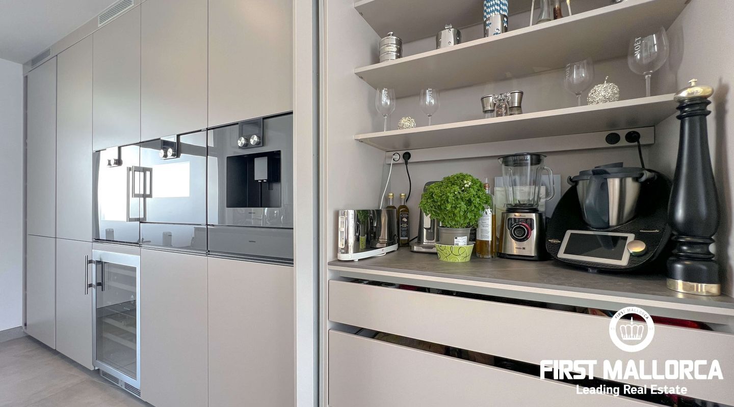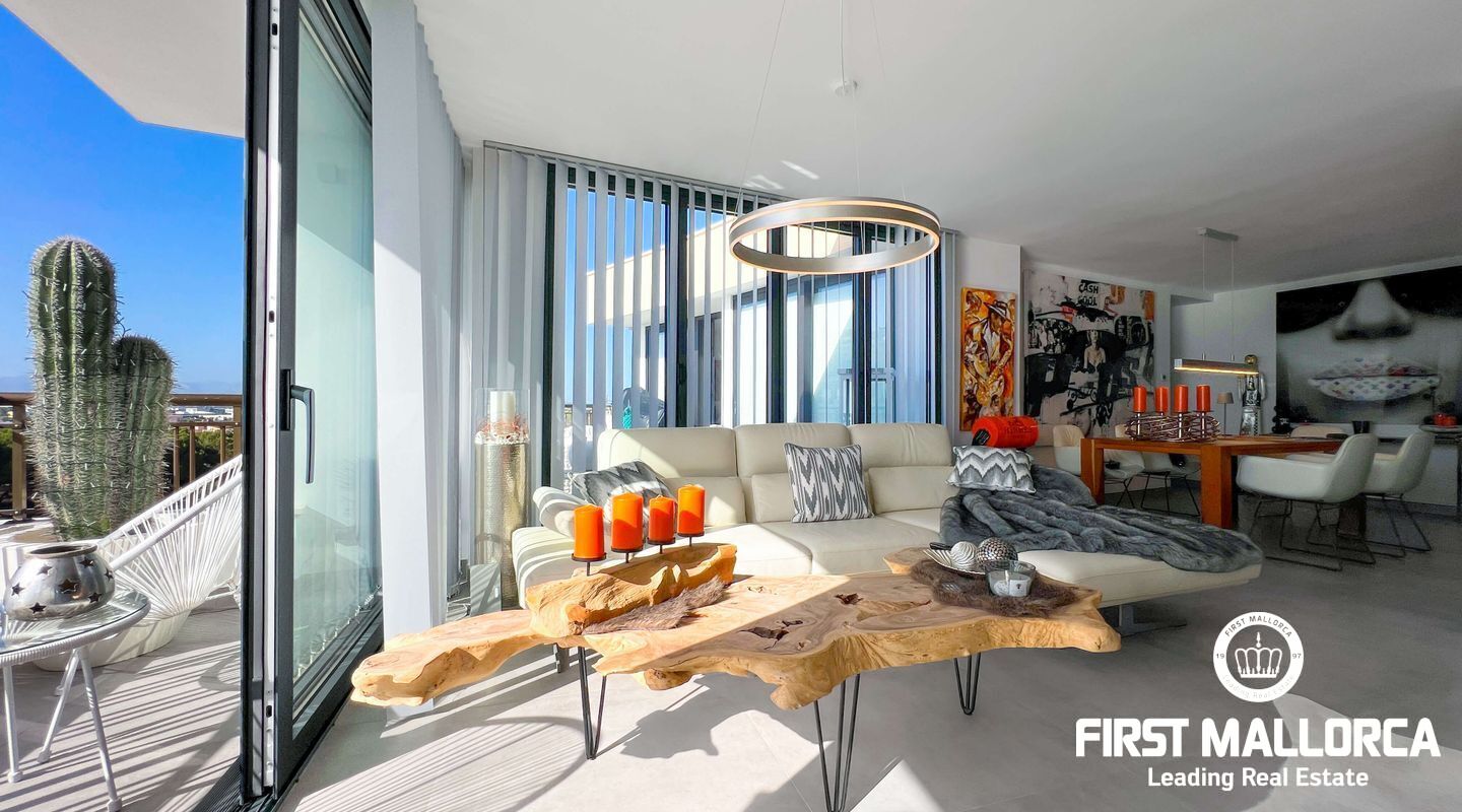 Dieses außergewöhnliche Penthouse im sechsten Stock eines gepflegten Gebäudes mit Aufzug befindet sich direkt an der ersten Meereslinie der begehrten Playa de Palma (in La Ribera). Hier genießen Sie einen unvergleichlichen Blick auf das prachtvolle Mittelmeer und den wunderschönen Sandstrand mit kristallklarem Wasser. Auf einer großzügigen Wohnfläche von etwa 102 m² und 84 m² Terrasse mit atemberaubendem Meerblick lassen sich Komfort und Luxus in vollen Zügen auskosten. Der lichtdurchflutete Wohnbereich überzeugt durch ein geräumiges Wohn-Esszimmer mit Panorama-Schiebefenstern, die Sie vollständig öffnen können Ihnen das Gefühl geben, direkt am Meer zu leben. Die luxuriöse Küche ist mit hochwertigen Gaggenau-Geräten ausgestattet und bietet alles, was das Herz eines ambitionierten Hobbykochs begehrt. Drei Schlafzimmer bieten ausreichend Platz und Rückzugsmöglichkeiten. Zwei moderne Badezimmer, eines davon en suite, sind mit hochwertigen Materialien und stilvollen Details ausgestattet, die keine Wünsche offen lassen. Das Highlight dieses Penthouses sind die großzügigen Terrassenbereiche, die Ihnen einen unvergleichlichen 360°-Blick auf das Meer und das Tramuntana-Gebirge bieten. Dieser Chill-out-Bereich lädt zu gemütlichen Mahlzeiten und entspannten Stunden mit Freunden und Familie ein. Hier können Sie die mediterrane Lebensart in vollen Zügen genießen und unvergessliche Sonnenuntergänge erleben. Zu den weiteren herausragenden Merkmalen dieser Immobilie zählen eine Fußbodenheizung mit Wärmepumpe, dreifach verglaste Fenster und stilvolle Fliesen, die ein elegantes Wohnambiente schaffen. Ein privater Parkplatz bietet ausreichend Platz für Ihr Fahrzeug. Ein weiterer Vorteil dieses exklusiven Penthouses ist das geräumige, komplett renovierte "Lokal" im Untergeschoss des Gebäudes, das jedoch als Lagerraum genutzt wird. Dieses bietet zusätzlichen Stauraum und vielfältige Nutzungsmöglichkeiten. Die Fassade dieser fantastischen Immobilie wurde kürzlich erneuert und fügt sich harmonisch in die Umgebung ein. Dank der unschlagbaren Lage an der Playa de Palma profitieren Sie von einer idealen Anbindung an den Flughafen sowie von zahlreichen Restaurants, Bars und Annehmlichkeiten in unmittelbarer Nähe. Dieses Penthouse in La Ribera ist ein echtes Juwel, das Luxus und Komfort in perfekter Harmonie vereint. Erleben Sie das mediterrane Lebensgefühl in einer der begehrtesten Lagen Mallorcas und machen Sie dieses Traumdomizil zu Ihrem neuen Zuhause. Zögern Sie nicht und vereinbaren Sie noch heute einen Besichtigungstermin, um sich von der Einzigartigkeit dieser Immobilie selbst zu überzeugen.