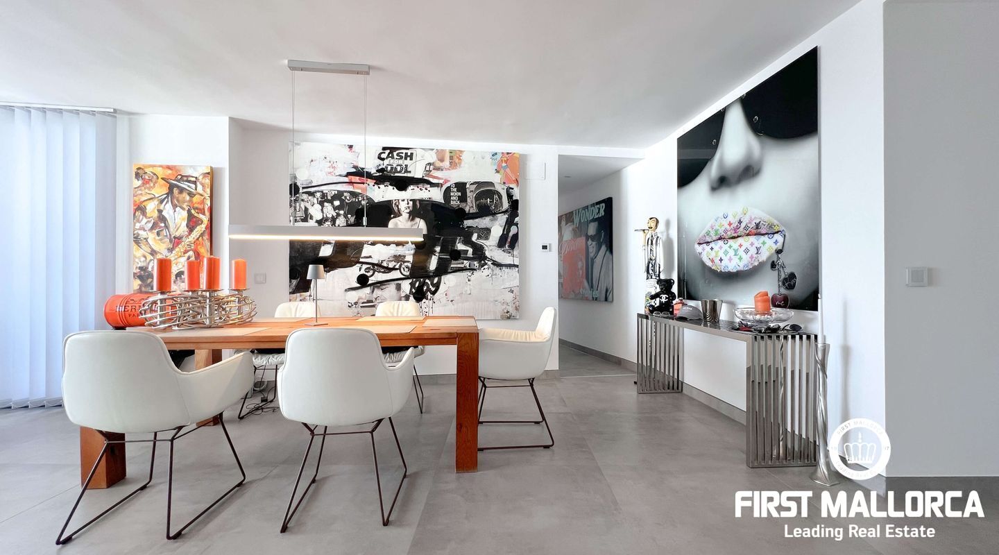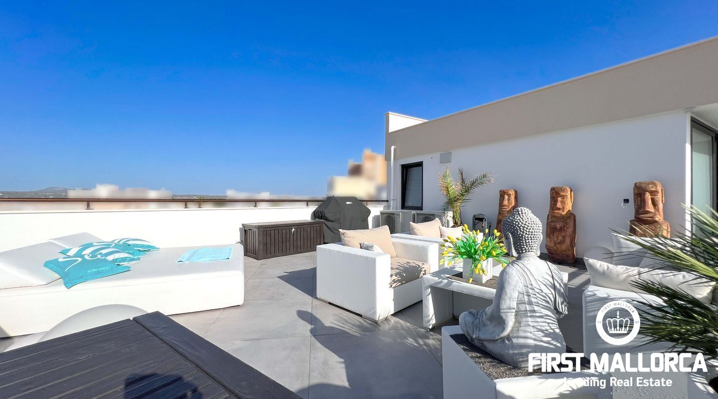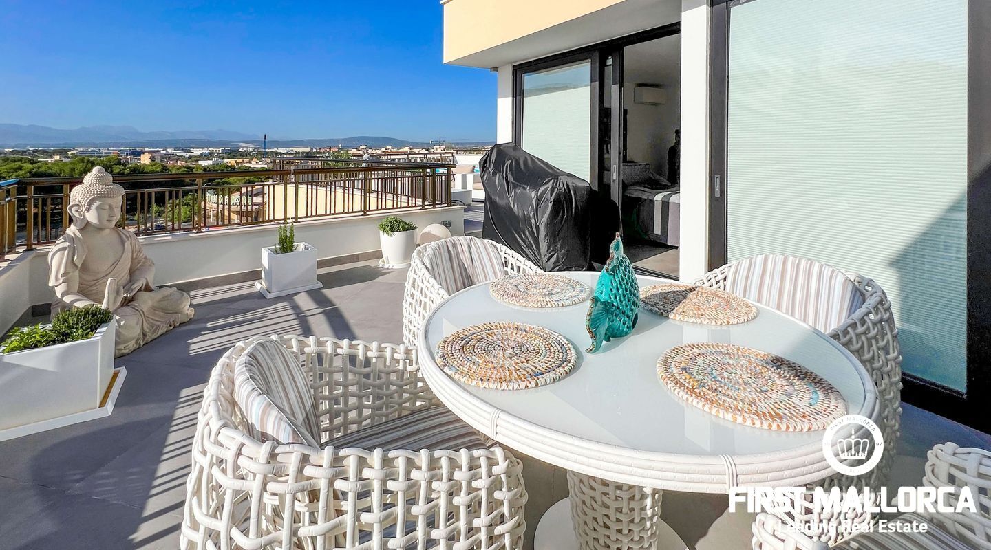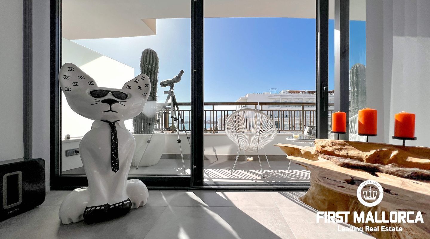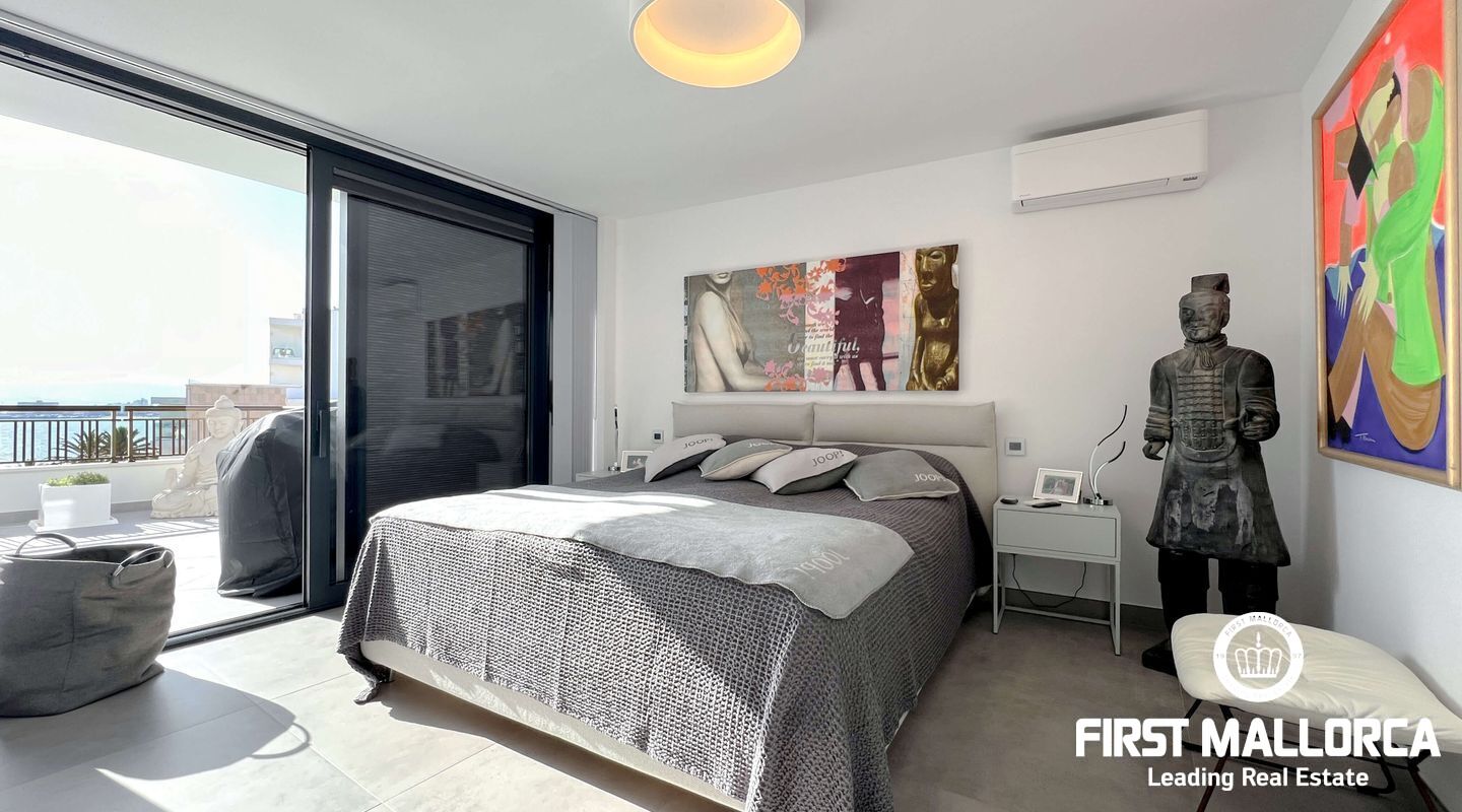 Dieses außergewöhnliche Penthouse im sechsten Stock eines gepflegten Gebäudes mit Aufzug befindet sich direkt an der ersten Meereslinie der begehrten Playa de Palma (in La Ribera). Hier genießen Sie einen unvergleichlichen Blick auf das prachtvolle Mittelmeer und den wunderschönen Sandstrand mit kristallklarem Wasser. Auf einer großzügigen Wohnfläche von etwa 102 m² und 84 m² Terrasse mit atemberaubendem Meerblick lassen sich Komfort und Luxus in vollen Zügen auskosten. Der lichtdurchflutete Wohnbereich überzeugt durch ein geräumiges Wohn-Esszimmer mit Panorama-Schiebefenstern, die Sie vollständig öffnen können Ihnen das Gefühl geben, direkt am Meer zu leben. Die luxuriöse Küche ist mit hochwertigen Gaggenau-Geräten ausgestattet und bietet alles, was das Herz eines ambitionierten Hobbykochs begehrt. Drei Schlafzimmer bieten ausreichend Platz und Rückzugsmöglichkeiten. Zwei moderne Badezimmer, eines davon en suite, sind mit hochwertigen Materialien und stilvollen Details ausgestattet, die keine Wünsche offen lassen. Das Highlight dieses Penthouses sind die großzügigen Terrassenbereiche, die Ihnen einen unvergleichlichen 360°-Blick auf das Meer und das Tramuntana-Gebirge bieten. Dieser Chill-out-Bereich lädt zu gemütlichen Mahlzeiten und entspannten Stunden mit Freunden und Familie ein. Hier können Sie die mediterrane Lebensart in vollen Zügen genießen und unvergessliche Sonnenuntergänge erleben. Zu den weiteren herausragenden Merkmalen dieser Immobilie zählen eine Fußbodenheizung mit Wärmepumpe, dreifach verglaste Fenster und stilvolle Fliesen, die ein elegantes Wohnambiente schaffen. Ein privater Parkplatz bietet ausreichend Platz für Ihr Fahrzeug. Ein weiterer Vorteil dieses exklusiven Penthouses ist das geräumige, komplett renovierte "Lokal" im Untergeschoss des Gebäudes, das jedoch als Lagerraum genutzt wird. Dieses bietet zusätzlichen Stauraum und vielfältige Nutzungsmöglichkeiten. Die Fassade dieser fantastischen Immobilie wurde kürzlich erneuert und fügt sich harmonisch in die Umgebung ein. Dank der unschlagbaren Lage an der Playa de Palma profitieren Sie von einer idealen Anbindung an den Flughafen sowie von zahlreichen Restaurants, Bars und Annehmlichkeiten in unmittelbarer Nähe. Dieses Penthouse in La Ribera ist ein echtes Juwel, das Luxus und Komfort in perfekter Harmonie vereint. Erleben Sie das mediterrane Lebensgefühl in einer der begehrtesten Lagen Mallorcas und machen Sie dieses Traumdomizil zu Ihrem neuen Zuhause. Zögern Sie nicht und vereinbaren Sie noch heute einen Besichtigungstermin, um sich von der Einzigartigkeit dieser Immobilie selbst zu überzeugen.