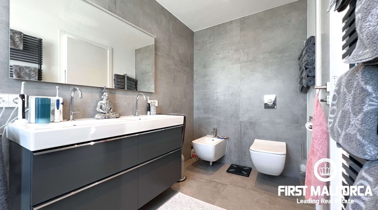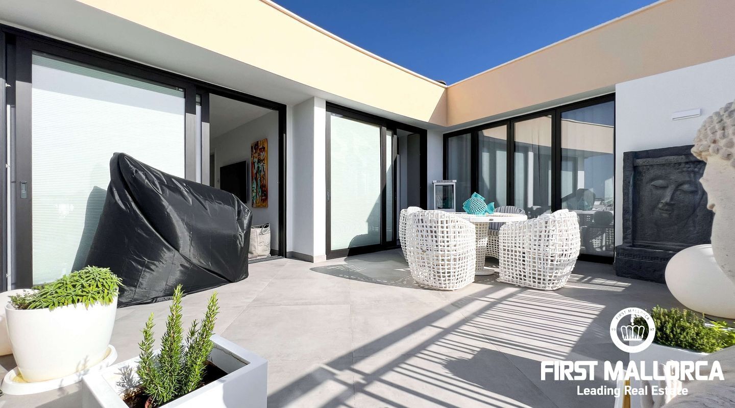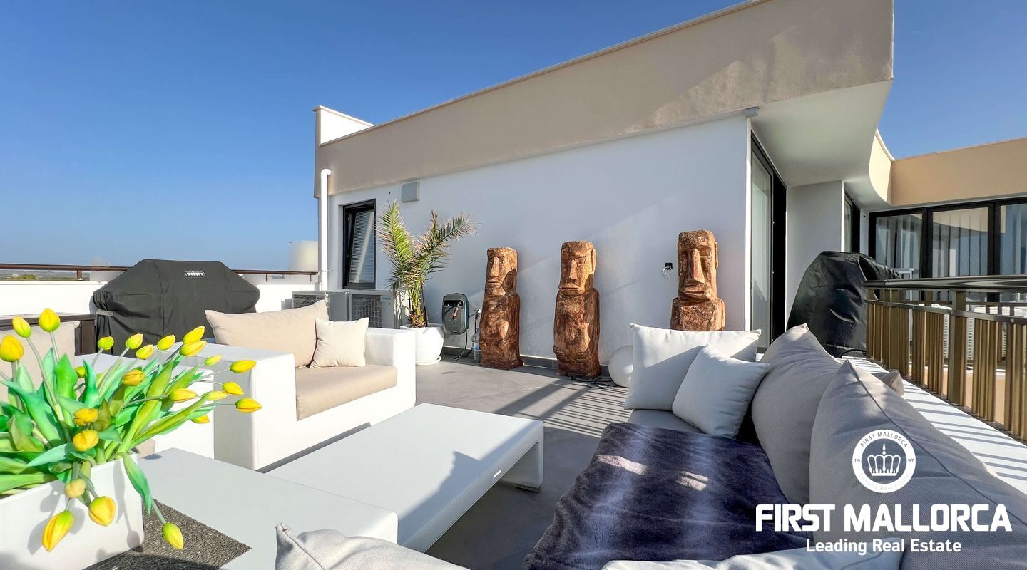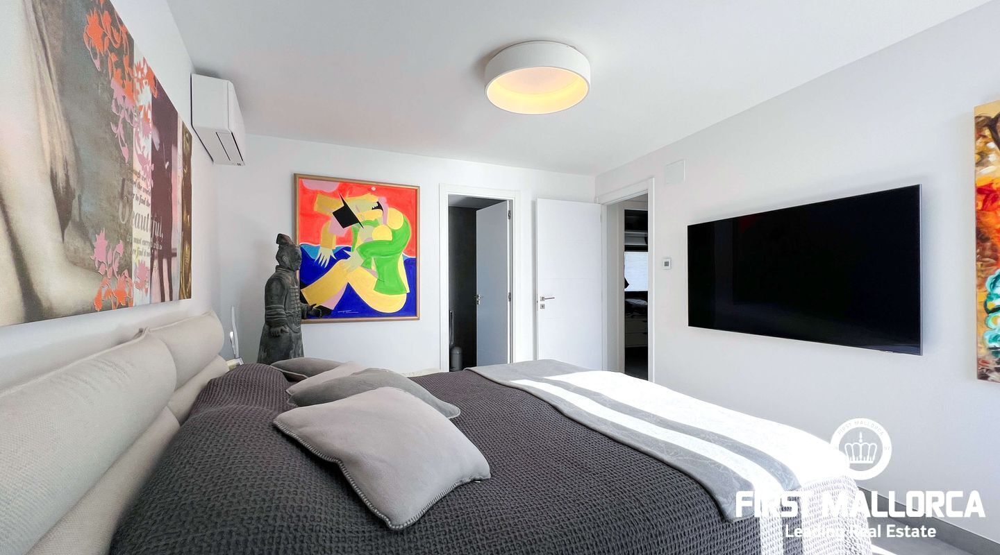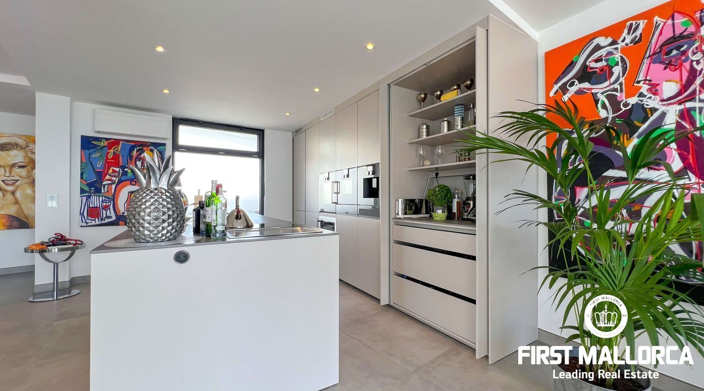 Dieses außergewöhnliche Penthouse im sechsten Stock eines gepflegten Gebäudes mit Aufzug befindet sich direkt an der ersten Meereslinie der begehrten Playa de Palma (in La Ribera). Hier genießen Sie einen unvergleichlichen Blick auf das prachtvolle Mittelmeer und den wunderschönen Sandstrand mit kristallklarem Wasser. Auf einer großzügigen Wohnfläche von etwa 102 m² und 84 m² Terrasse mit atemberaubendem Meerblick lassen sich Komfort und Luxus in vollen Zügen auskosten. Der lichtdurchflutete Wohnbereich überzeugt durch ein geräumiges Wohn-Esszimmer mit Panorama-Schiebefenstern, die Sie vollständig öffnen können Ihnen das Gefühl geben, direkt am Meer zu leben. Die luxuriöse Küche ist mit hochwertigen Gaggenau-Geräten ausgestattet und bietet alles, was das Herz eines ambitionierten Hobbykochs begehrt. Drei Schlafzimmer bieten ausreichend Platz und Rückzugsmöglichkeiten. Zwei moderne Badezimmer, eines davon en suite, sind mit hochwertigen Materialien und stilvollen Details ausgestattet, die keine Wünsche offen lassen. Das Highlight dieses Penthouses sind die großzügigen Terrassenbereiche, die Ihnen einen unvergleichlichen 360°-Blick auf das Meer und das Tramuntana-Gebirge bieten. Dieser Chill-out-Bereich lädt zu gemütlichen Mahlzeiten und entspannten Stunden mit Freunden und Familie ein. Hier können Sie die mediterrane Lebensart in vollen Zügen genießen und unvergessliche Sonnenuntergänge erleben. Zu den weiteren herausragenden Merkmalen dieser Immobilie zählen eine Fußbodenheizung mit Wärmepumpe, dreifach verglaste Fenster und stilvolle Fliesen, die ein elegantes Wohnambiente schaffen. Ein privater Parkplatz bietet ausreichend Platz für Ihr Fahrzeug. Ein weiterer Vorteil dieses exklusiven Penthouses ist das geräumige, komplett renovierte "Lokal" im Untergeschoss des Gebäudes, das jedoch als Lagerraum genutzt wird. Dieses bietet zusätzlichen Stauraum und vielfältige Nutzungsmöglichkeiten. Die Fassade dieser fantastischen Immobilie wurde kürzlich erneuert und fügt sich harmonisch in die Umgebung ein. Dank der unschlagbaren Lage an der Playa de Palma profitieren Sie von einer idealen Anbindung an den Flughafen sowie von zahlreichen Restaurants, Bars und Annehmlichkeiten in unmittelbarer Nähe. Dieses Penthouse in La Ribera ist ein echtes Juwel, das Luxus und Komfort in perfekter Harmonie vereint. Erleben Sie das mediterrane Lebensgefühl in einer der begehrtesten Lagen Mallorcas und machen Sie dieses Traumdomizil zu Ihrem neuen Zuhause. Zögern Sie nicht und vereinbaren Sie noch heute einen Besichtigungstermin, um sich von der Einzigartigkeit dieser Immobilie selbst zu überzeugen.