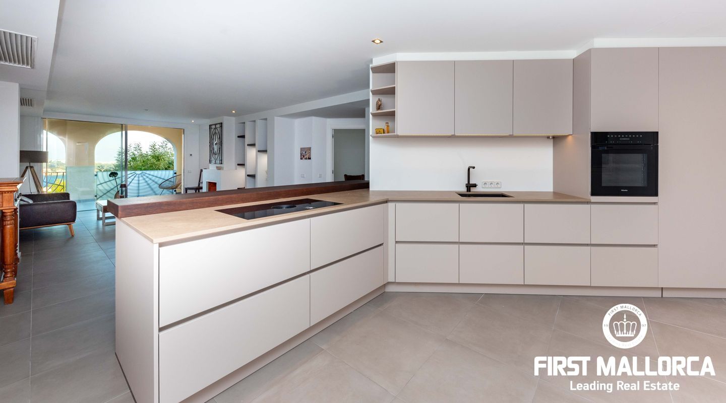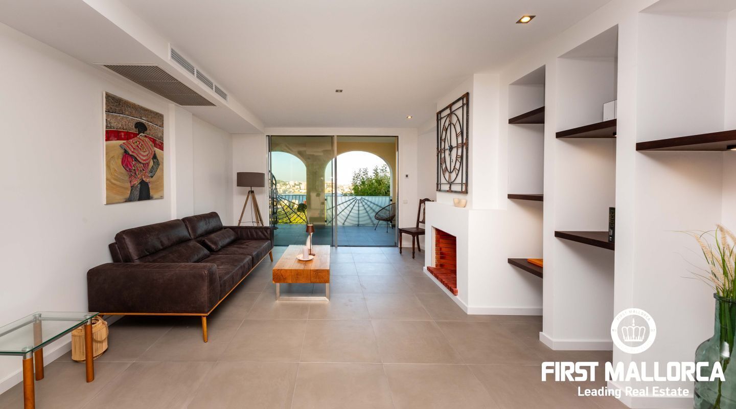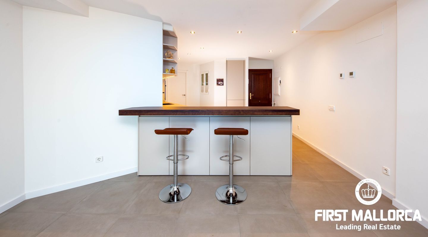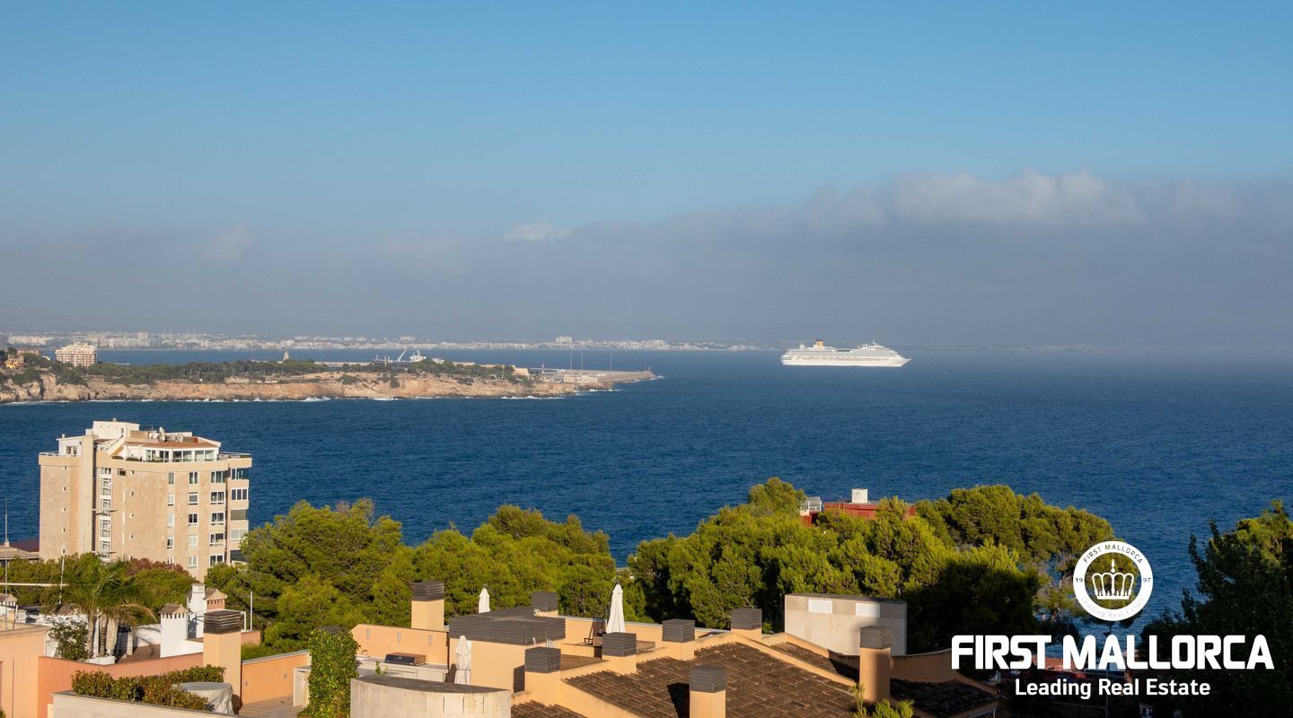 Dieses renovierte Penthouse mit 3 Schlafzimmern besticht durch einen offenen Wohn- und Essbereich mit offener Küche, die einen schönen Meerblick über Cala Nova und Marivent bietet. Das große Wohnzimmer hat einen offenen Kamin und ist durch große Schiebefenster mit der überdachten Terrasse verbunden, die zum Draußensitzen mit Blick auf das Tramuntana-Gebirge, Palma Stadt und die Bucht von Palma einlädt.