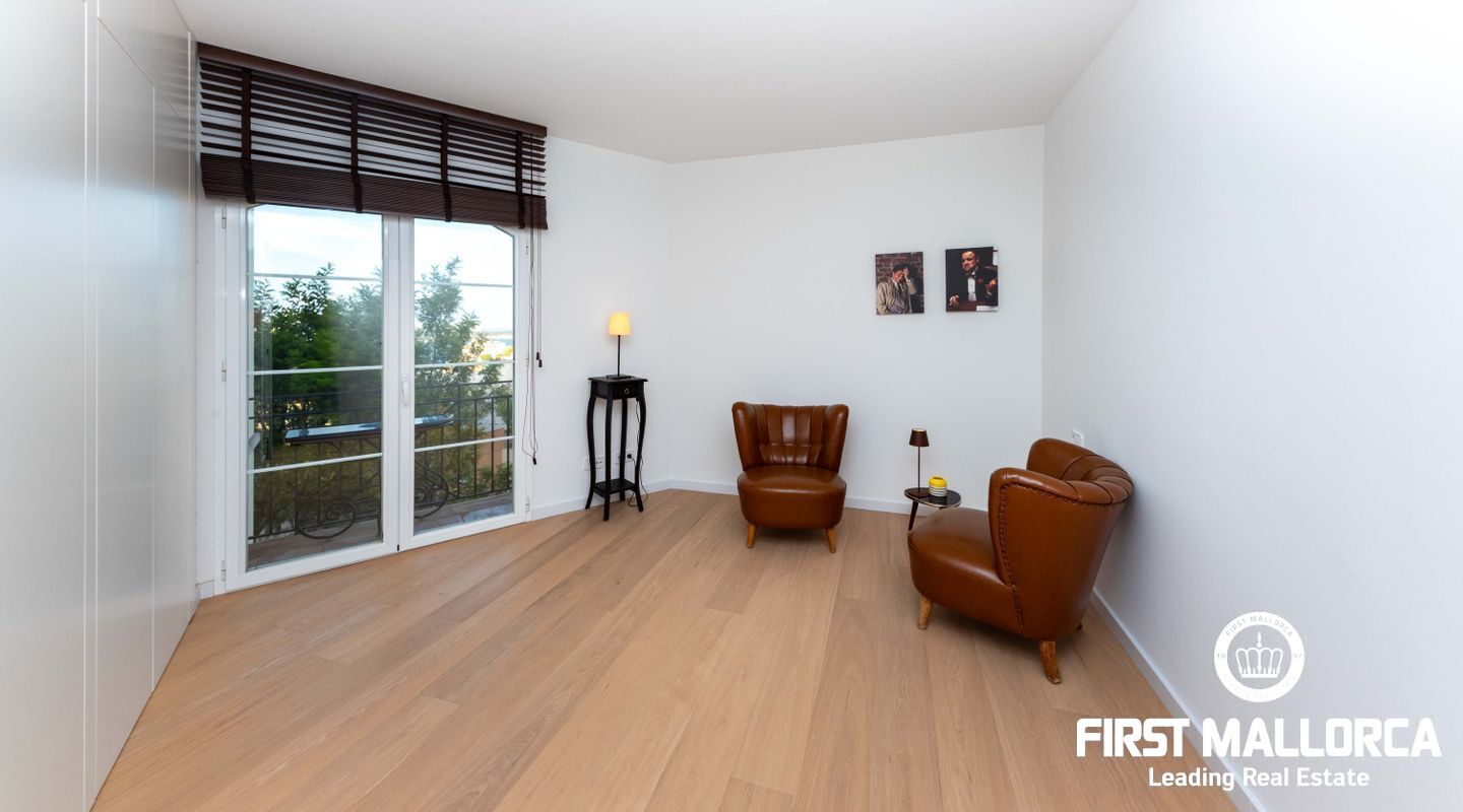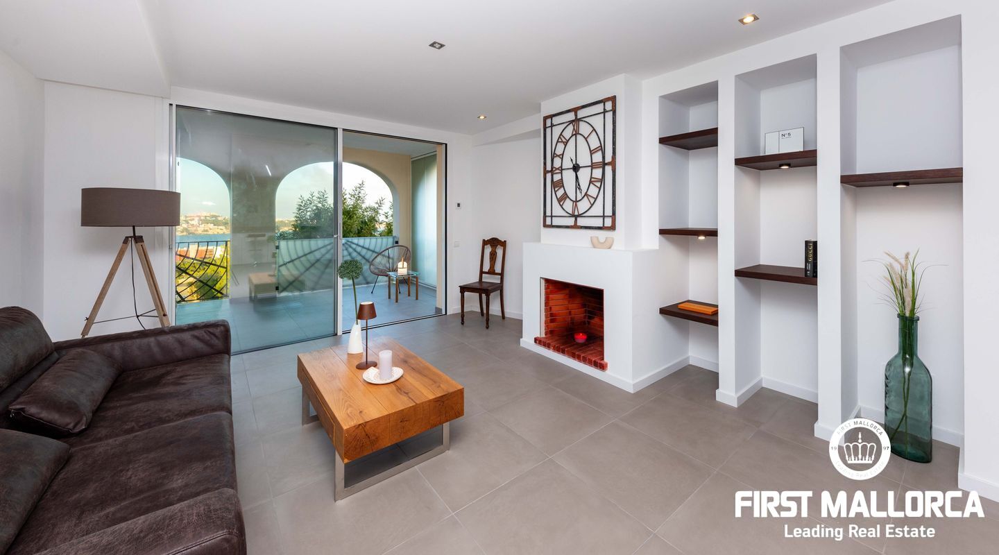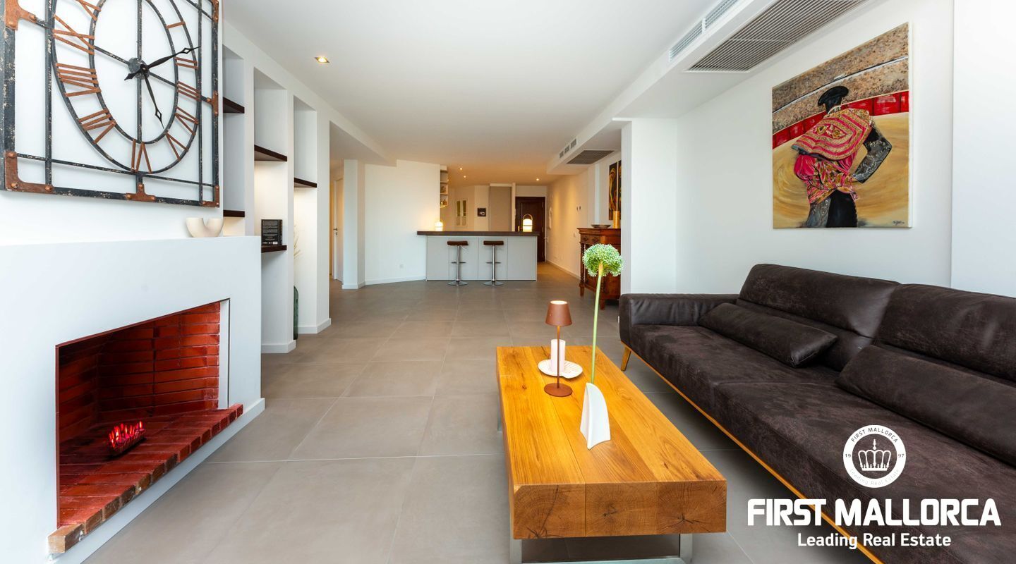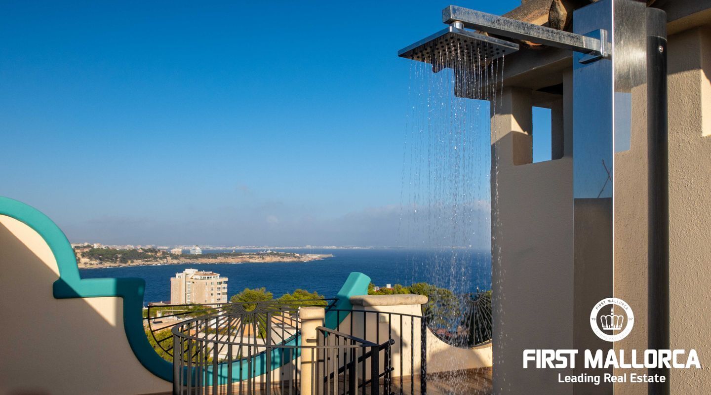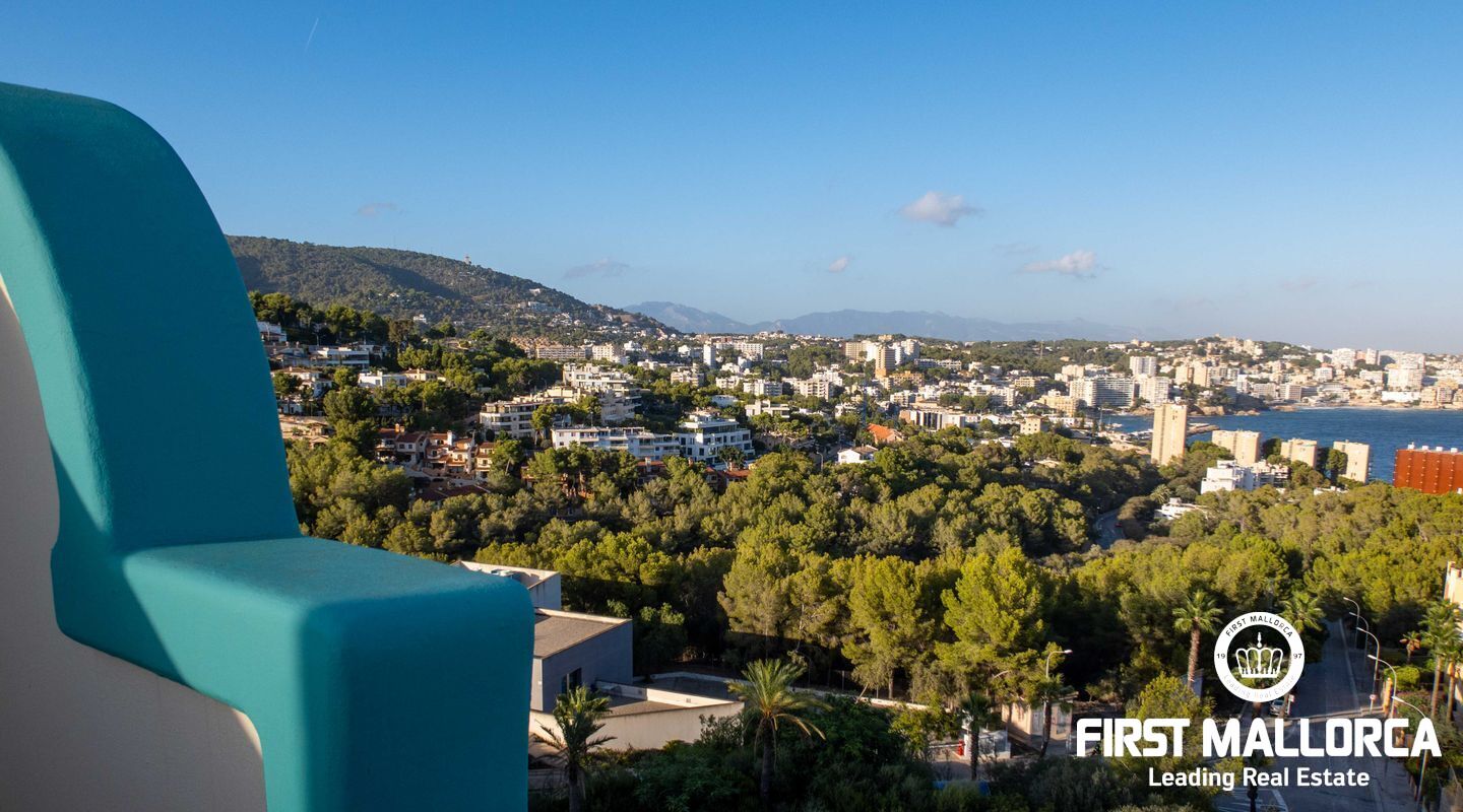 Dieses renovierte Penthouse mit 3 Schlafzimmern besticht durch einen offenen Wohn- und Essbereich mit offener Küche, die einen schönen Meerblick über Cala Nova und Marivent bietet. Das große Wohnzimmer hat einen offenen Kamin und ist durch große Schiebefenster mit der überdachten Terrasse verbunden, die zum Draußensitzen mit Blick auf das Tramuntana-Gebirge, Palma Stadt und die Bucht von Palma einlädt.