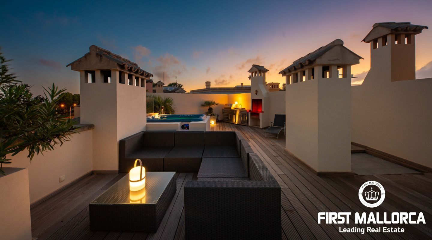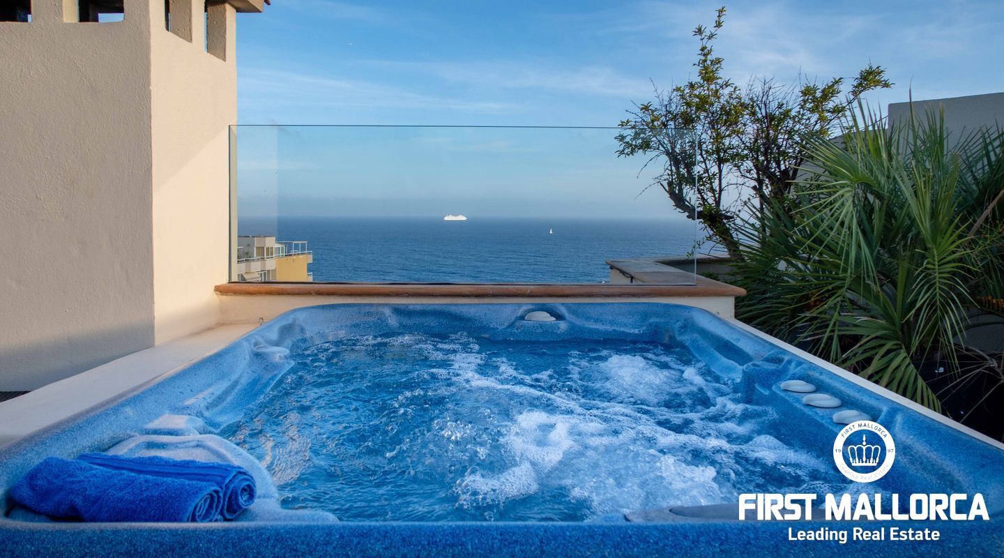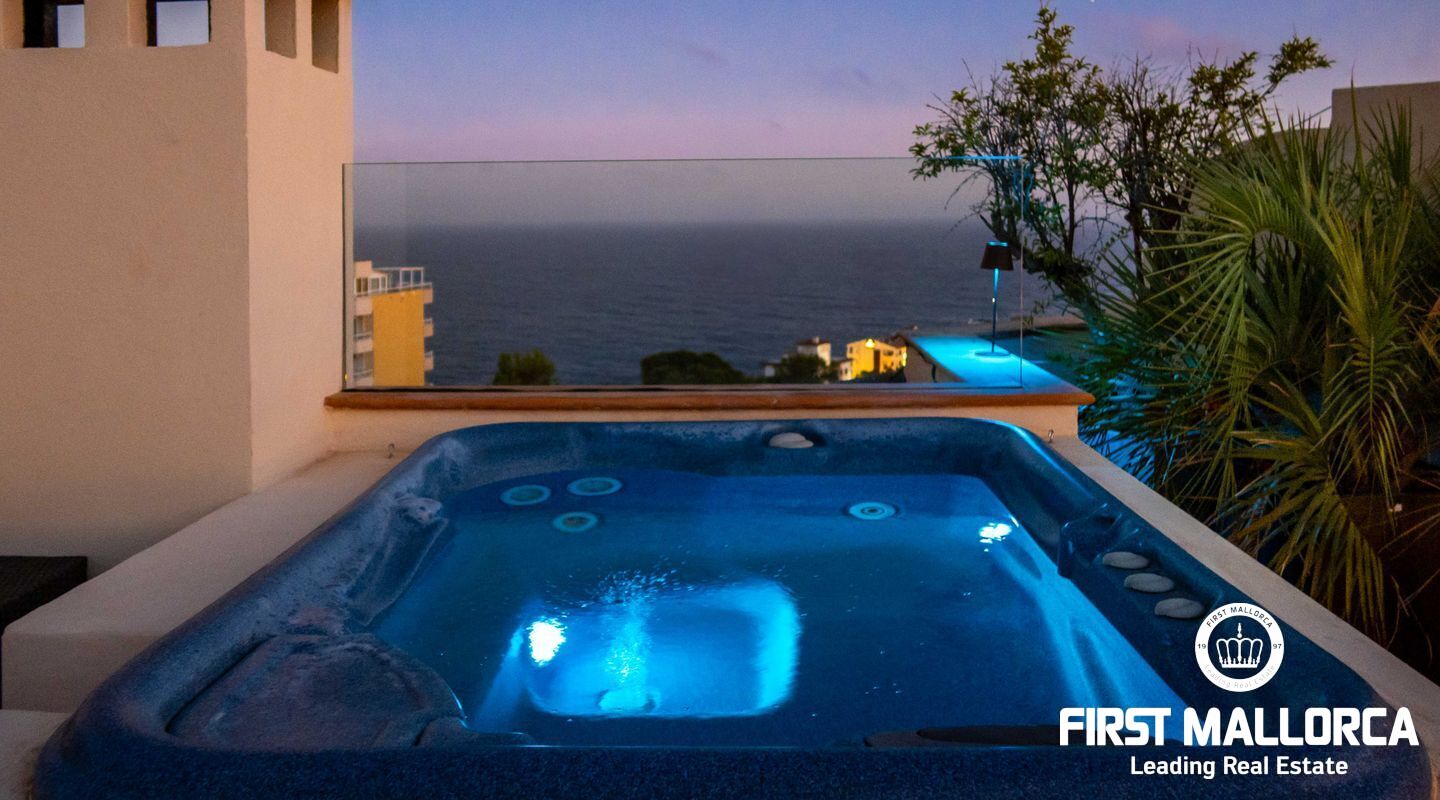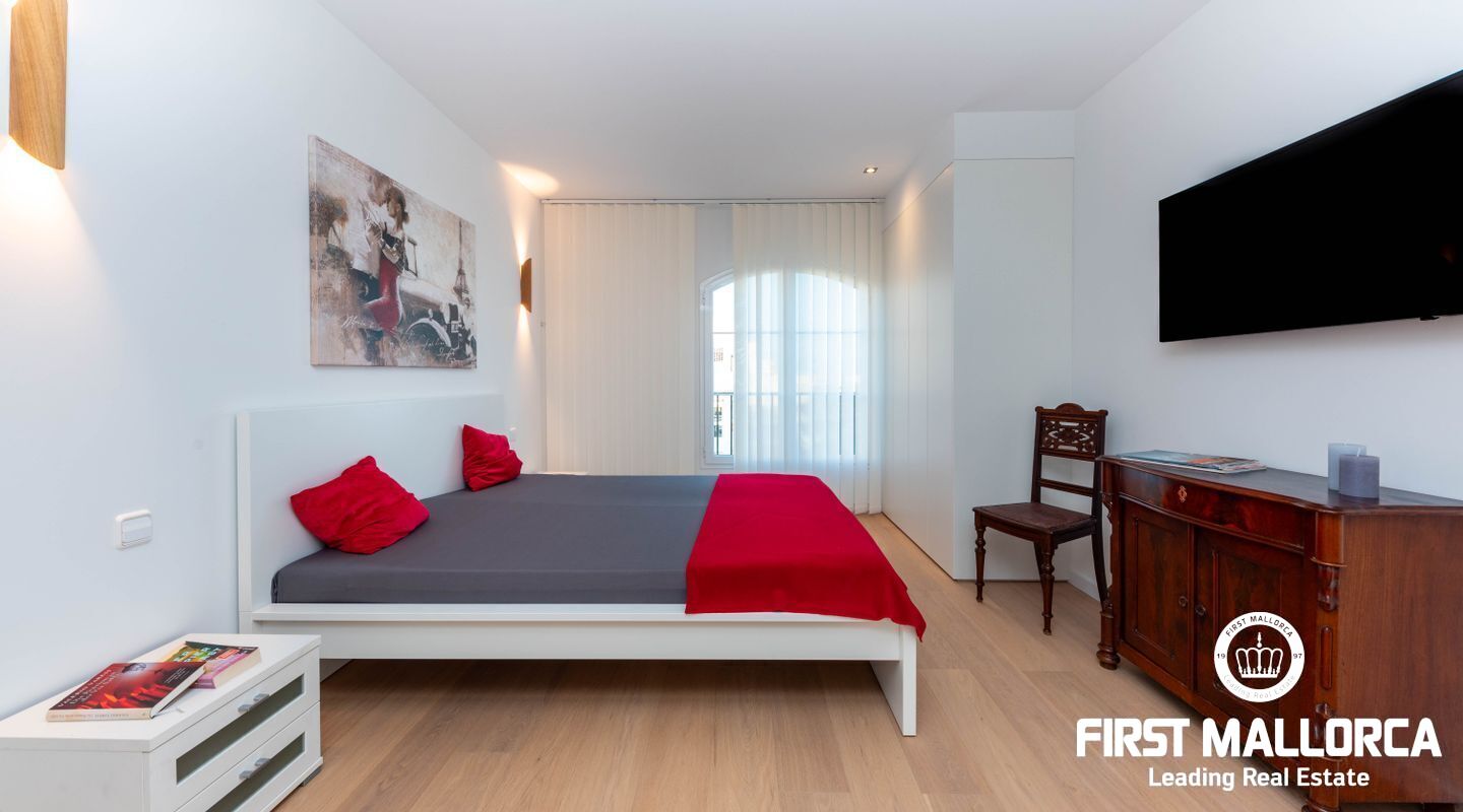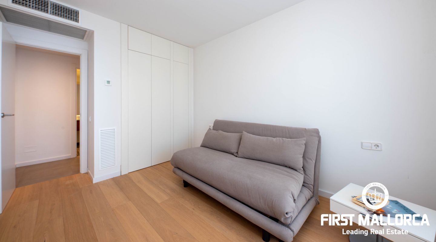 Dieses renovierte Penthouse mit 3 Schlafzimmern besticht durch einen offenen Wohn- und Essbereich mit offener Küche, die einen schönen Meerblick über Cala Nova und Marivent bietet. Das große Wohnzimmer hat einen offenen Kamin und ist durch große Schiebefenster mit der überdachten Terrasse verbunden, die zum Draußensitzen mit Blick auf das Tramuntana-Gebirge, Palma Stadt und die Bucht von Palma einlädt.