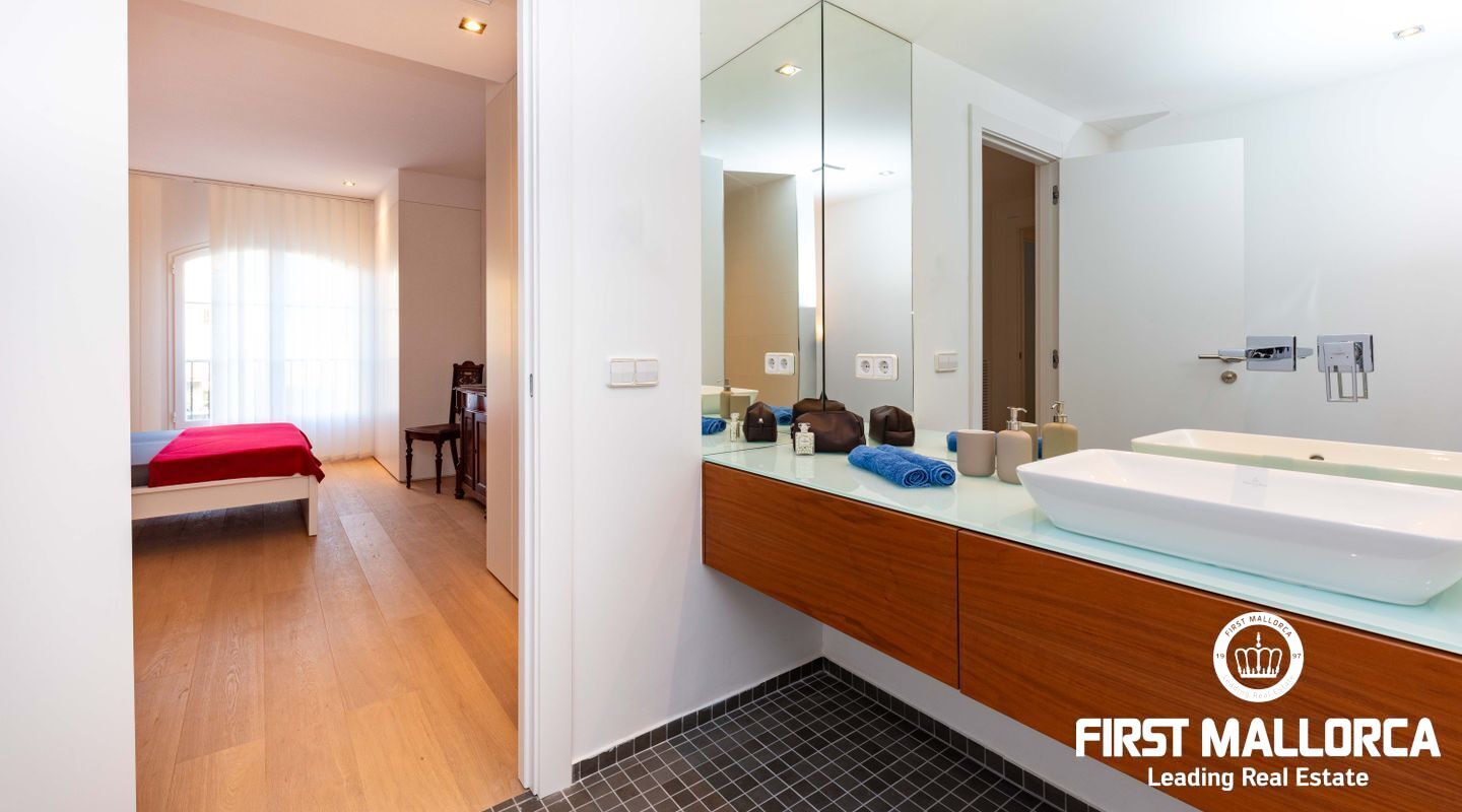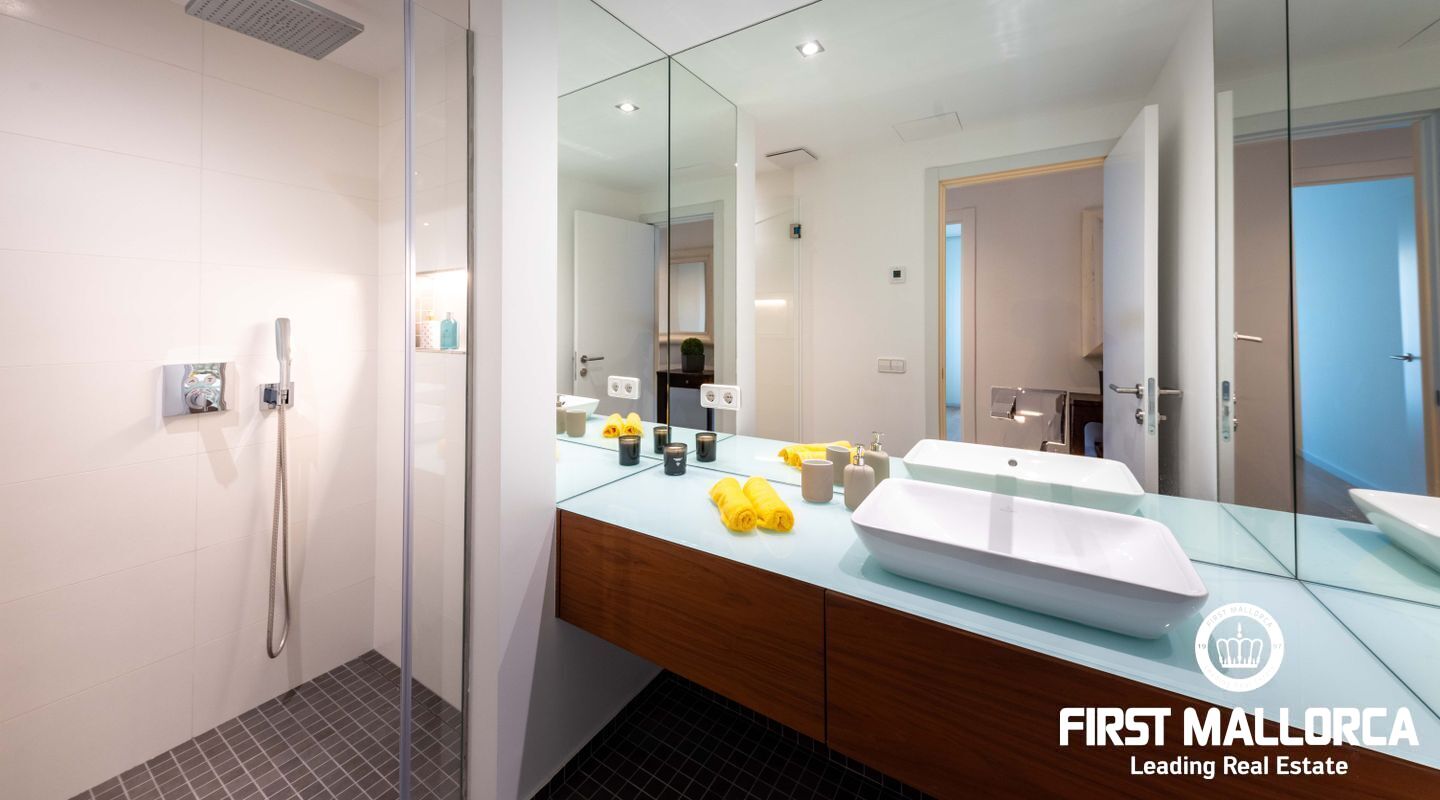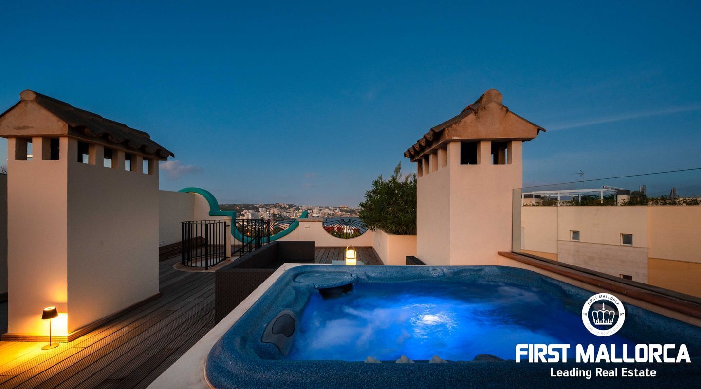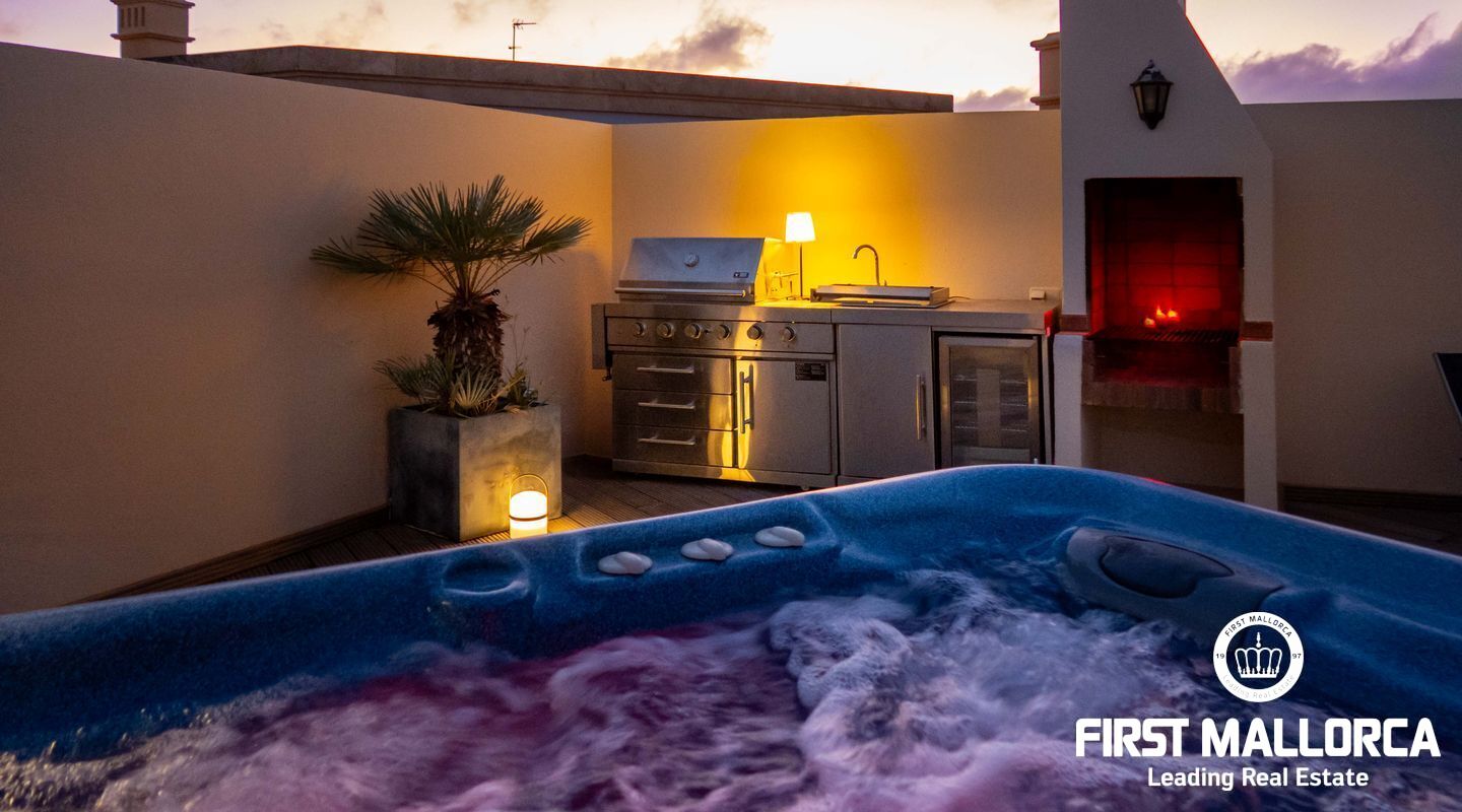 Dieses renovierte Penthouse mit 3 Schlafzimmern besticht durch einen offenen Wohn- und Essbereich mit offener Küche, die einen schönen Meerblick über Cala Nova und Marivent bietet. Das große Wohnzimmer hat einen offenen Kamin und ist durch große Schiebefenster mit der überdachten Terrasse verbunden, die zum Draußensitzen mit Blick auf das Tramuntana-Gebirge, Palma Stadt und die Bucht von Palma einlädt.