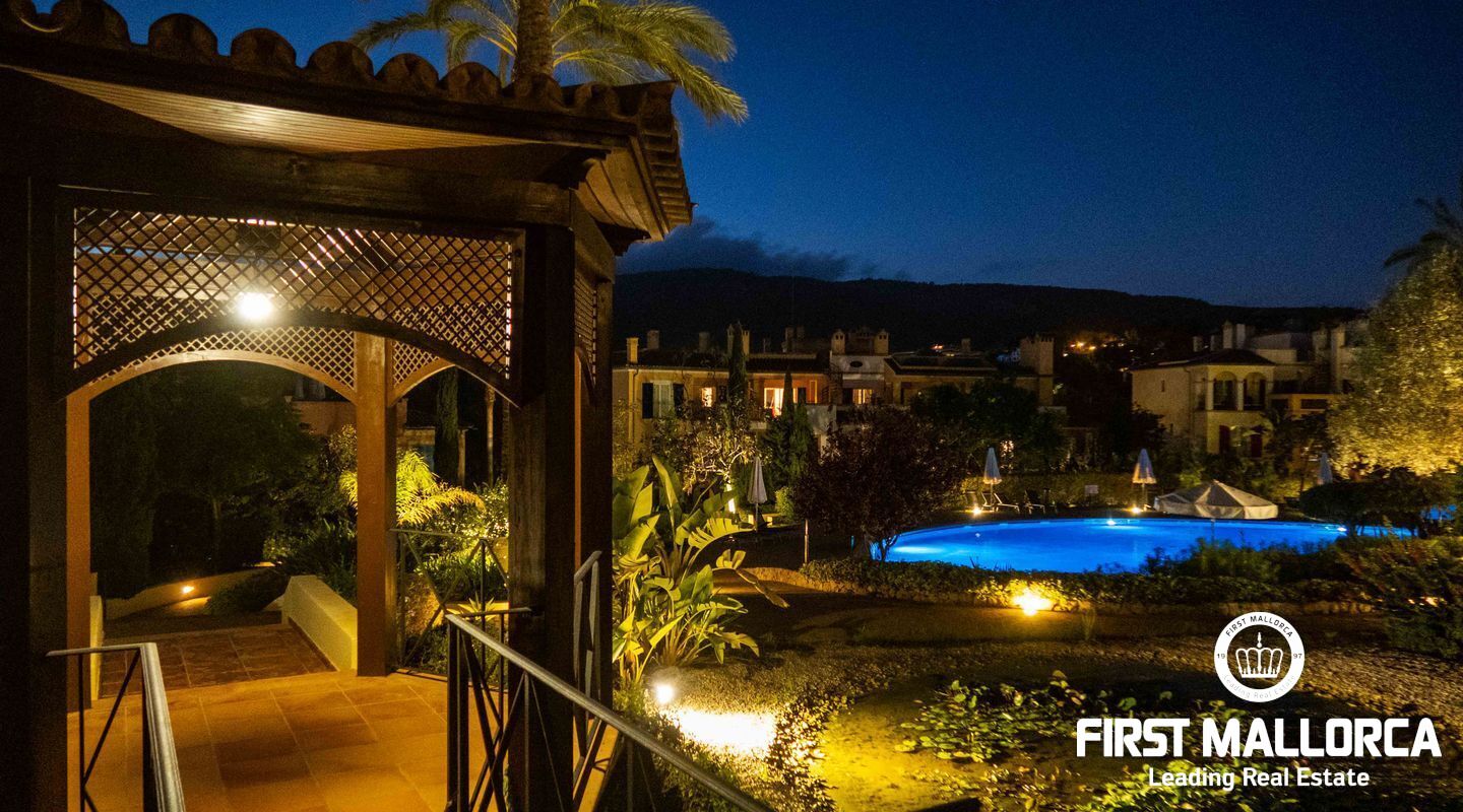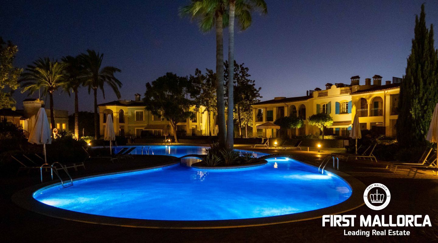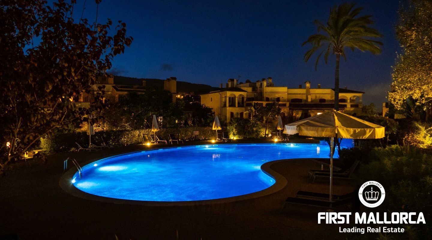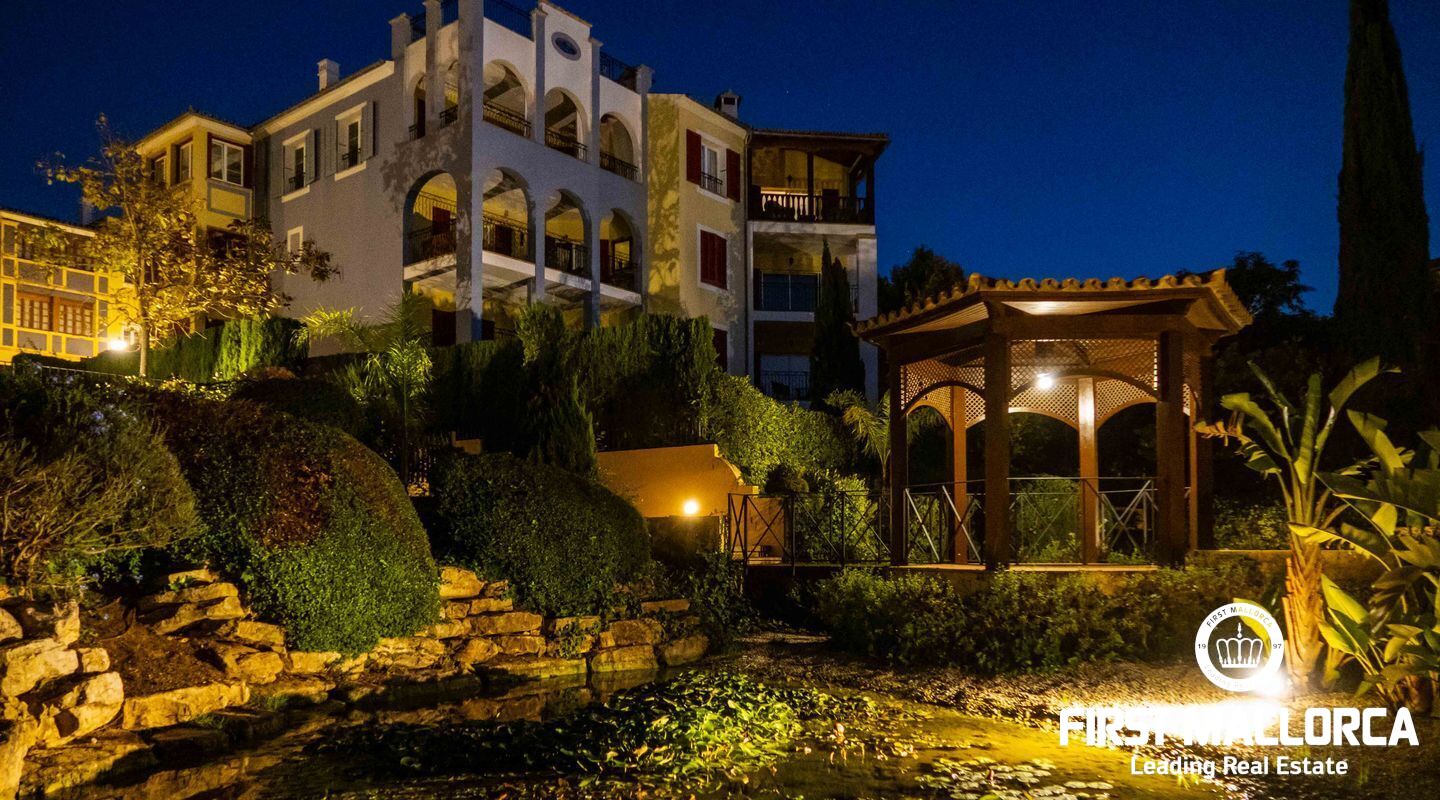 Die geschlossene Wohnanlage grenzt an den Golfplatz Bendinat Royal und verfügt über drei Swimmingpools, einer davon mit Meerblick, und weitläufige subtropische Gärten.
