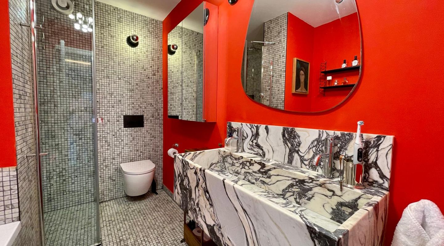 Die Wohnung bietet 73 m² Wohnfläche mit zwei Schlafzimmern: Das großzügige Hauptschlafzimmer verfügt über ein integriertes Ankleidezimmer, während das zweite Zimmer mit eigenem WC und direktem Zugang zum Hauswirtschaftsraum sowohl Privatsphäre als auch Funktionalität bietet. Das stilvolle Hauptbad ist mit Badewanne und begehbarer Dusche ausgestattet.
