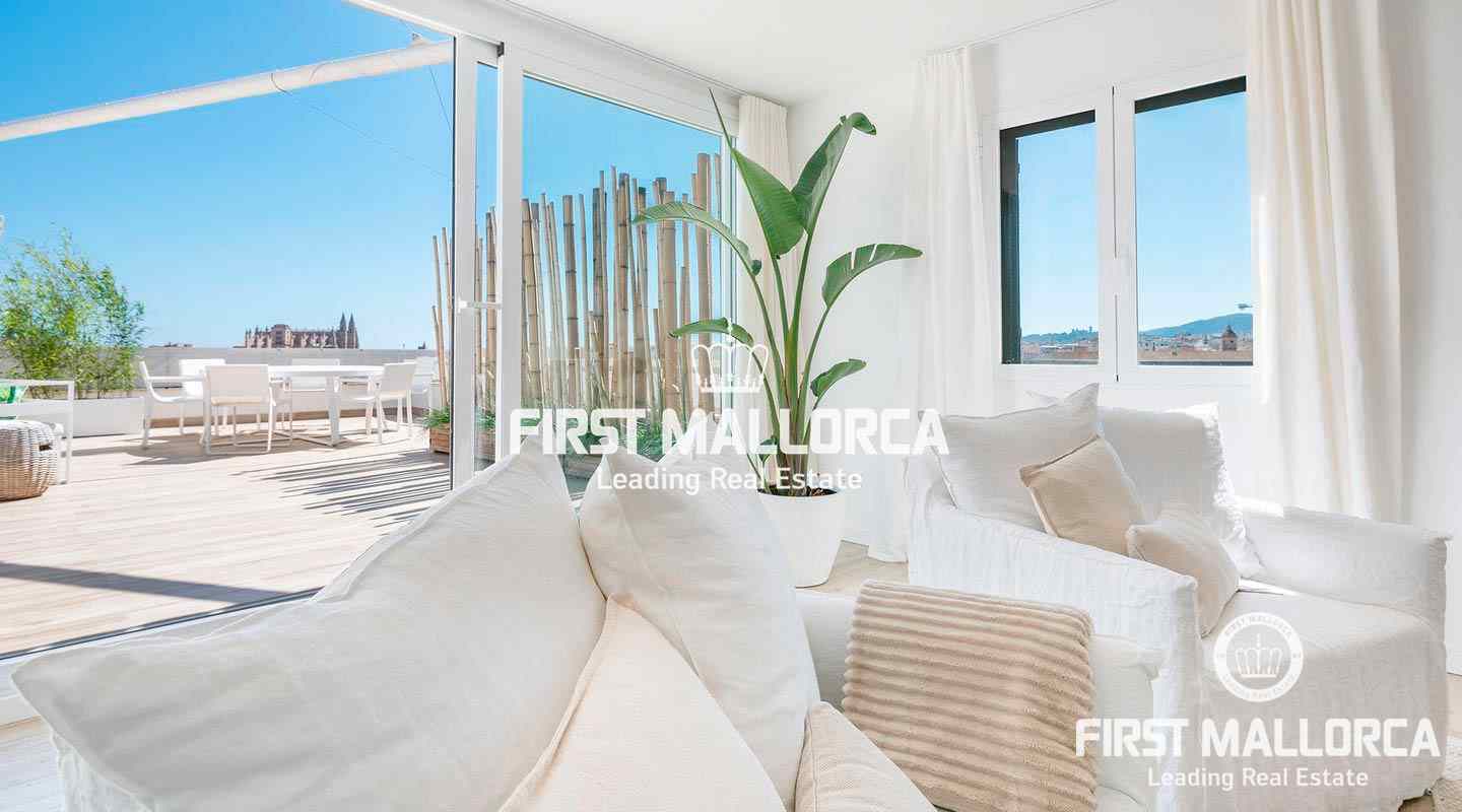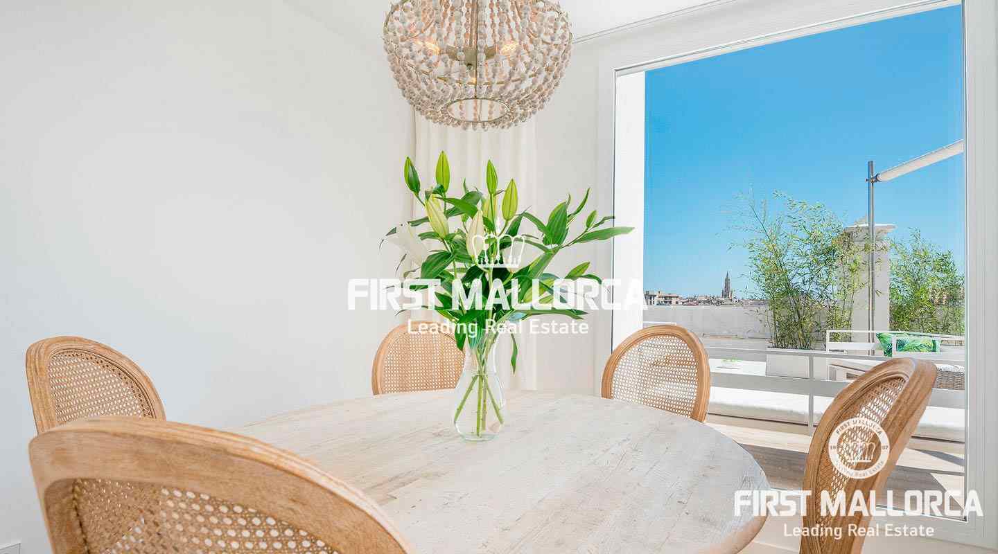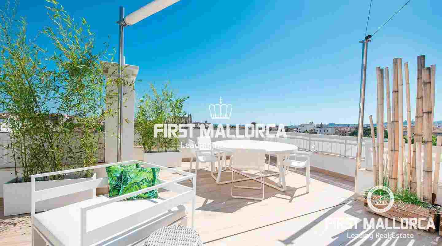 Dieses schöne und lichtdurchflutete Penthouse im Herzen von Palmas Altstadt, unweit der bekannten Las Ramblas, überzeugt durch seine moderne Einrichtung und wird komplett möbliert verkauft. Die Immobilie verfügt über 3 Schlafzimmer mit Badezimmer en Suite, einen gemütlichen Wohn- und Essbereich sowie eine hochwertige Siemens-Küche.