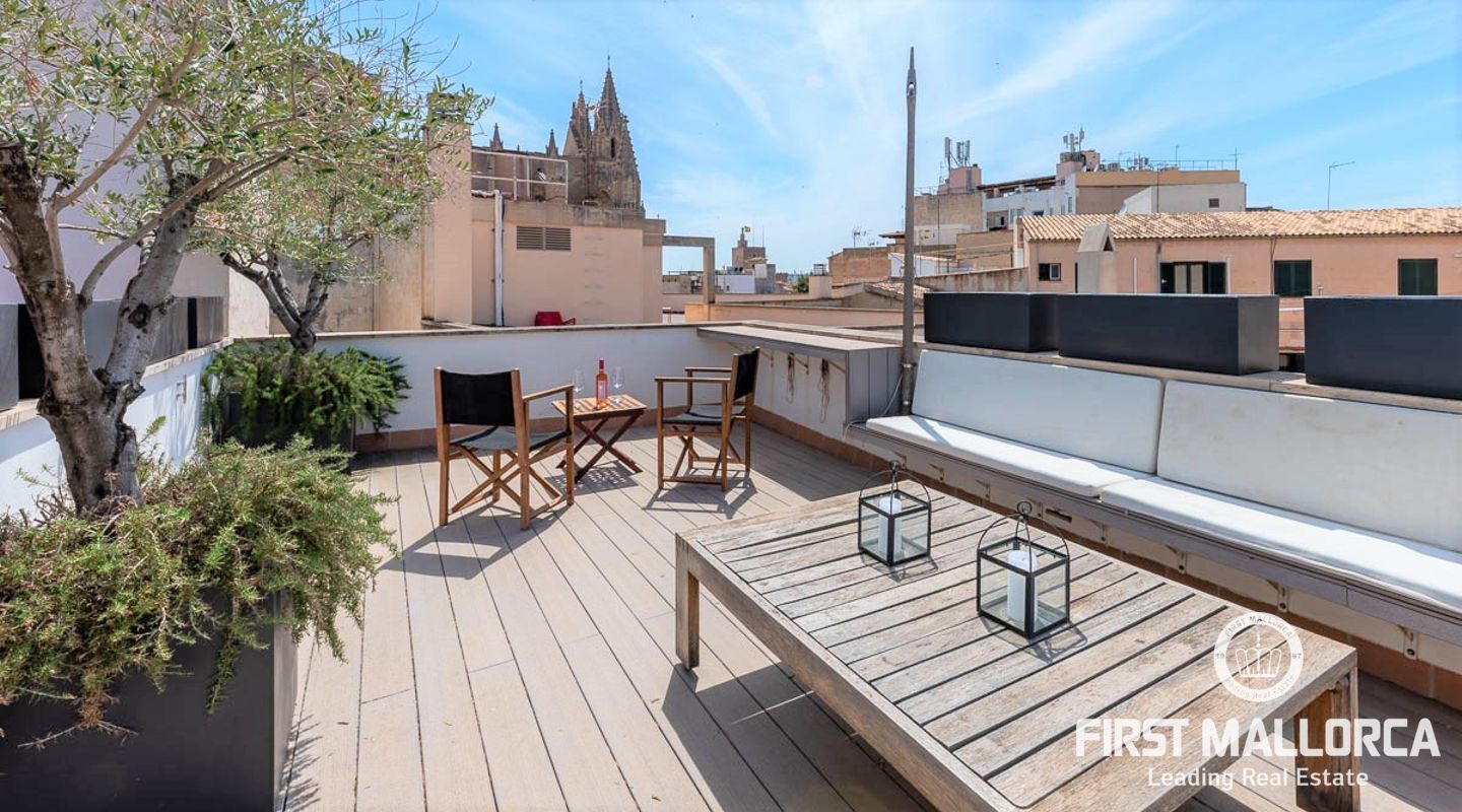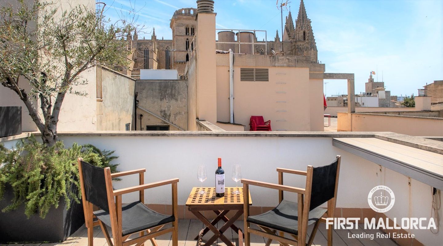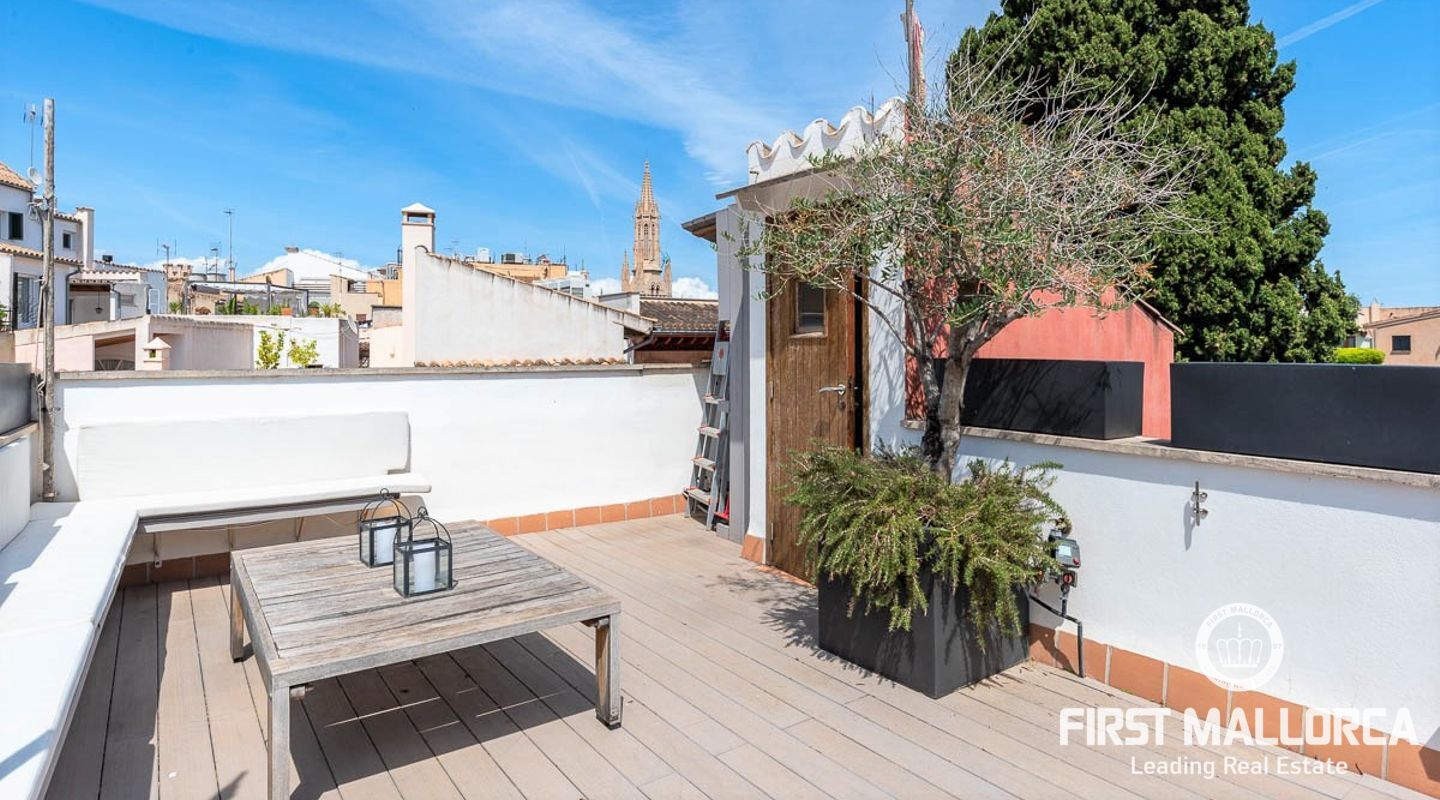 Penthouse im Herzen der Altstadt von Palma zu verkaufen. Wenn Sie auf der Suche nach einer Immobilie in der Altstadt sind, suchen Sie nach mehreren Gründen, der wichtigste ist die Lage, dass es in einer ruhigen Straße ist, gut gelegen, soweit historische Orte betroffen sind, sowie gut verbunden mit Restaurants und Einkaufsmöglichkeiten, diese Eigenschaft befindet sich nur wenige Schritte von der Kathedrale und in einem Gebäude mit Charakter im Jahr 2008 renoviert, in der Nähe von Restaurants, Cafés und Einkaufsmöglichkeiten. Die Immobilie verfügt über alles, was man von einer Immobilie in der Altstadt erwarten kann, eine große Terrasse mit schöner Aussicht, Helligkeit in der gesamten Wohnung, Aufzug und Parkplatz.